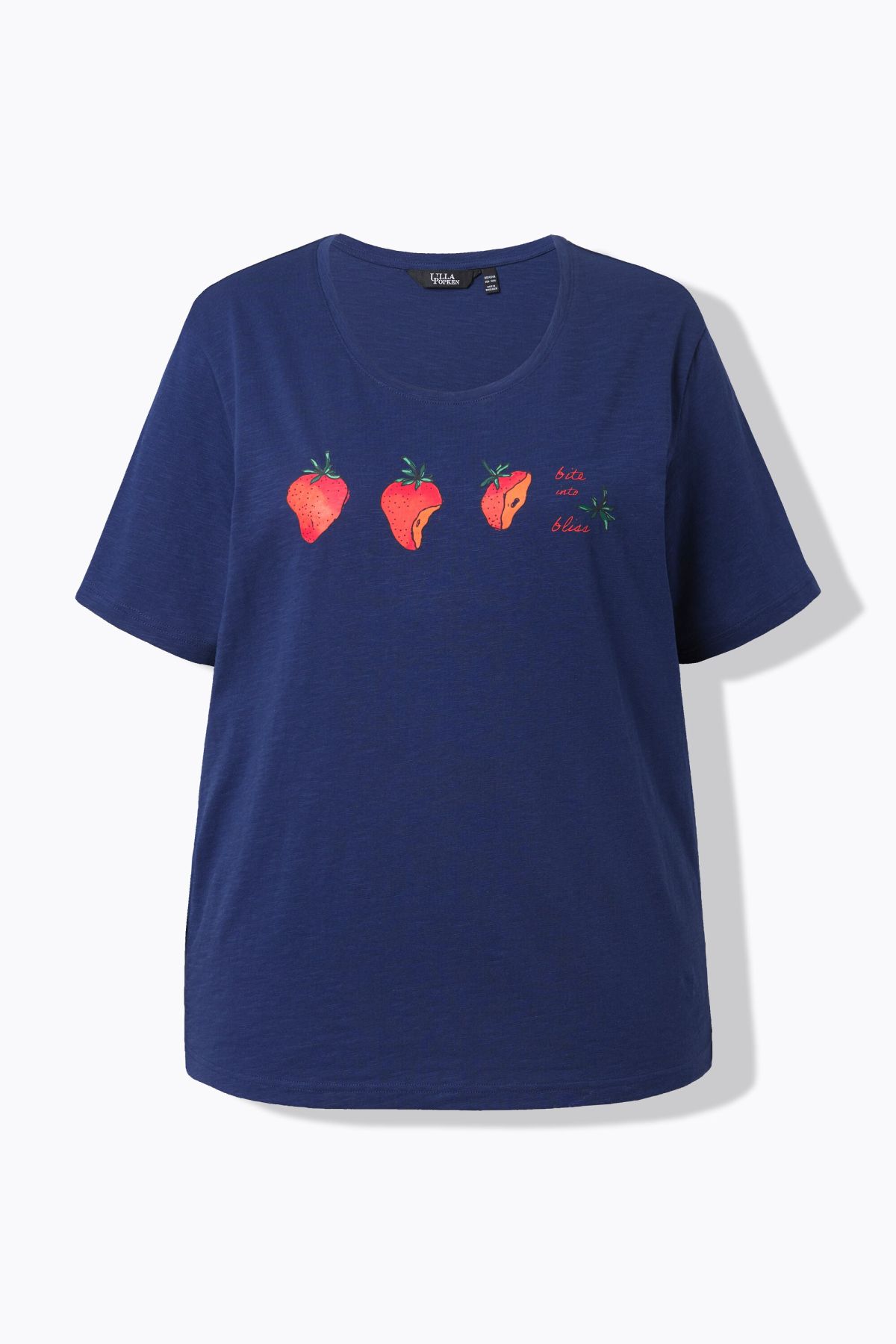 Charmant motif fraises sur le devant, Col rond, Coupe confortable, Manches courtes, Pur coton, Long. selon taille env. 68-76 cm.