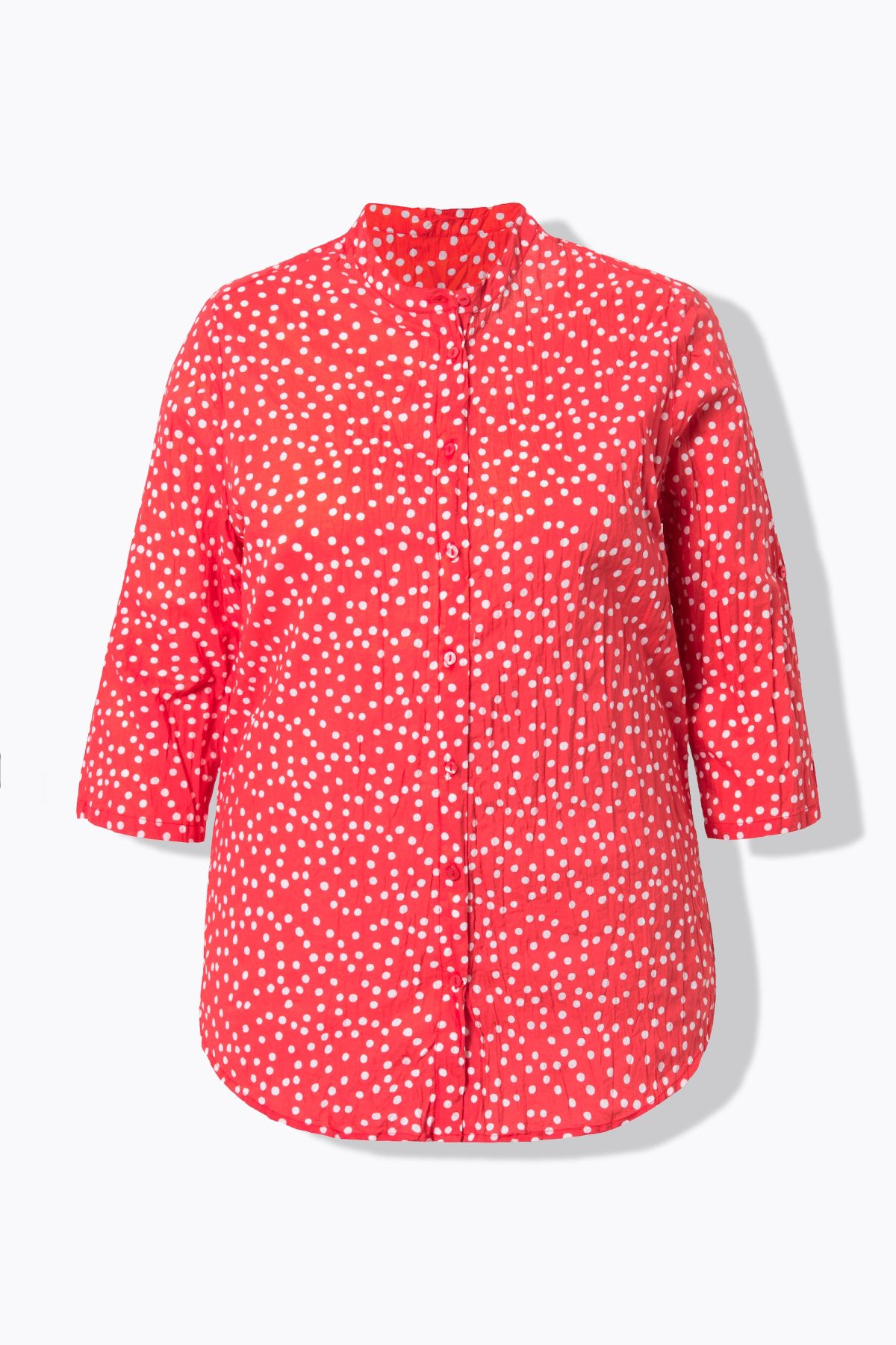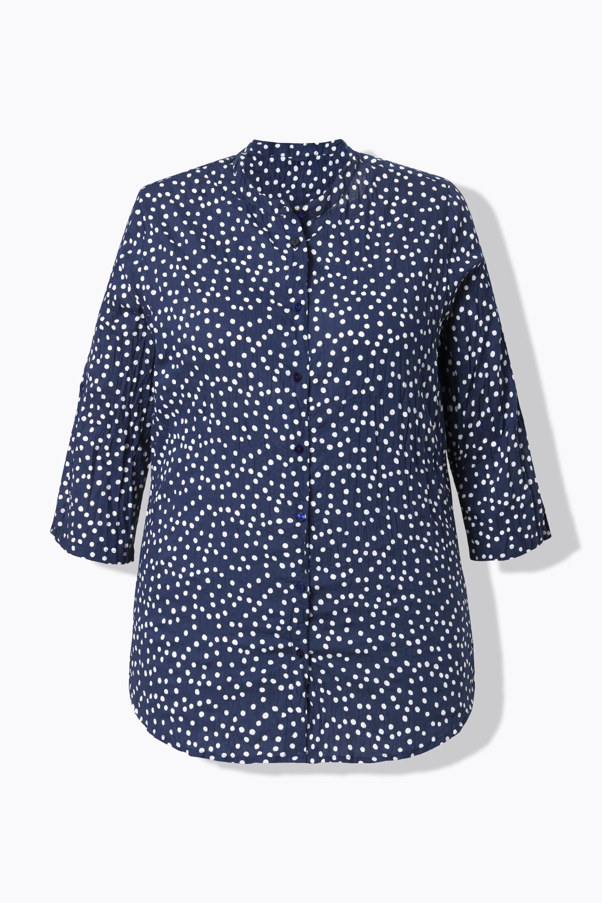 Tissu aspect froissé tendance, motif à pois, Col montant et patte de boutonnage, Base arrondie, Manches 3/4 avec pattes de retroussage, Pur coton, Long. selon taille env. 72-76 cm.