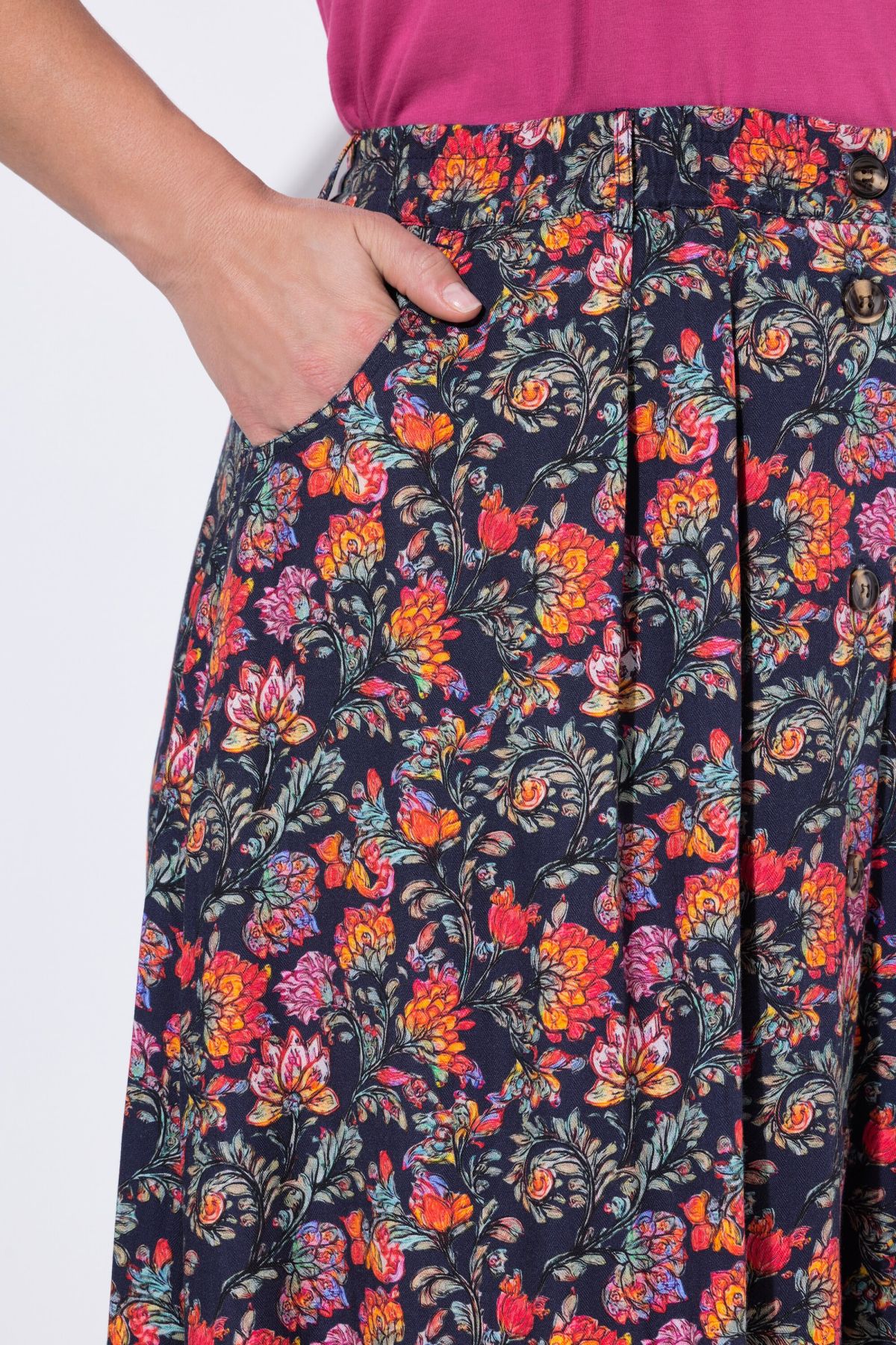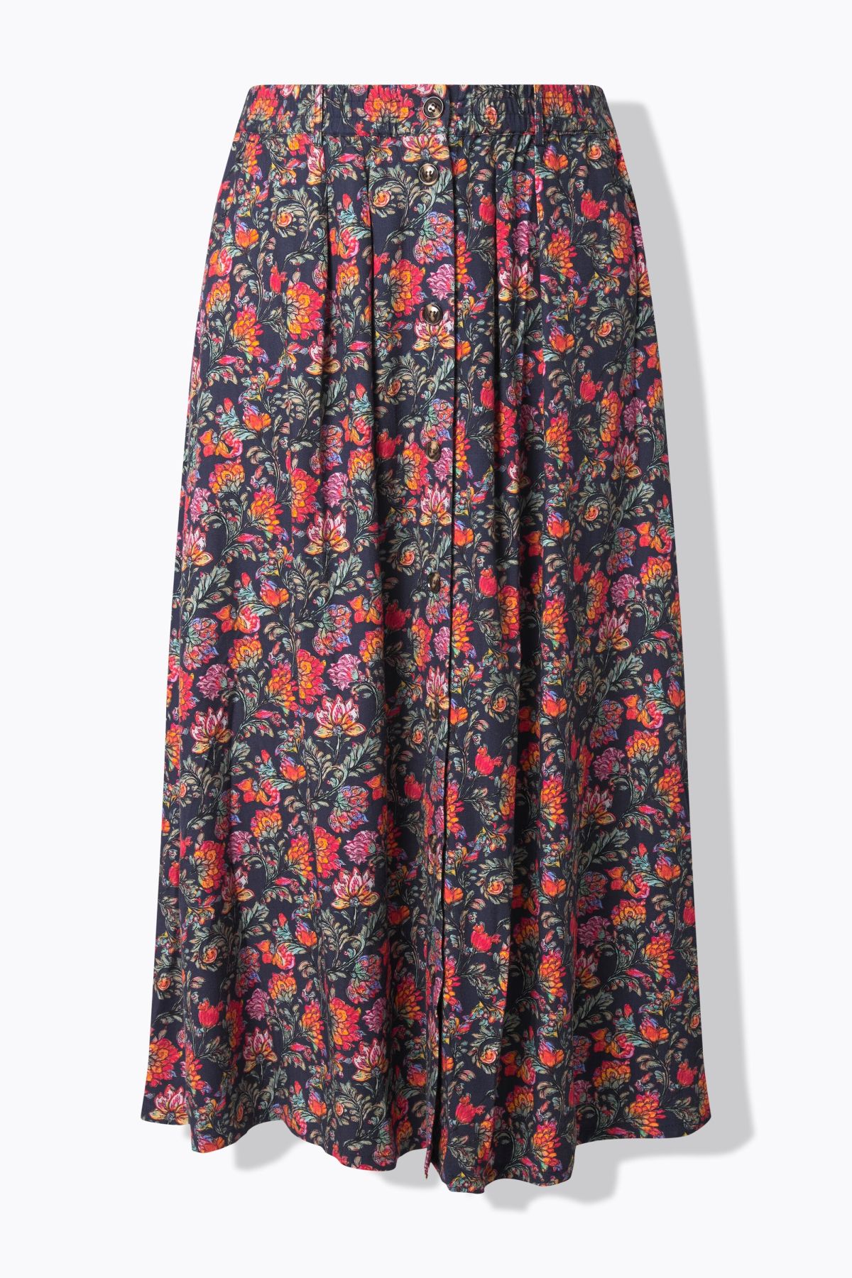 Motif champêtre tendance, Patte de boutonnage avec élégants boutons aspect corne, Plis au niveau de la taille, Poches latérales réservées dans la couture, Viscose douce et confortable, au tombé fluide, Long. env. 90 cm.