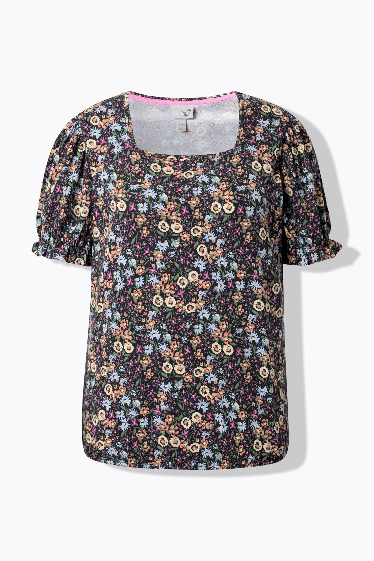 Motif champêtre, élégantes petites fleurs, Décolleté carré, Coupe confortable avec base élastique, Manches courtes avec ruchés élastiques aux extrémités, Coton naturel enrichi en élasthanne, Long. selon taille env. 68-76 cm.