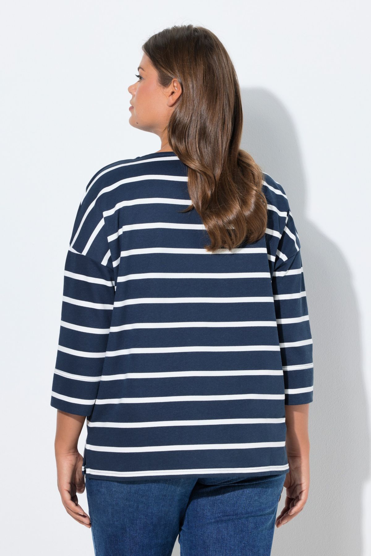 Molleton rayé, doux et confortable, Encolure bateau, Manches 3/4, Label OEKO-TEX, Long. selon taille env. 66-74 cm.