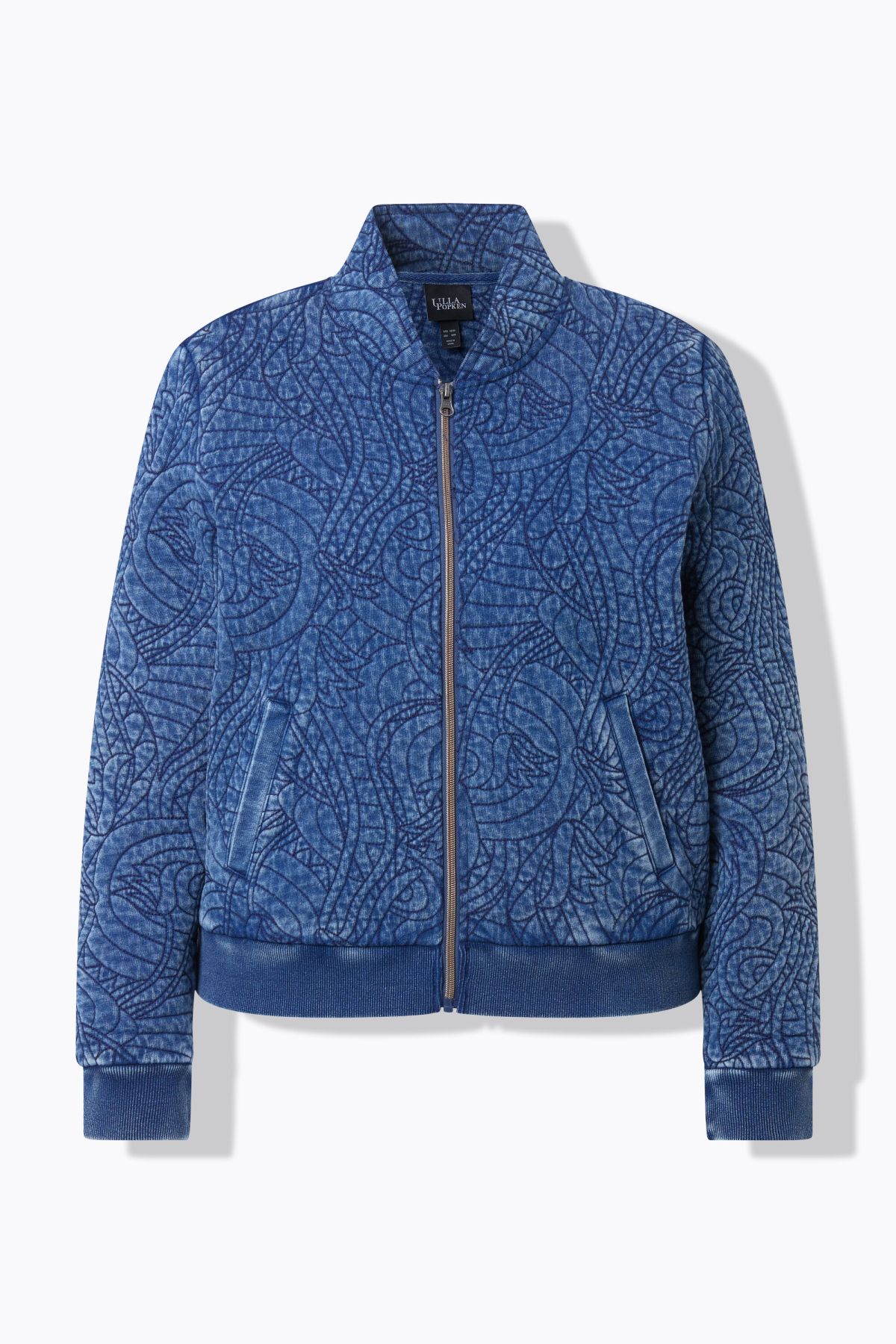 Teinture indigo haut de gamme, Col montant, Coupe Classic Fit un peu plus courte que la normale, Manches longues, finition élastique au niveau de la taille et des poignets, Deux poches fendues, Long. selon taille env. 58-68 cm.