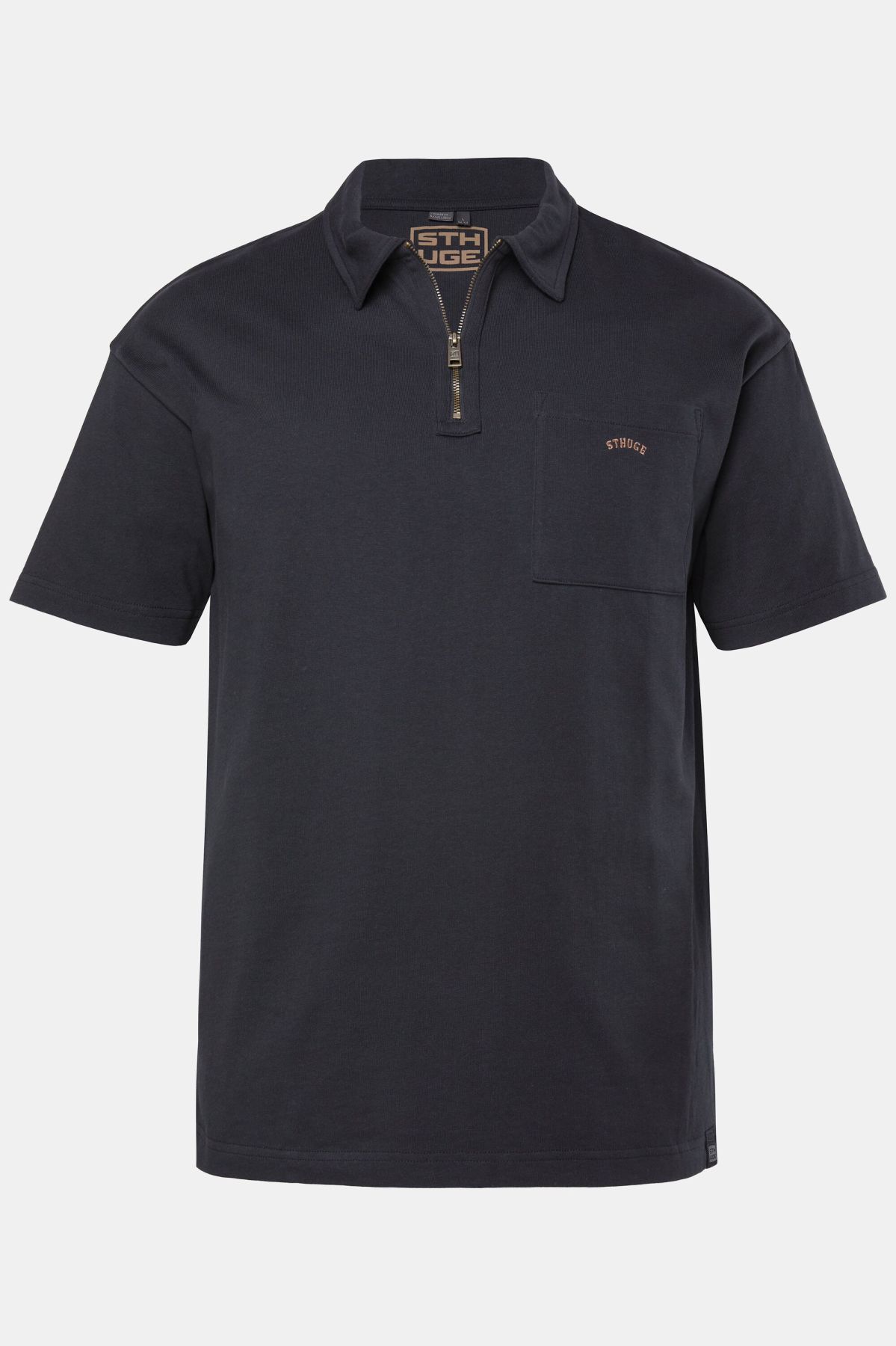 Taille L - 8 XL, Coupe oversize extra-large, Col polo avec fermeture zippée, Manches courtes, Long. selon taille env. 76-88 cm.