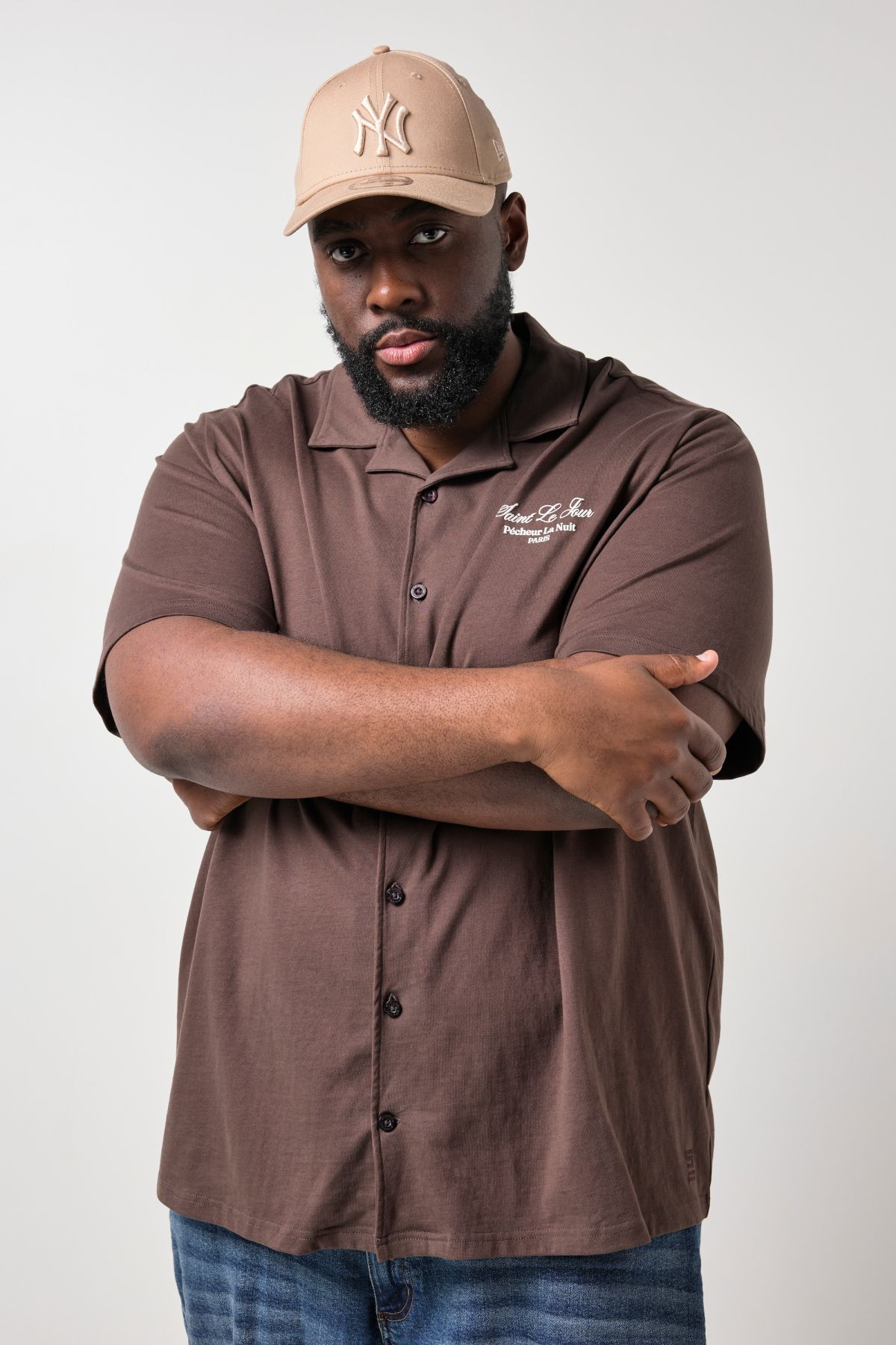 Taille L - 8 XL, Jersey doux et confortable, imprimé sur la poitrine, Coupe Cuba Fit « flottante », Col cubain, Long. selon taille env. 77-93 cm.