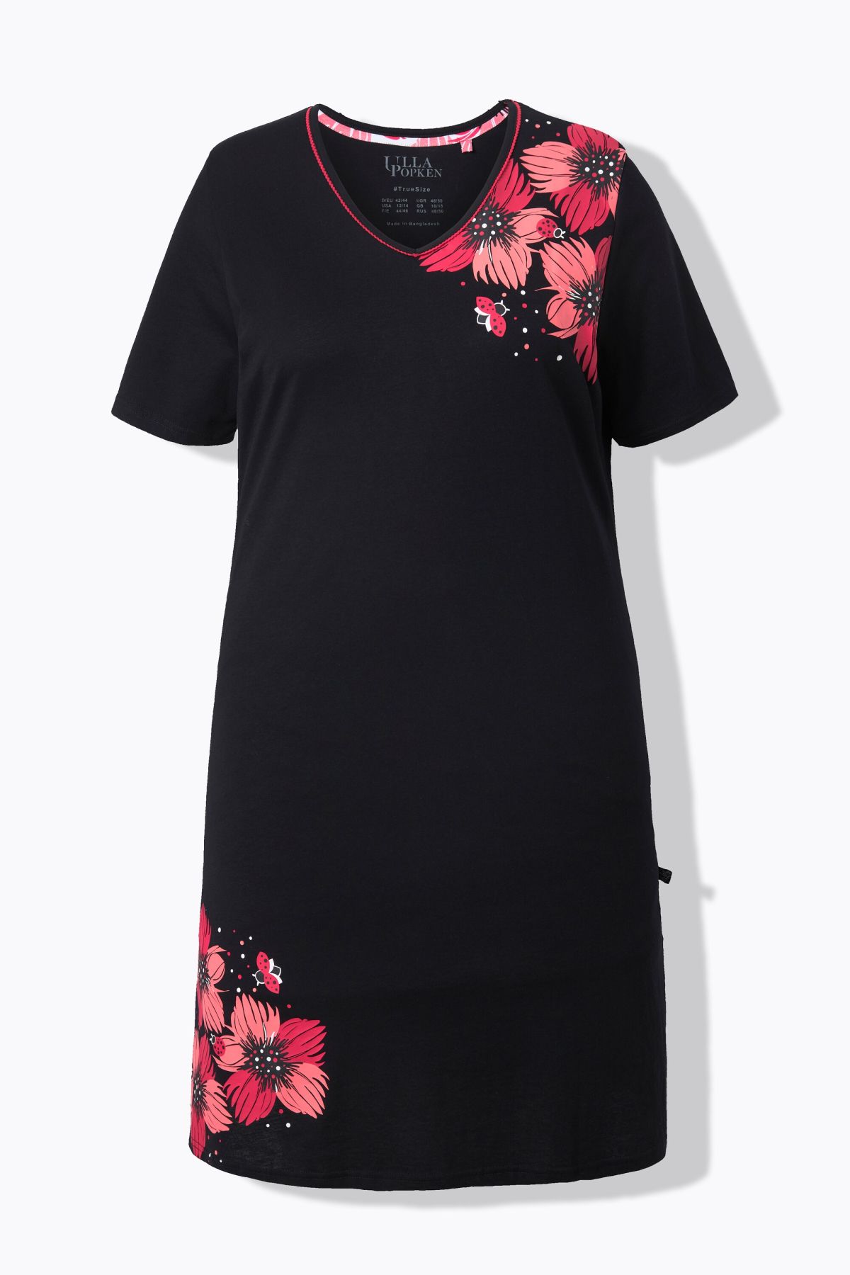 1x motif fleurs et col en V, 1 x motif fleurs et col rond, Coupe confortable, fentes sur les côtés, Manches courtes, Coton respirant, idéal pour la nuit, Long. env. 100-105 cm.