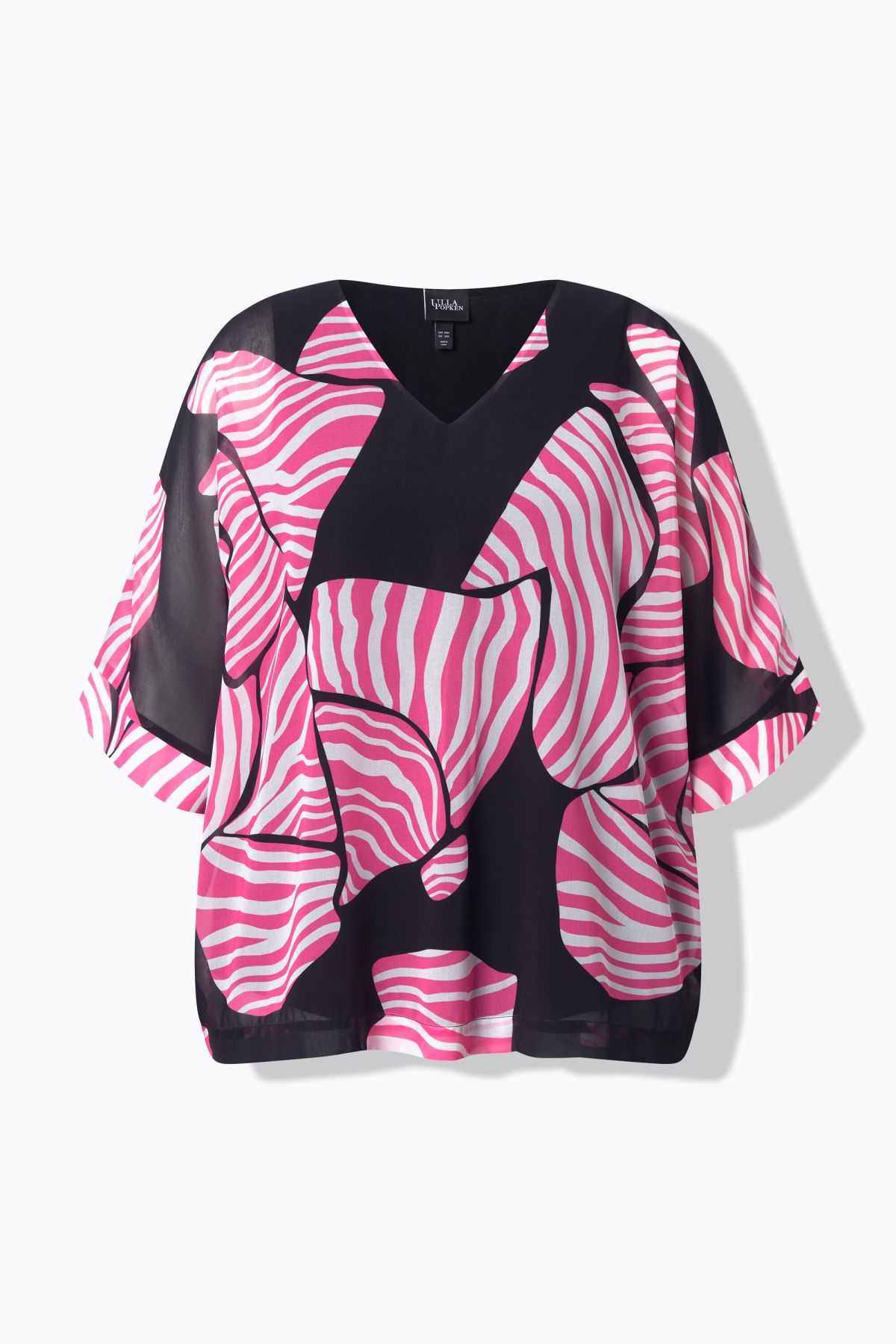 Voile en mousseline légère, motif nœuds, Décolleté en V, Modèle oversize décontracté, Manches 3/4, Top en jersey opaque en dessous, Long. selon taille env. 64-72 cm.