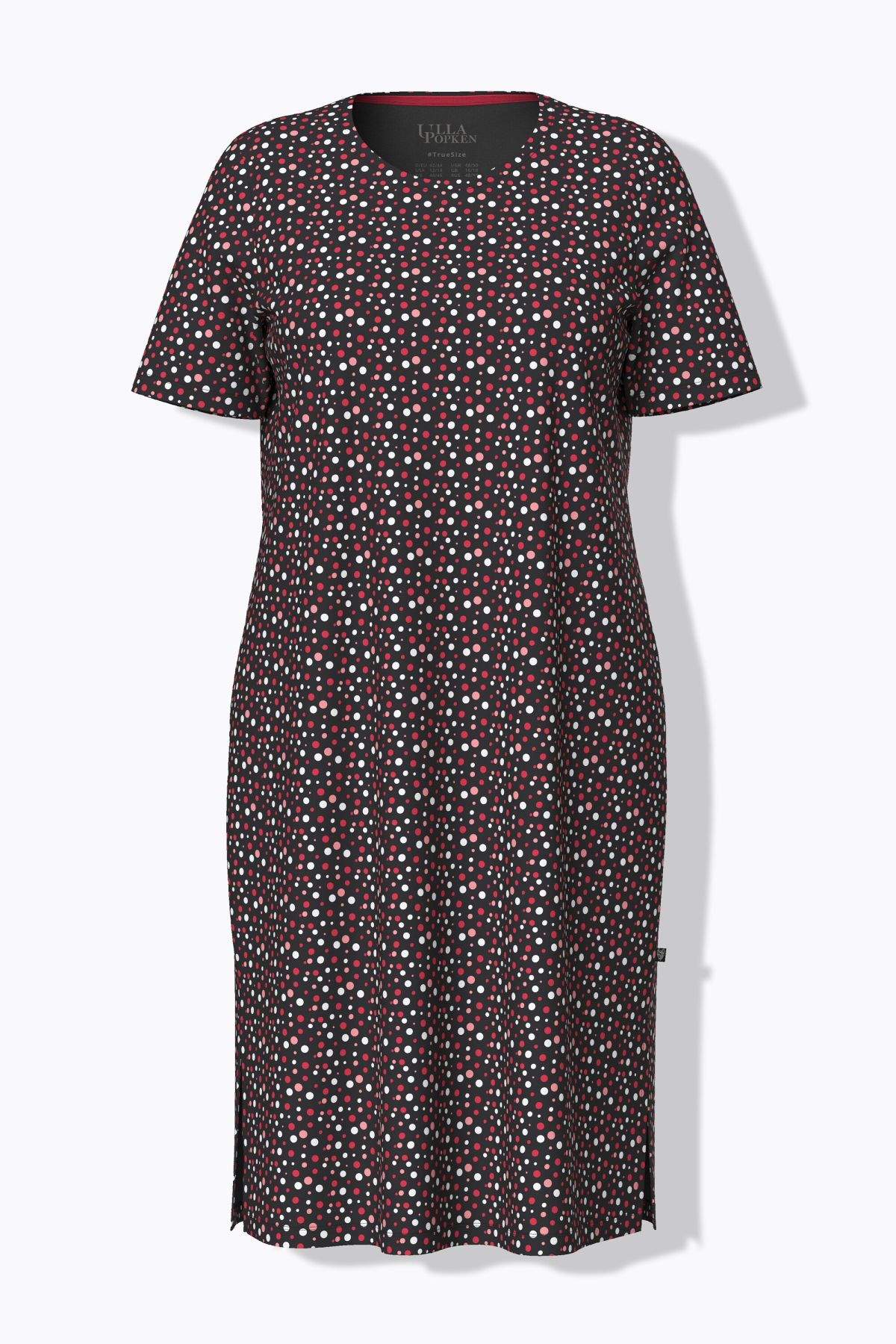Motif à pois multicolores, Décolleté rond, Coupe confortable, fentes sur les côtés, Manches courtes, Coton respirant, idéal pour la nuit, Long. env. 100-105 cm.