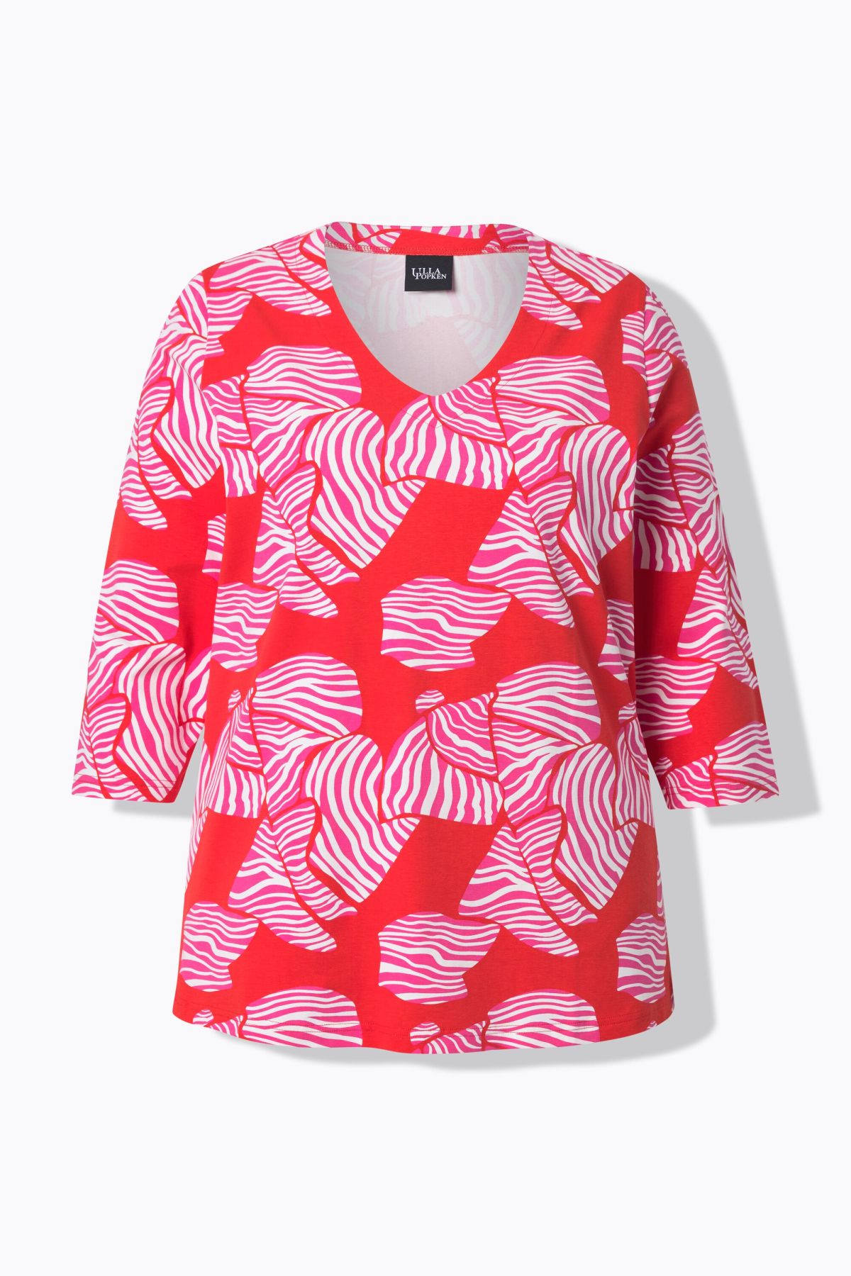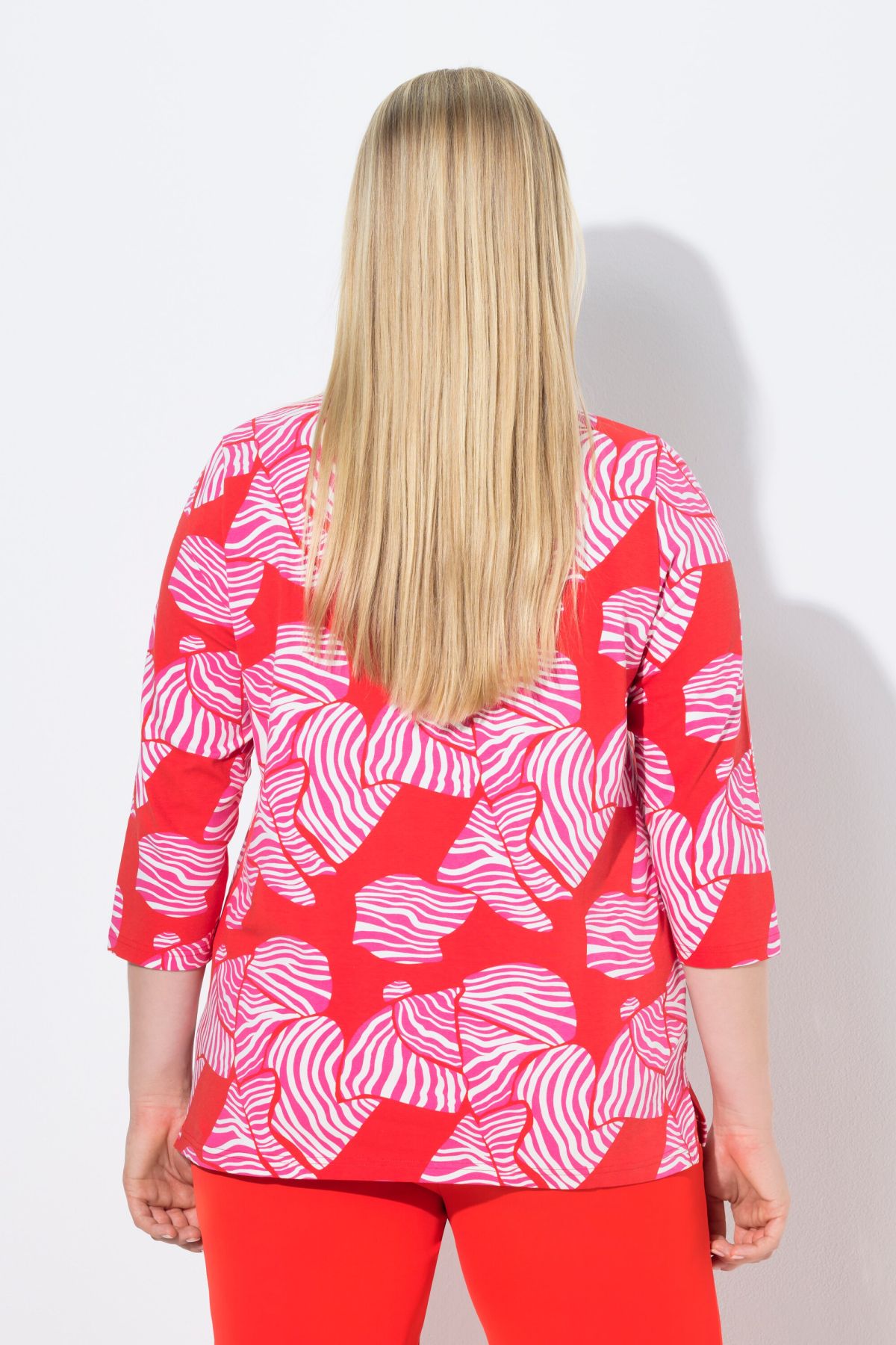 Motif nœuds tendance, Décolleté en V, Coupe Classic Fit, fente sur les côtés, Manches 3/4, Coton naturel enrichi en élasthanne, Long. selon taille env. 68-76 cm.
