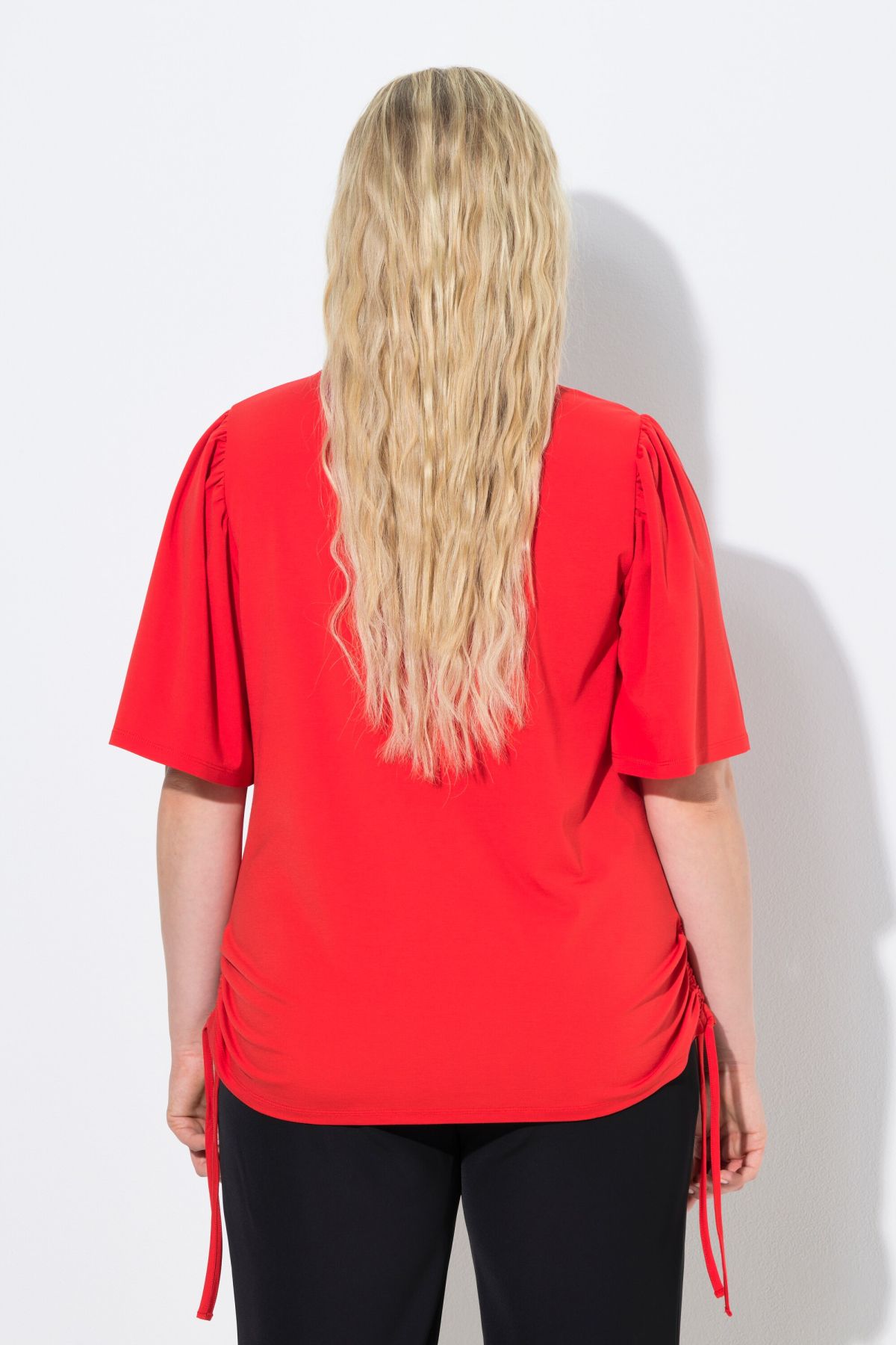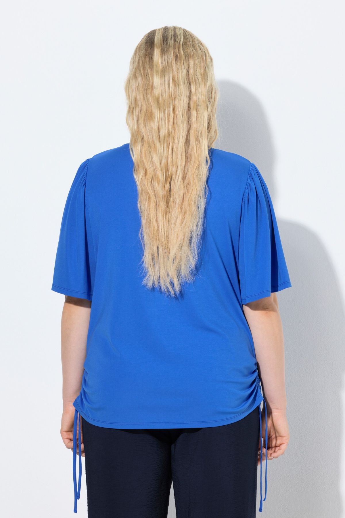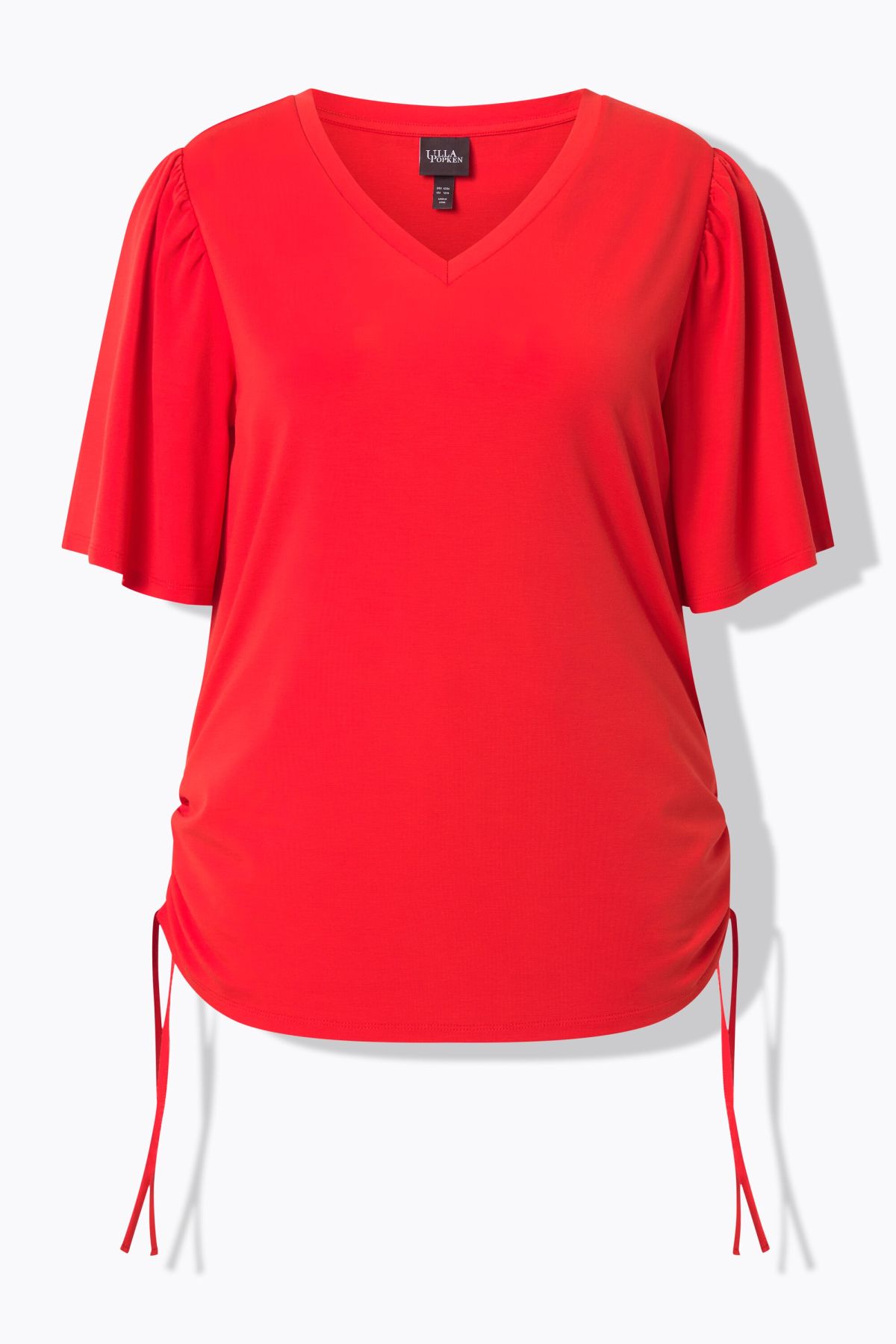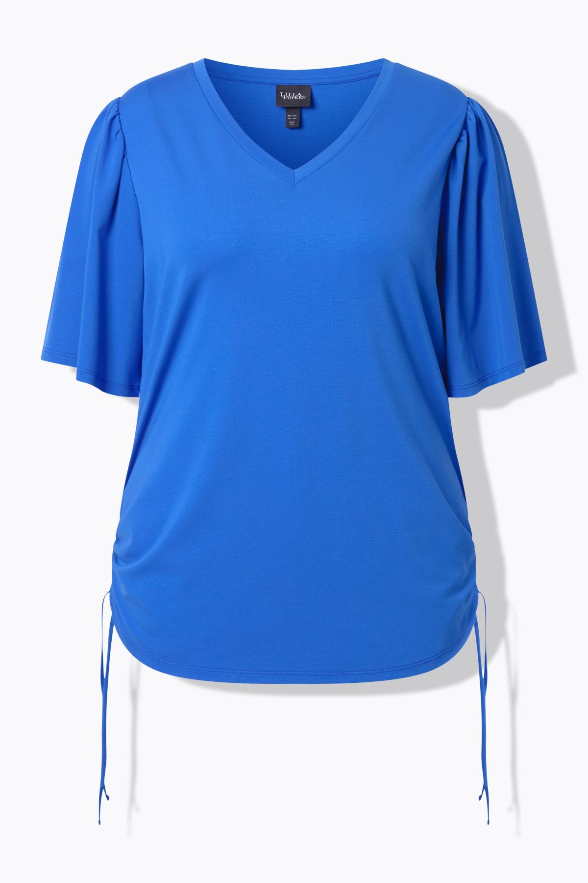 Petit cordon à froncer sur les côtés, Décolleté en V, Coupe Classic Fit, Manches papillon courtes et amples, Viscose mélangée douce et confortable, Long. selon taille env. 68-76 cm.