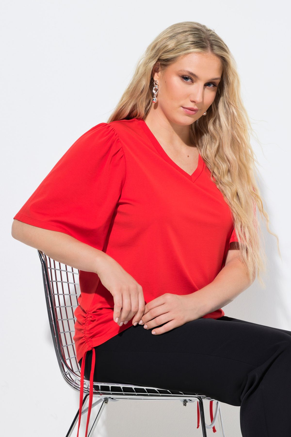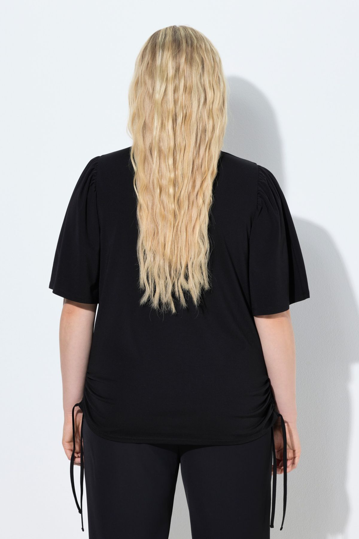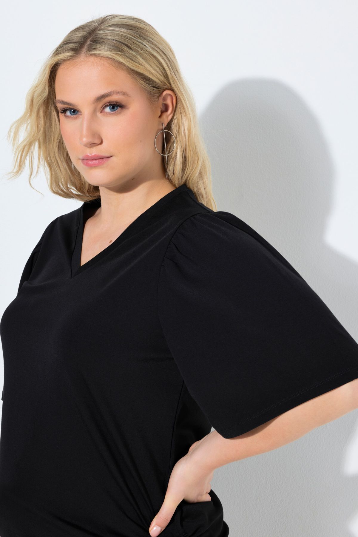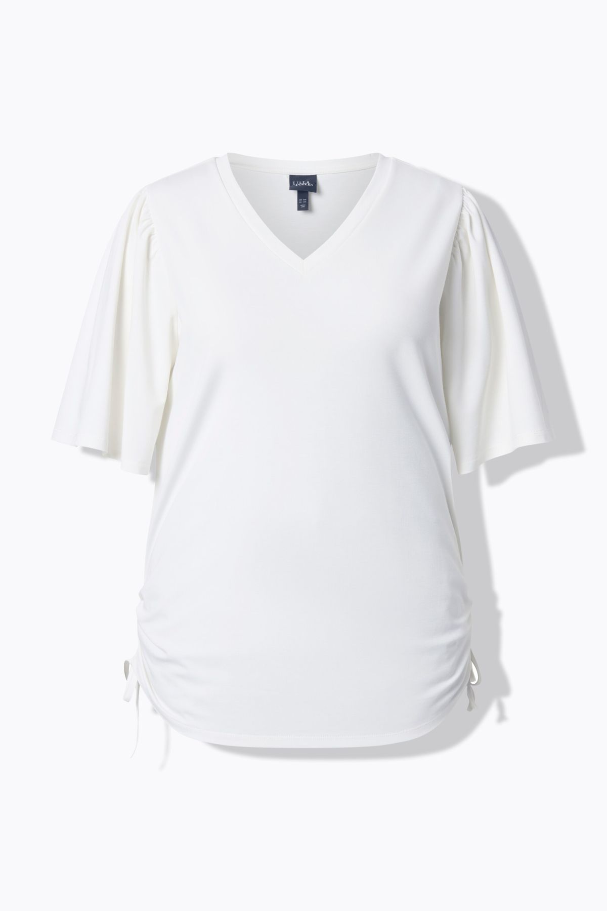 Petit cordon à froncer sur les côtés, Décolleté en V, Coupe Classic Fit, Manches papillon courtes et amples, Viscose mélangée douce et confortable, Long. selon taille env. 68-76 cm.