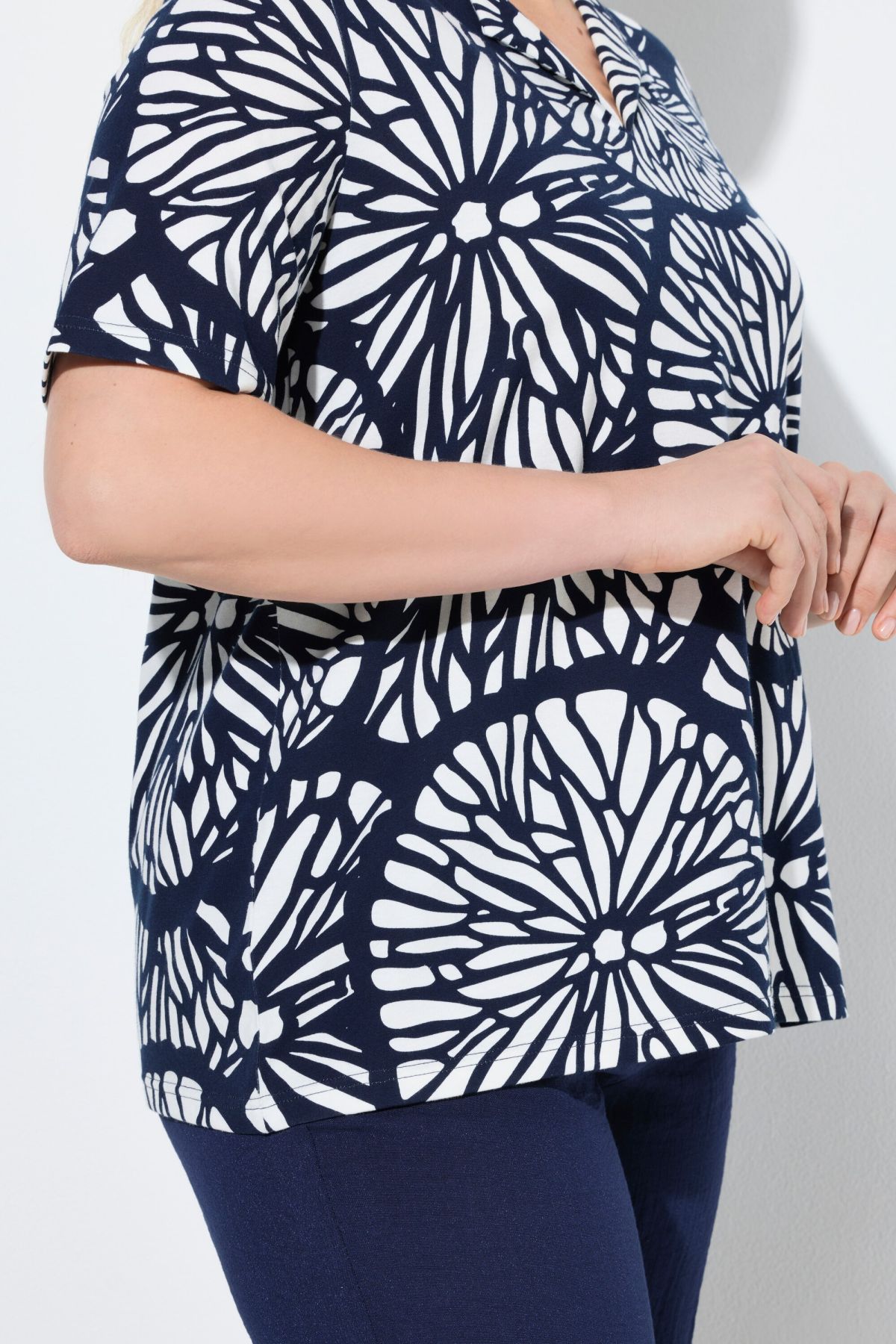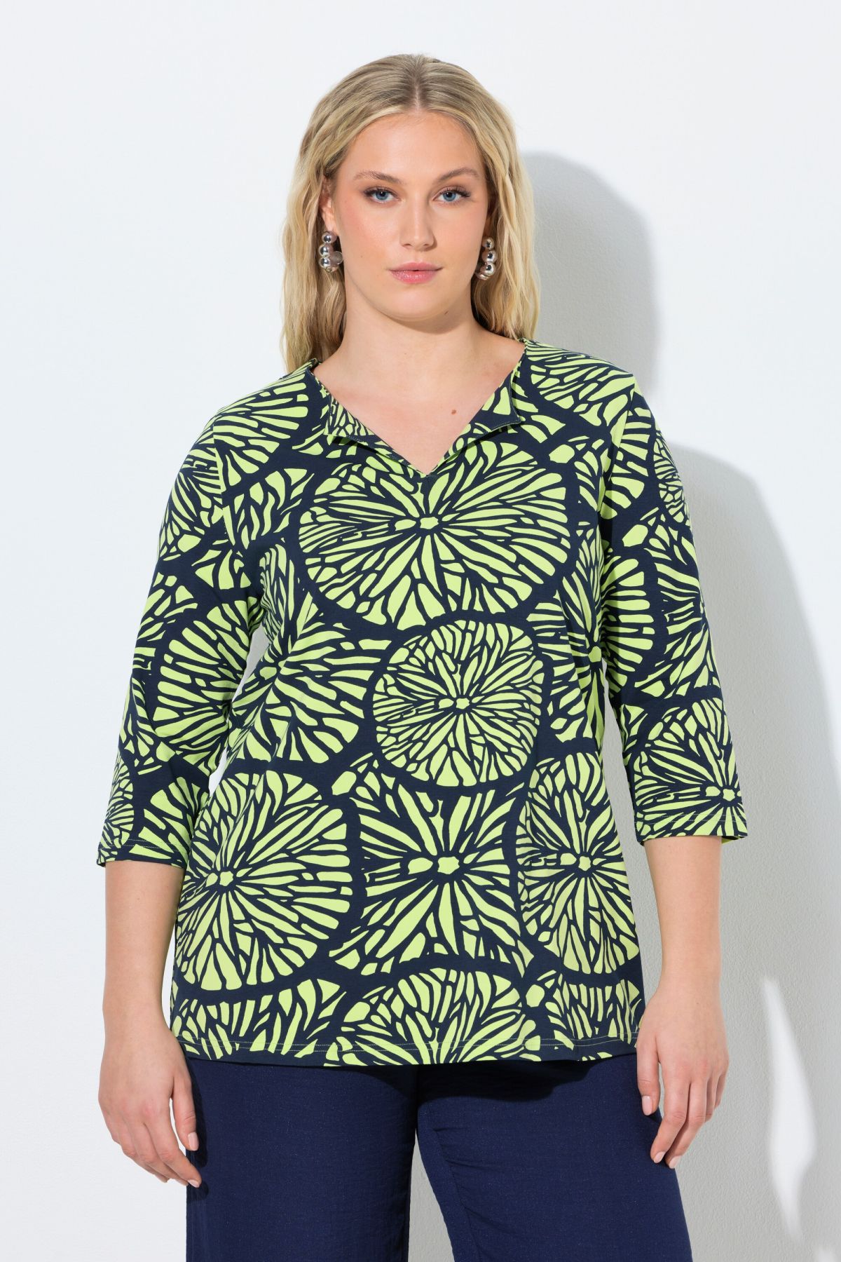 Motif grands citrons, Décolleté en V avec revers « rabattu », Coupe confortable, Manches courtes, Coton naturel enrichi en élasthanne, Long. selon taille env. 68-76 cm.