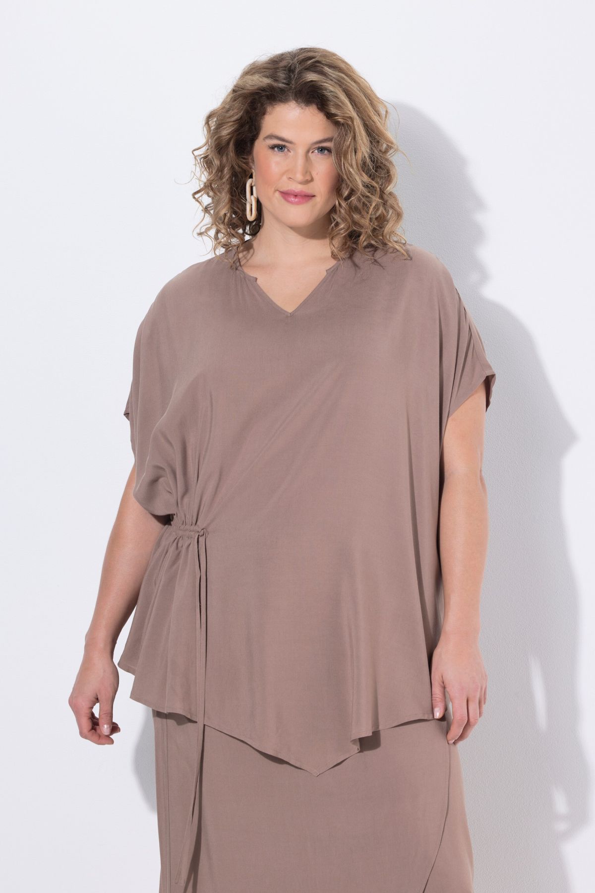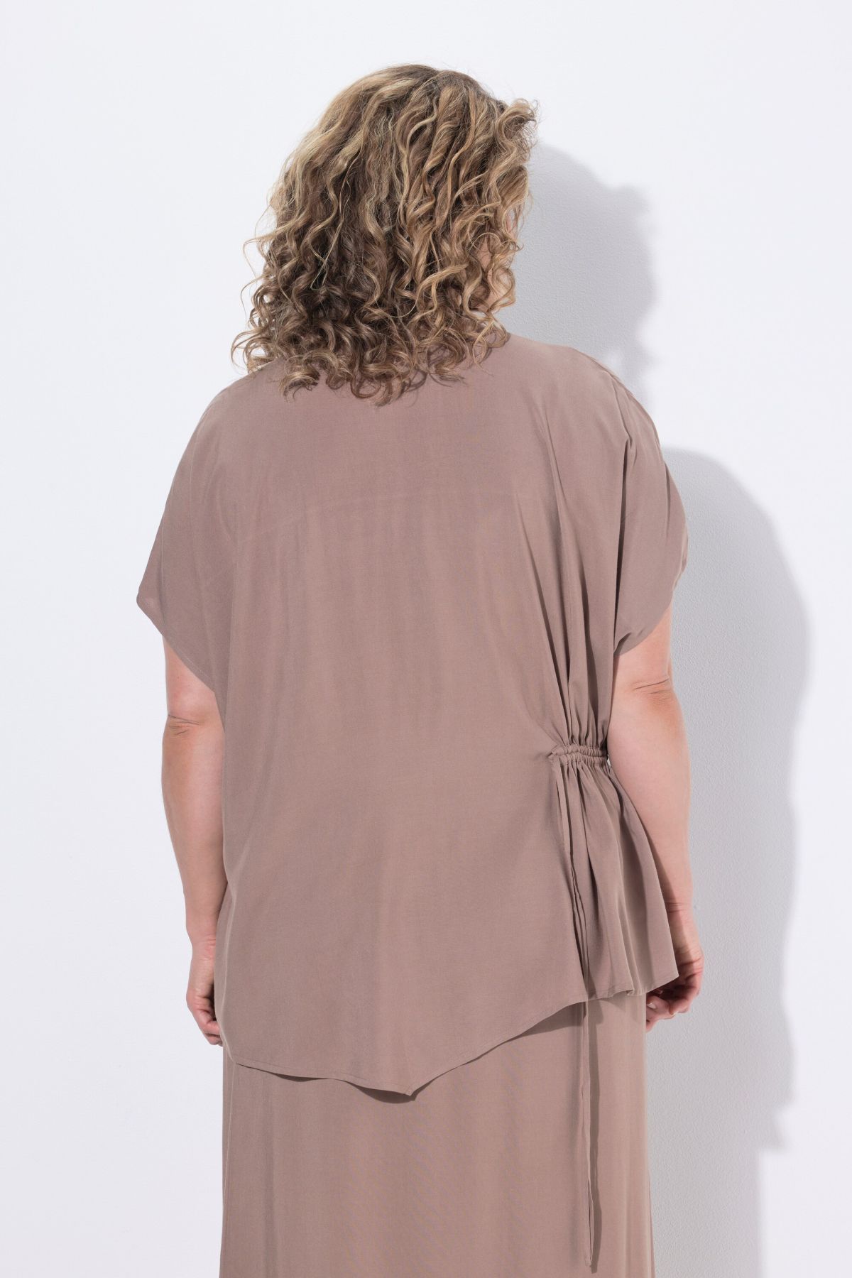 Tunique effet drapé, col tunisien et manches courtes, cordon sous tunnel