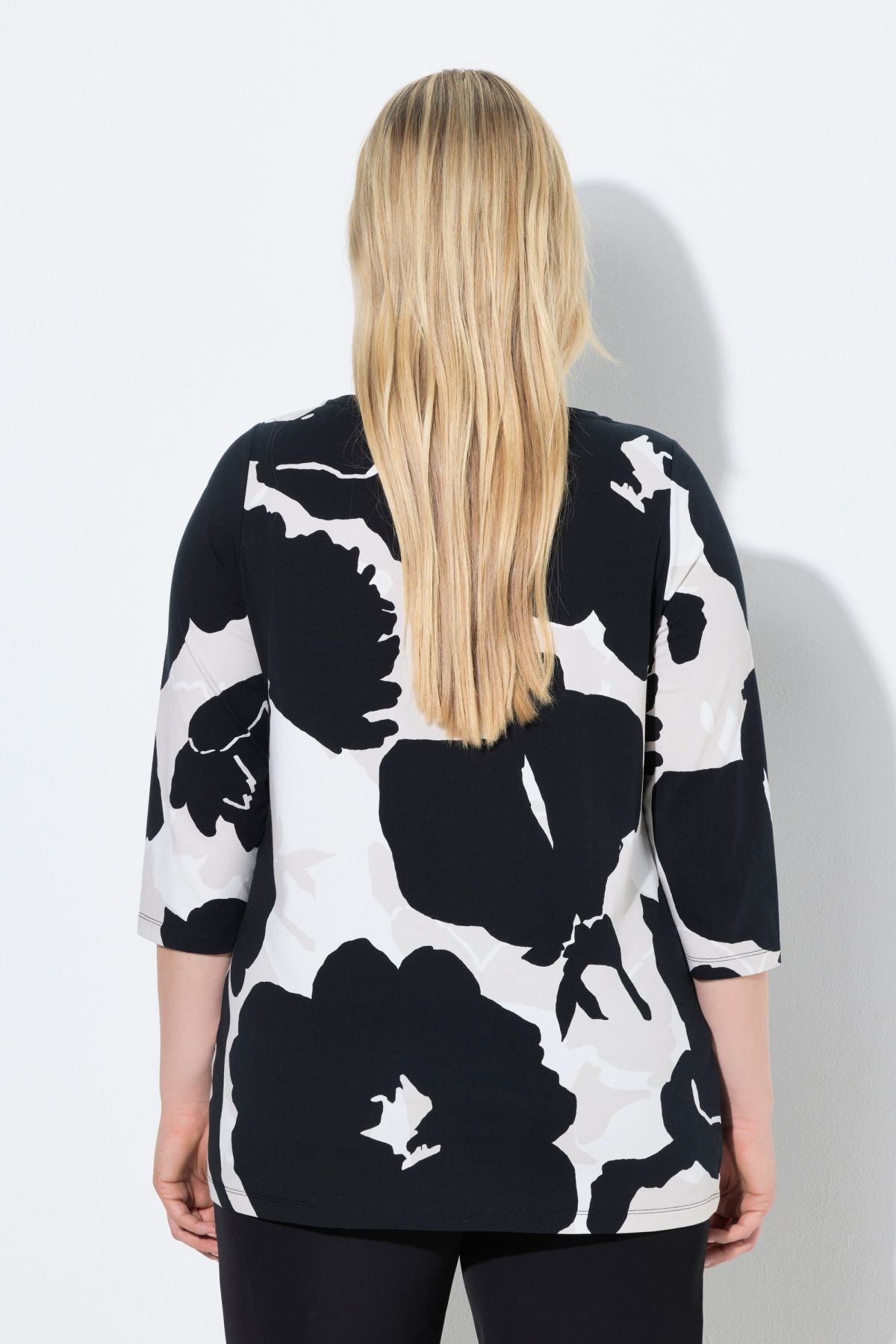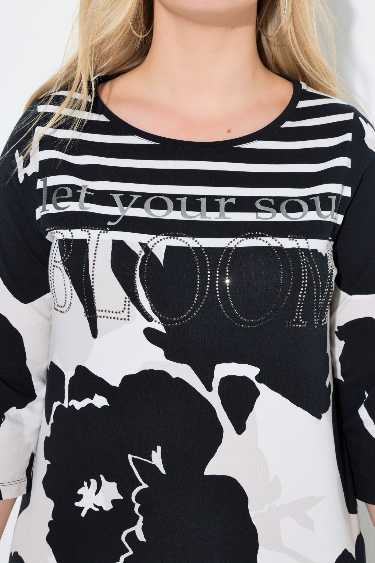 Motif floral, message avec lettres en petits strass scintillants, Encolure bateau, Rayures sur les épaules, Coupe Classic Fit, Coton naturel enrichi en élasthanne, Long. selon taille env. 72-76 cm.