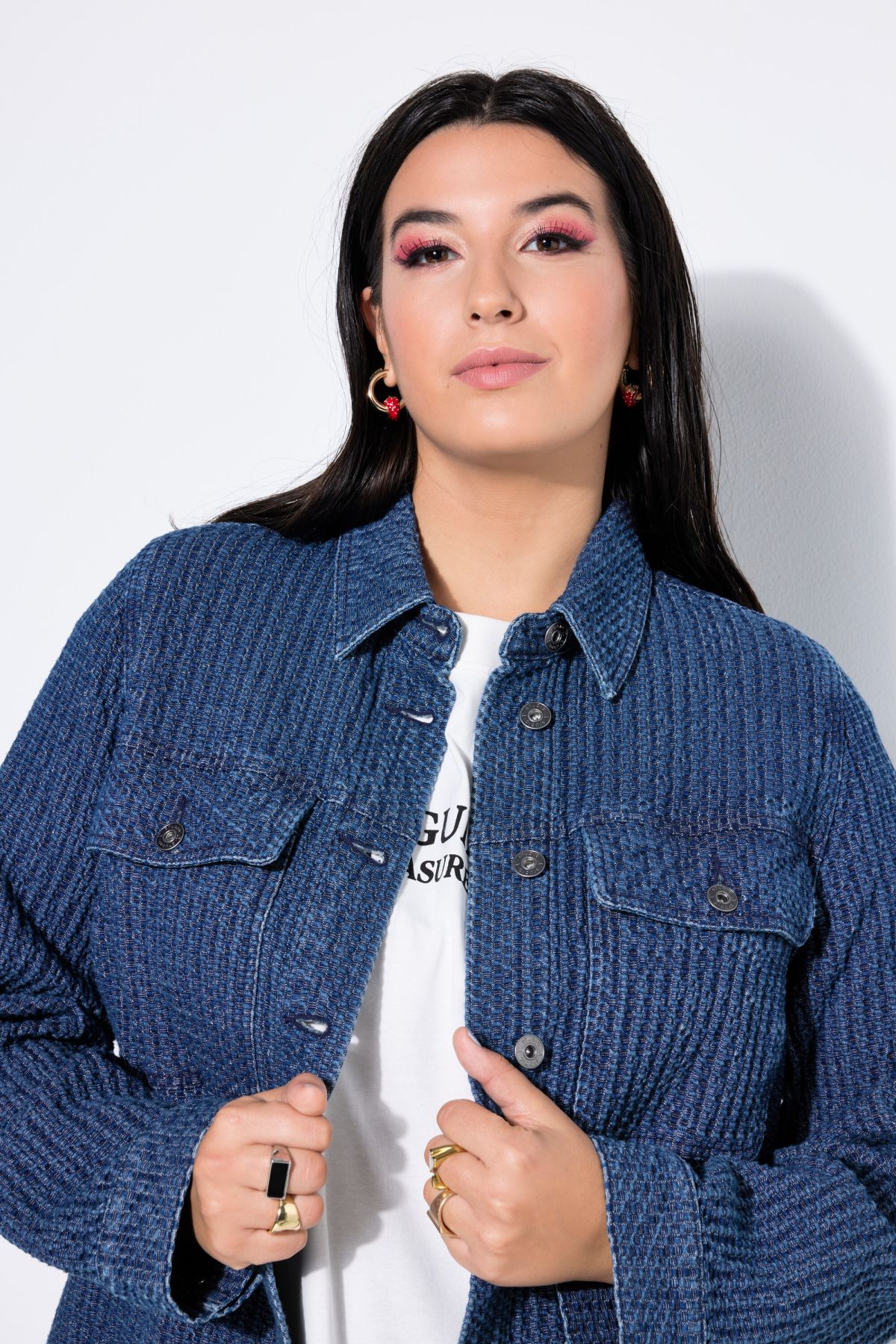 Large veste chemisier à manches longues, matière texturée