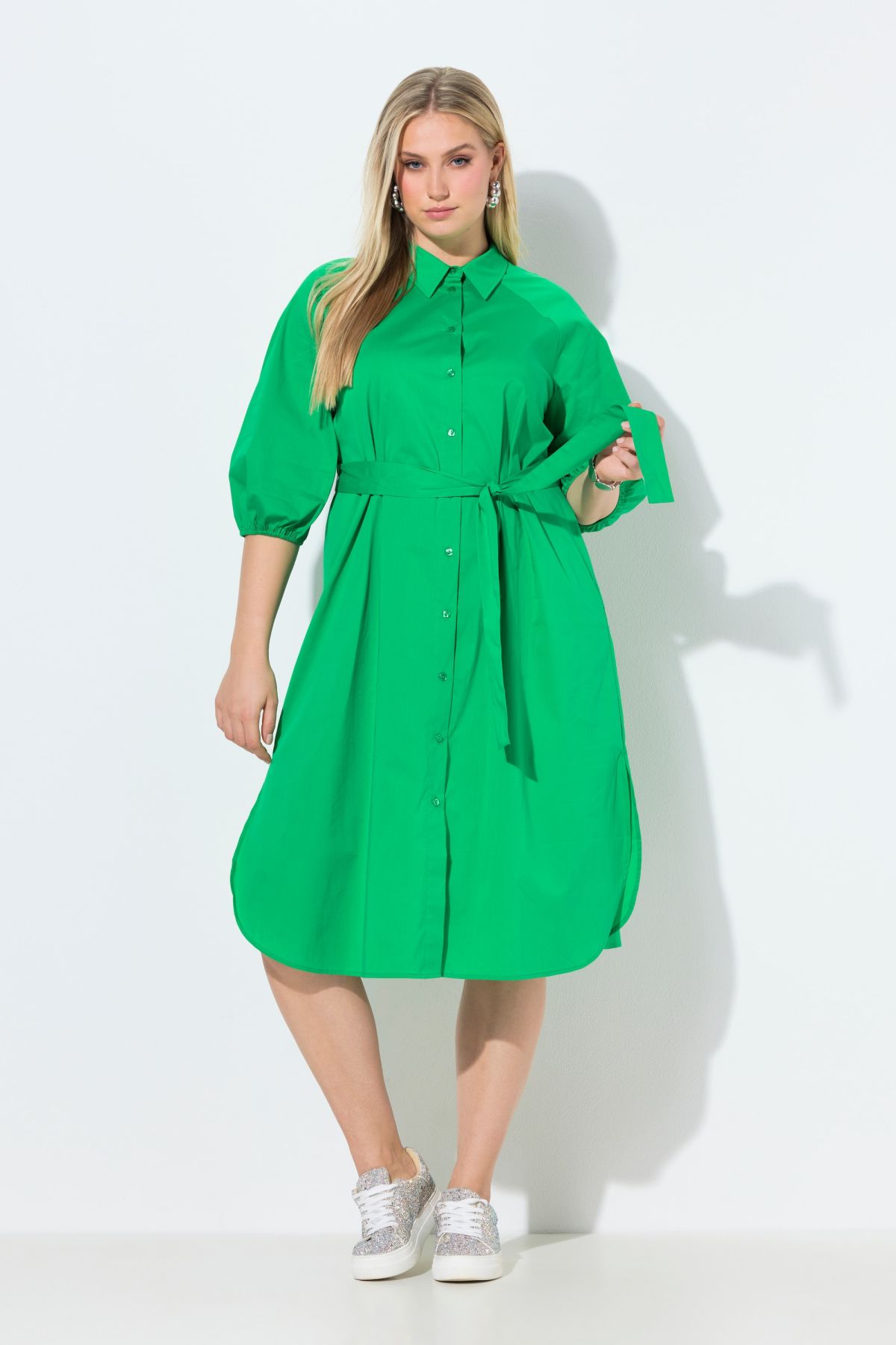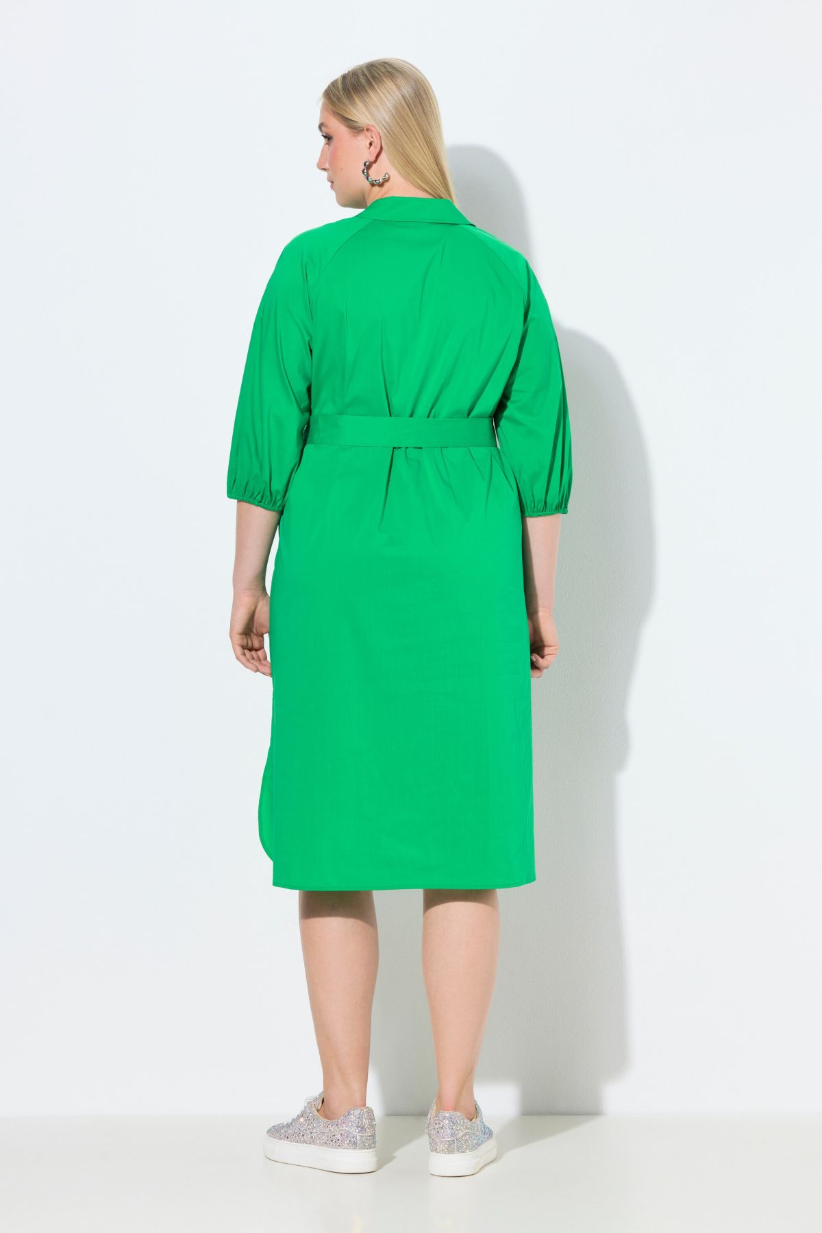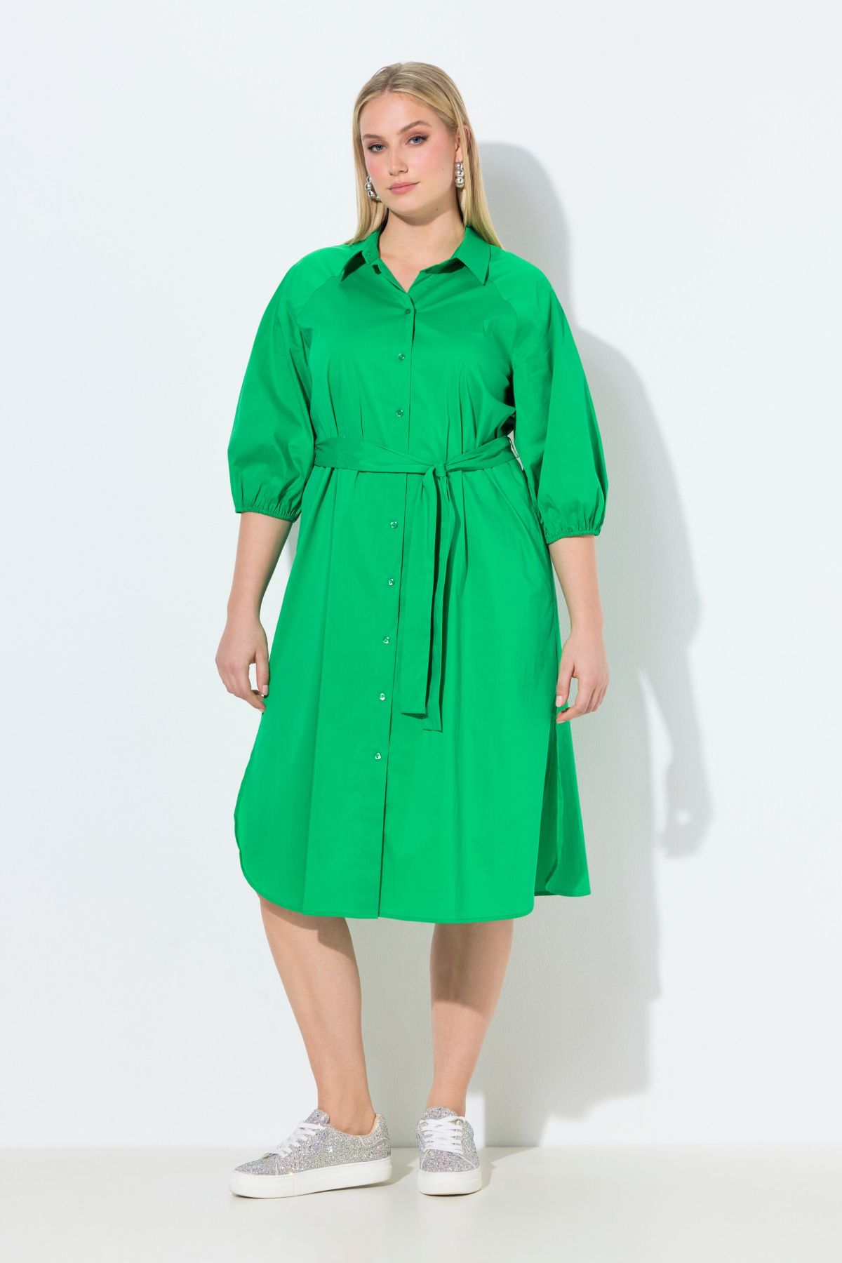Ceinture à nouer à la taille, sous tunnel, Modèle classique avec col chemise et patte de boutonnage, Coupe évasée confortable, avec fentes sur les côtés, Poches latérales réservées dans la couture, Manches 3/4 raglan très amples (ballon), avec extrém