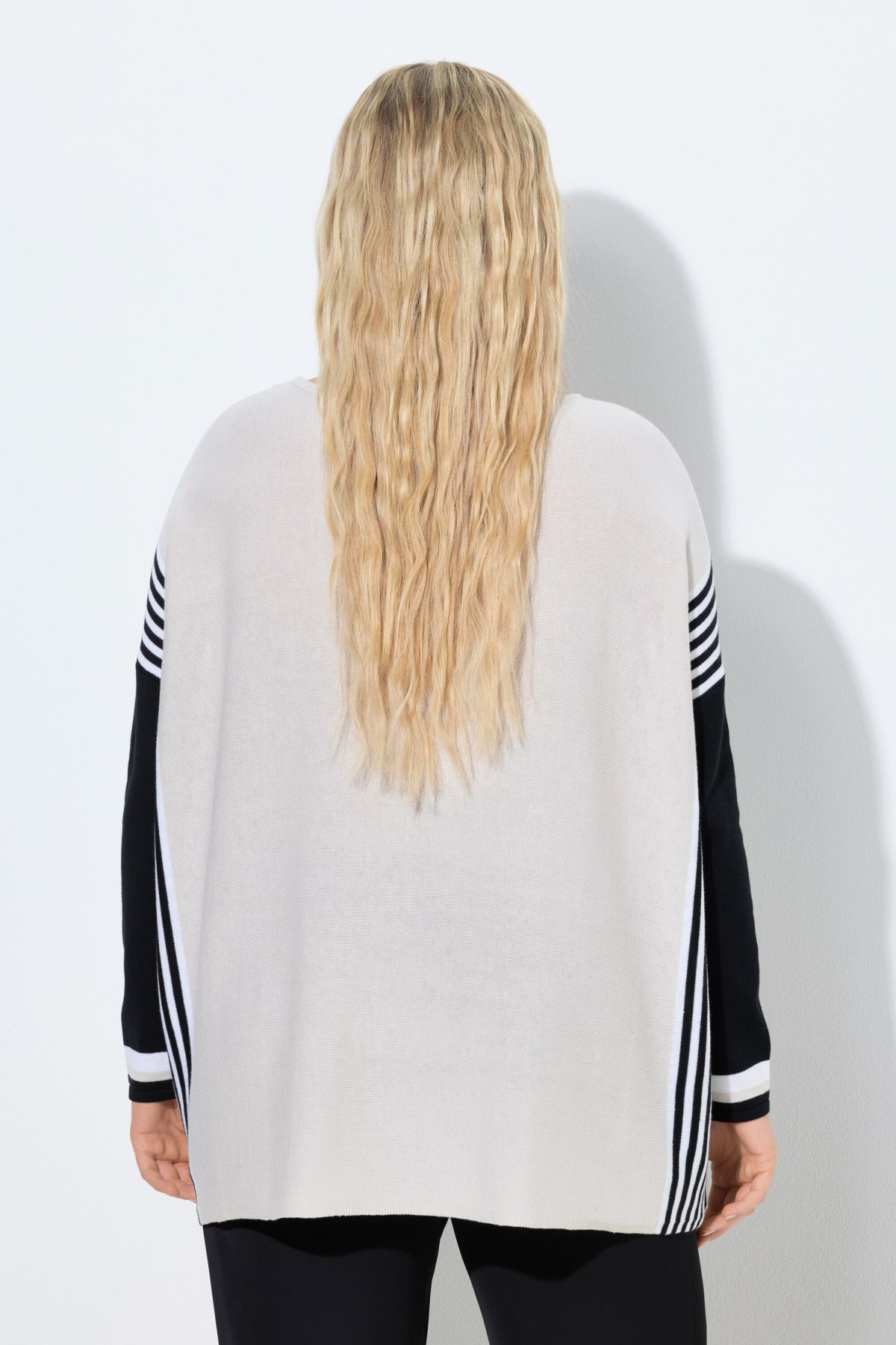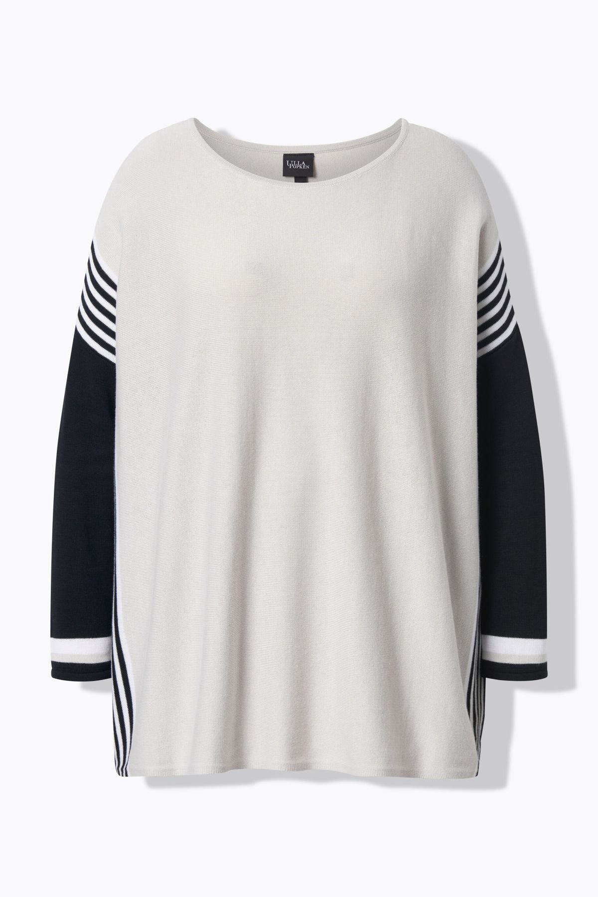 Jeu de rayures tendance sur les côtés, Encolure bateau, Épaules basses, Manches longues bicolores, Maille fine, douce et confortable, en coton mélangé, Long. selon taille env. 72-76 cm.
