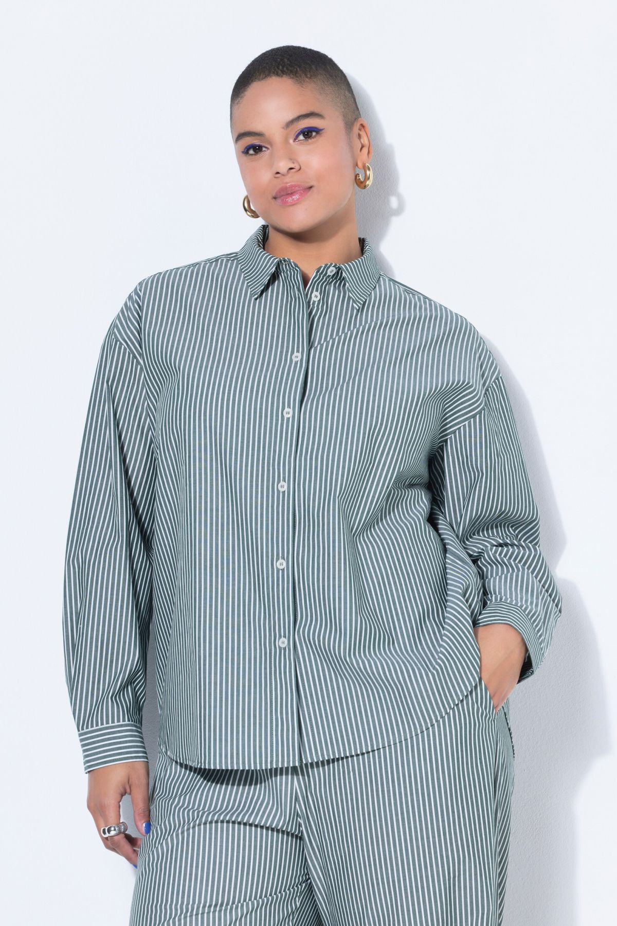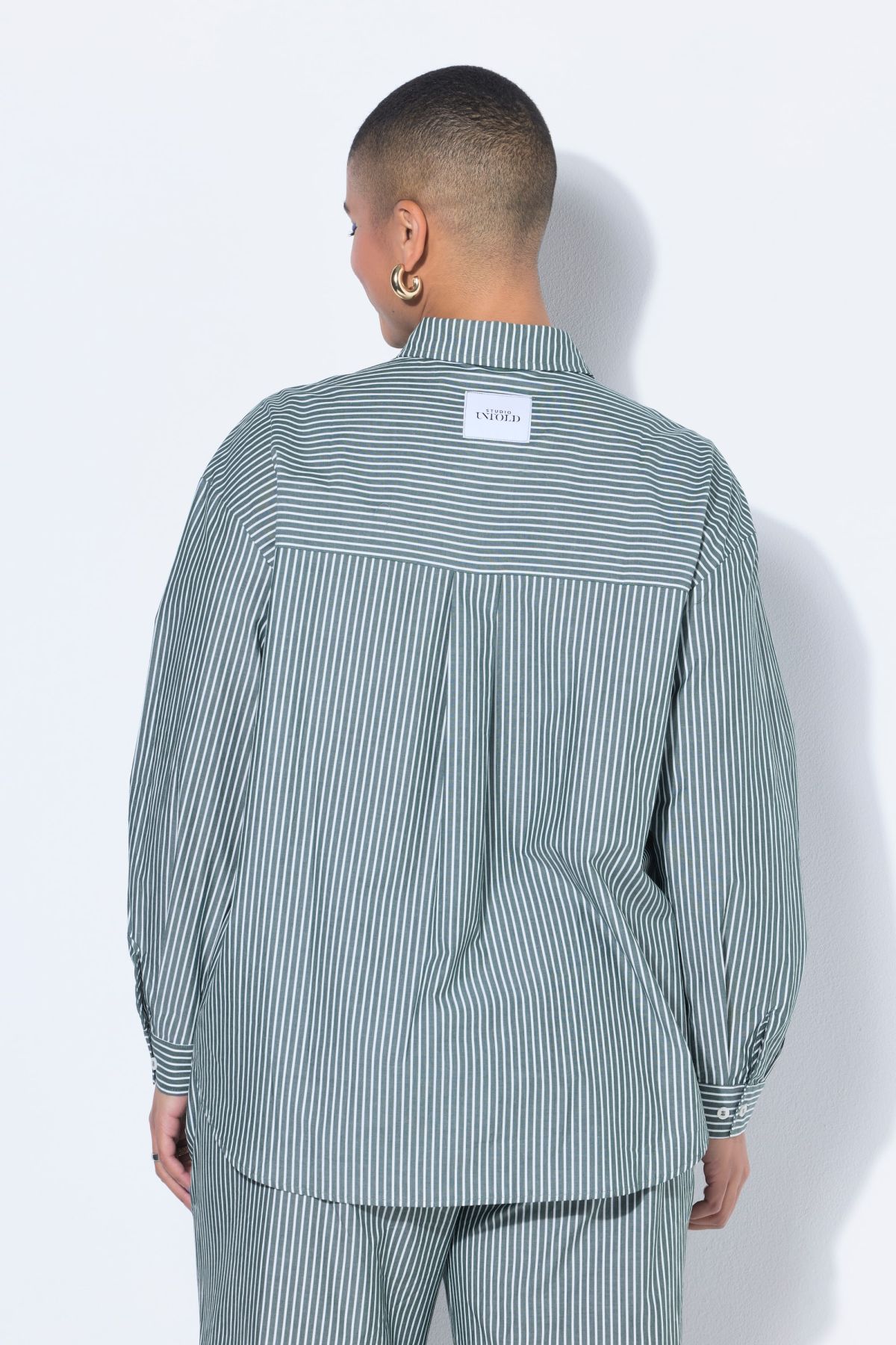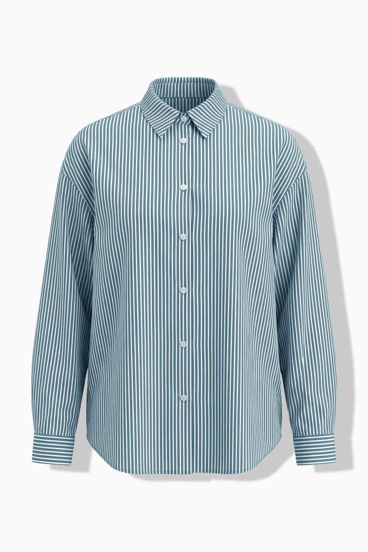 Coupe oversize, À rayures et patch, Col chemise, Manches longues avec poignetq, Base arrondie, Long. selon taille env. 76-80 cm.