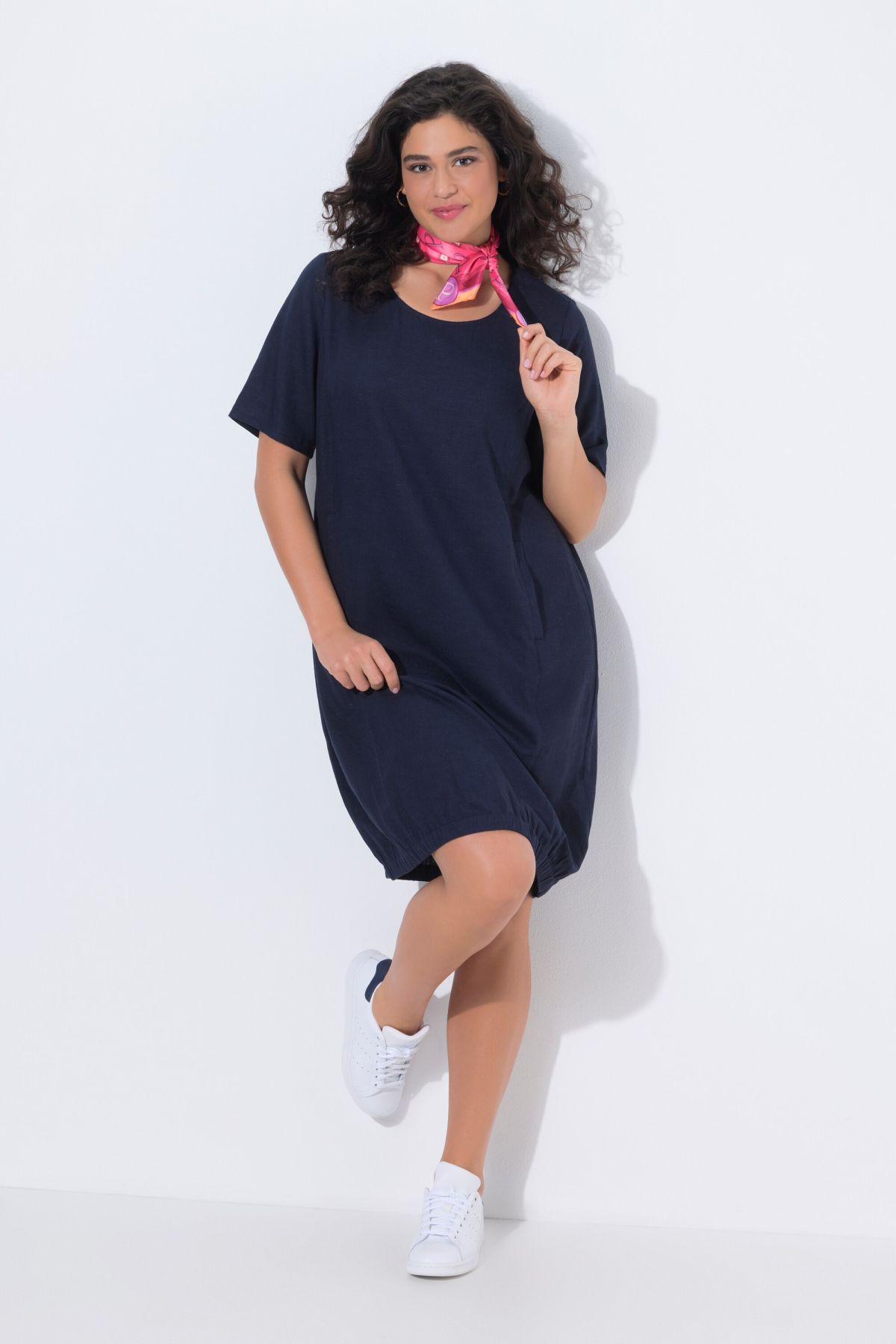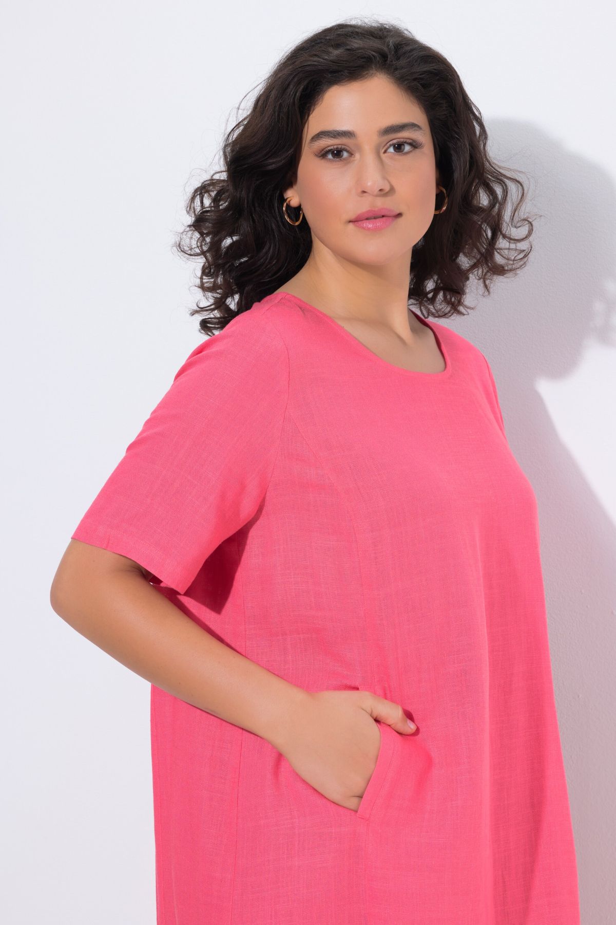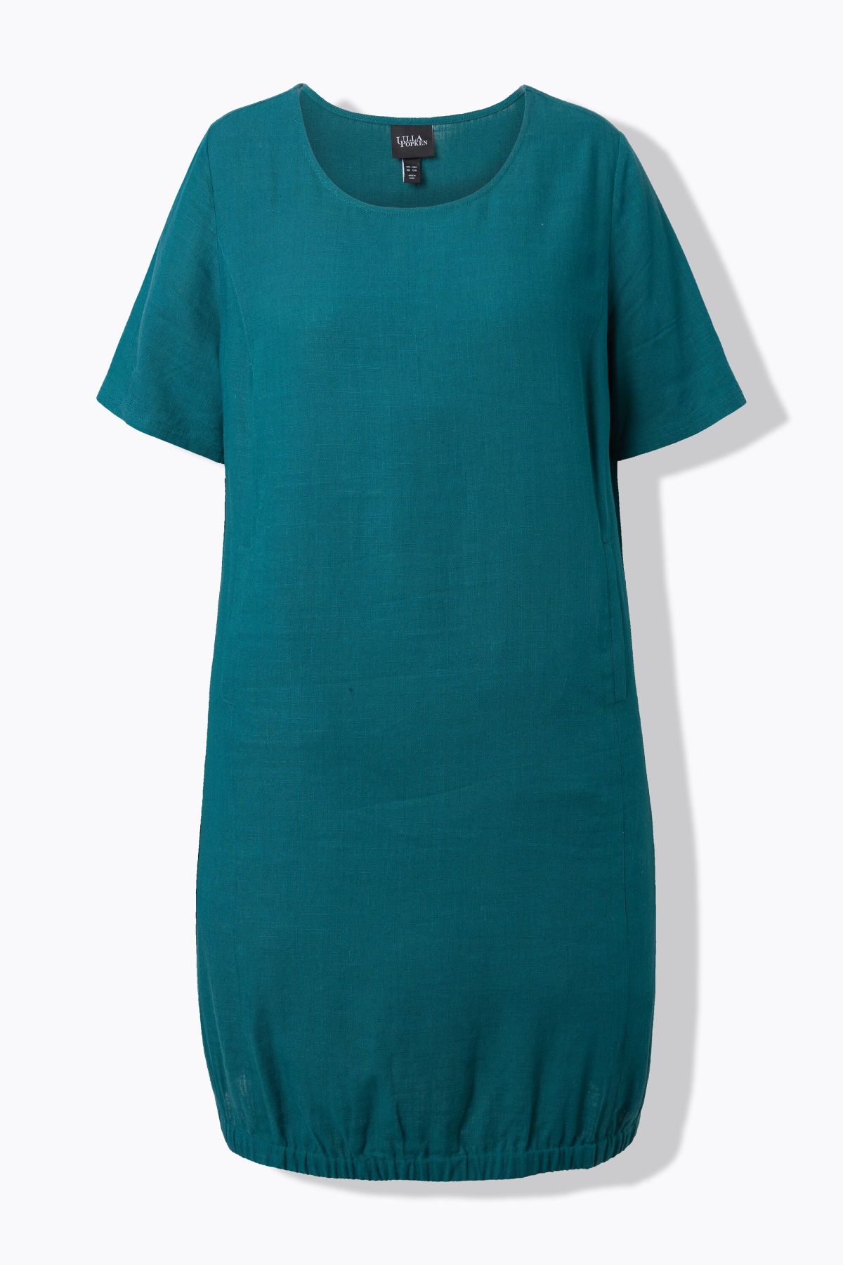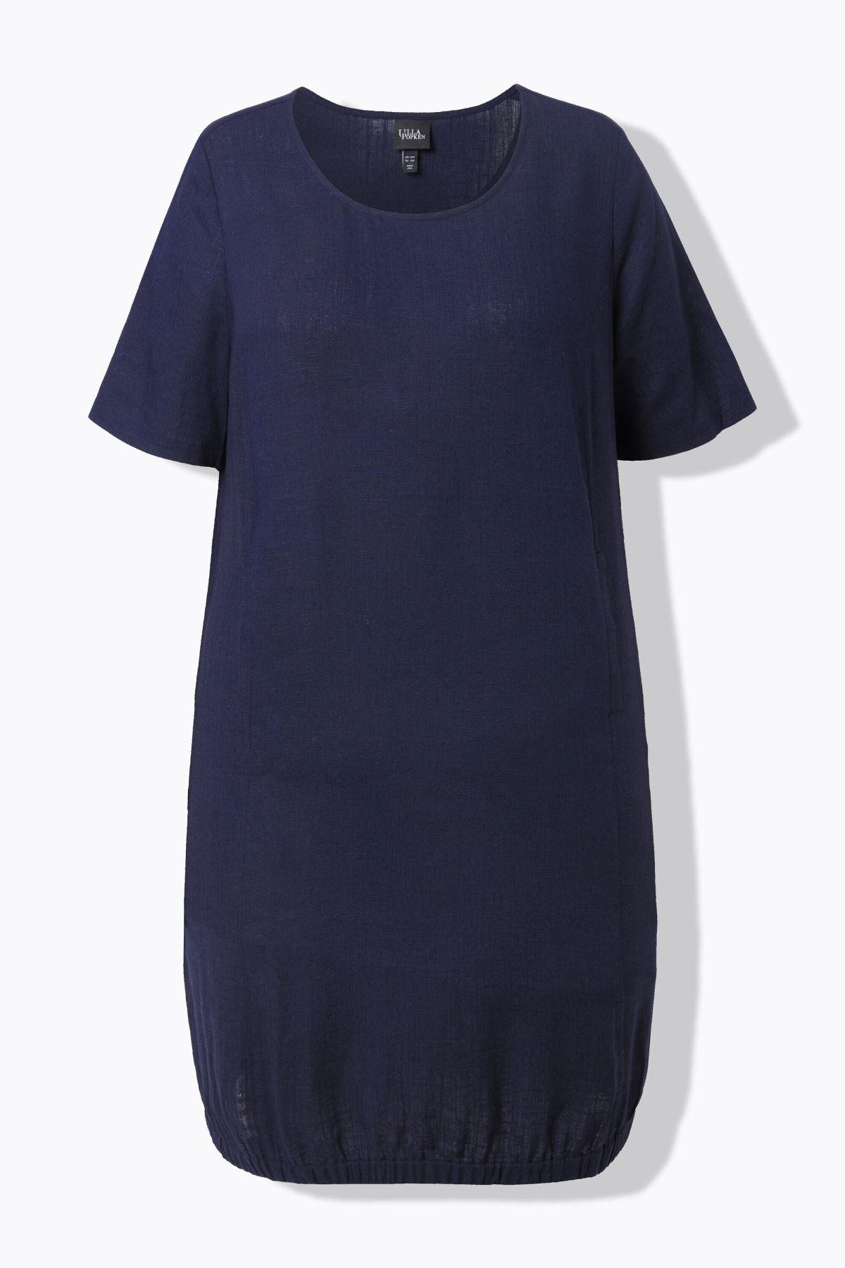 Base élastique, style « ballon », Décolleté rond, Coupe évasée, base ample et confortable, Deux poches, Mélange lin-viscose de grande qualité, Long. selon taille env. 100-104 cm.