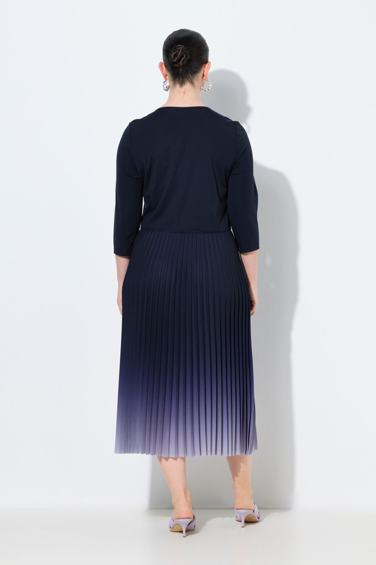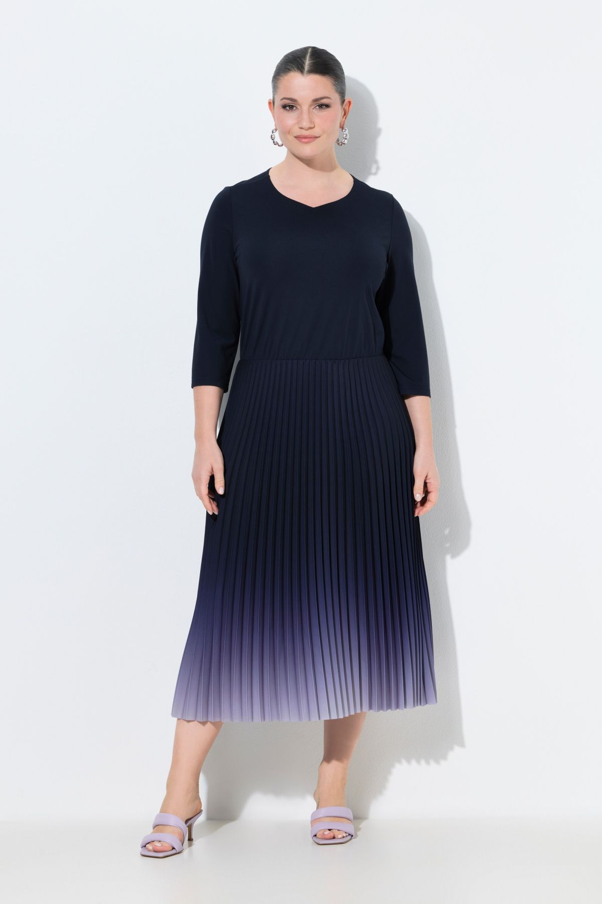 Midikleid, A-Linie, aus hochwertigem Materialmix - Oberteil aus Punto-di-Roma Jersey mit Herz-Ausschnitt und 3/4-Ärmeln. Weiter Plissee-Rock mit sanftem Farbverlauf.