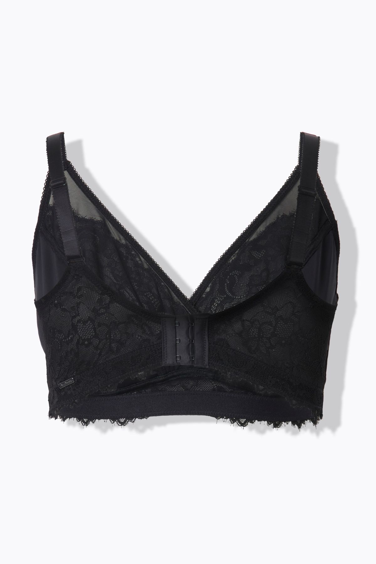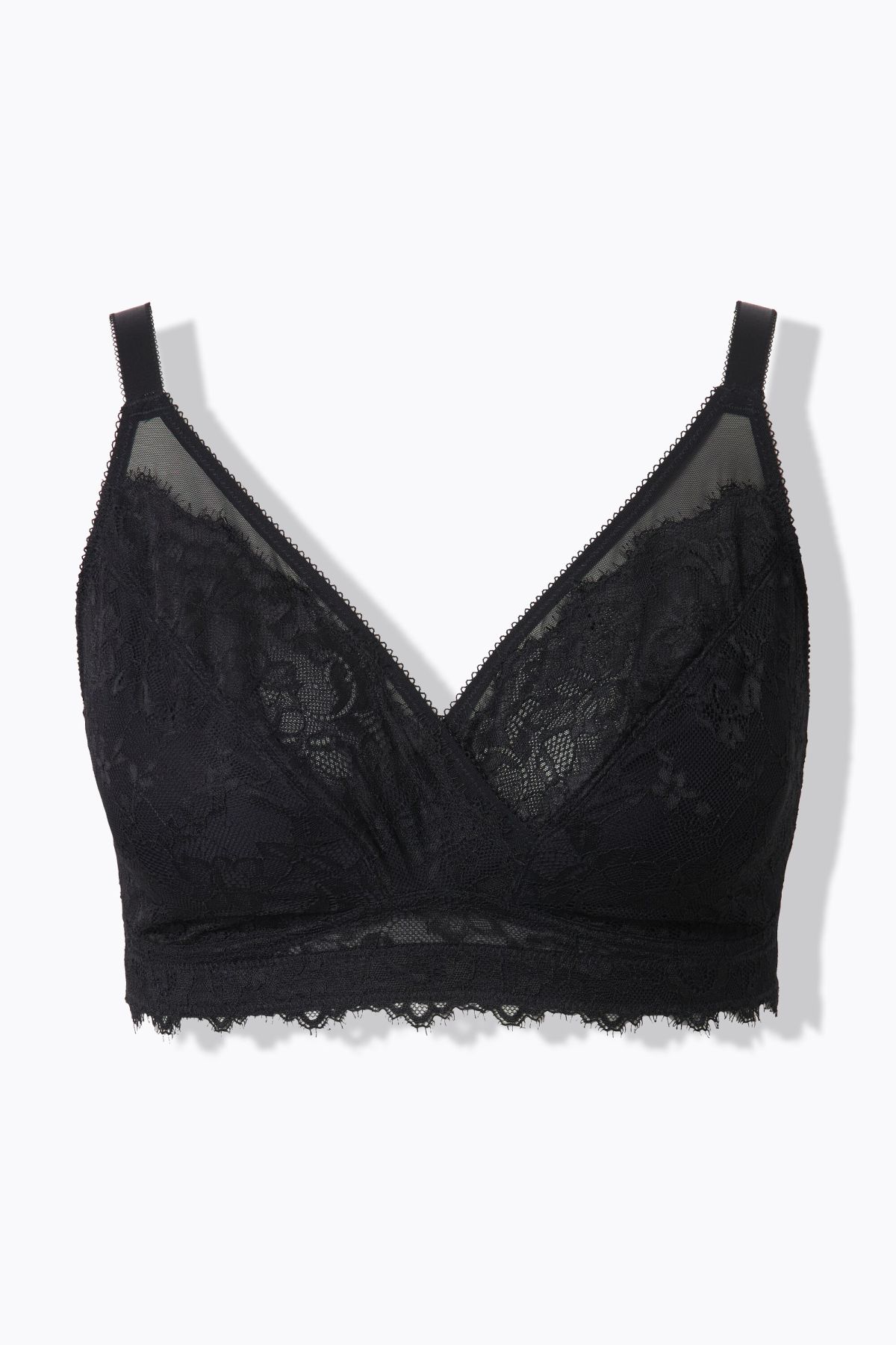 Dentelle raffinée, doublure en tulle opaque, Haut niveau de confort, sans armatures, Bande de soutien sous la poitrine, Décolleté en V, Bretelles agréablement larges