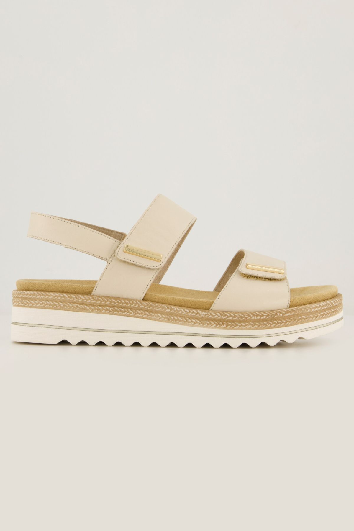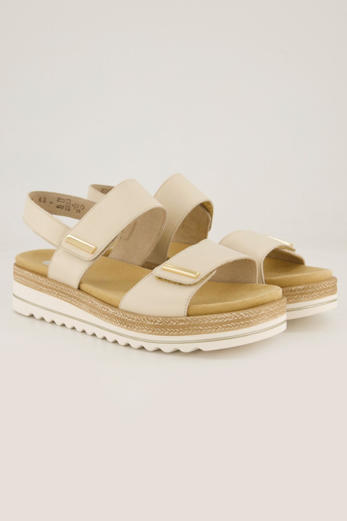 Cuir haut de gamme avec détails métalliques, Large bride avec fermeture à scratch, Semelle ergonomique amovible, offrant un bon amorti, Semelle flexible en caoutchouc, talon compensé d'env. 4 cm, Largeur F 1/2