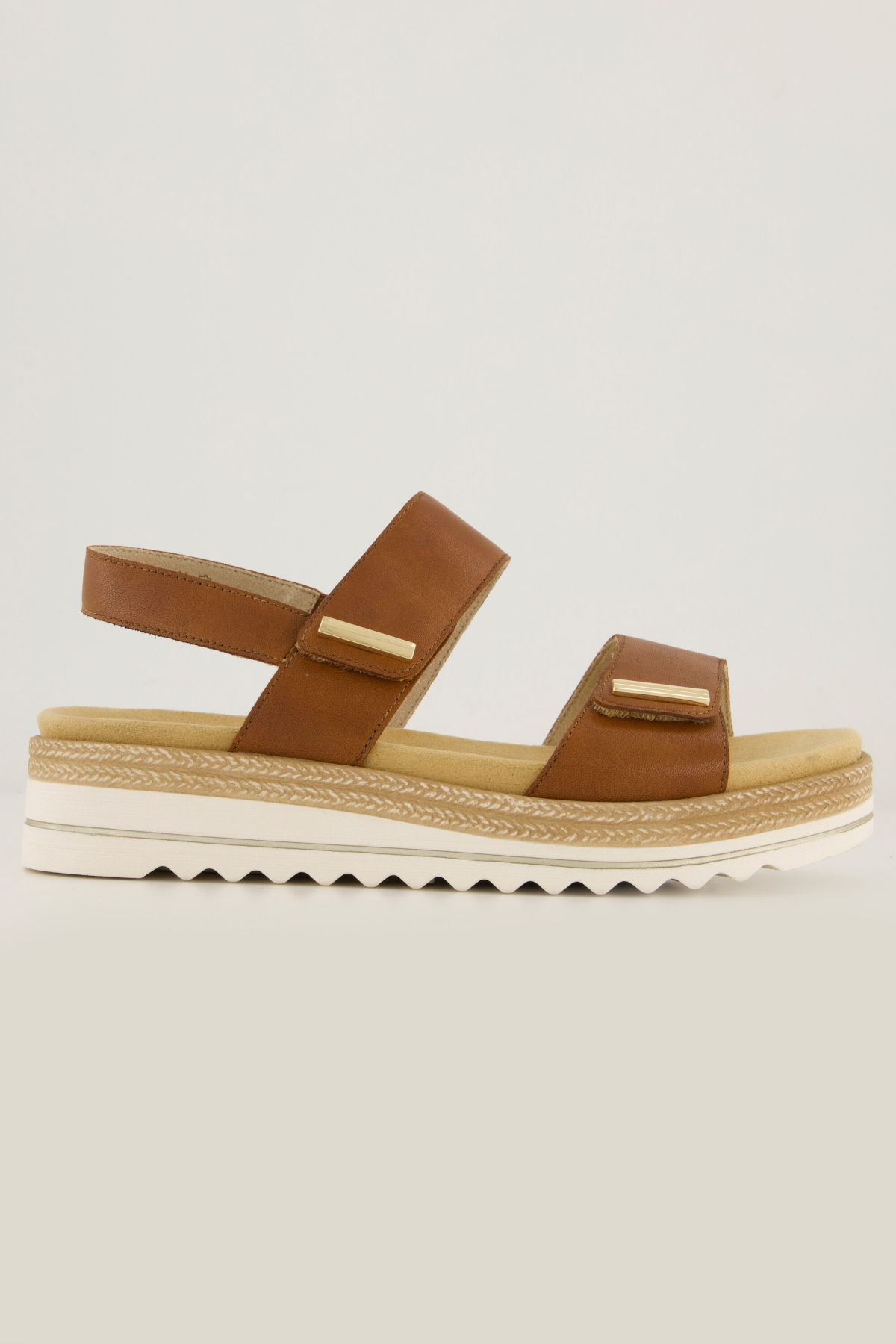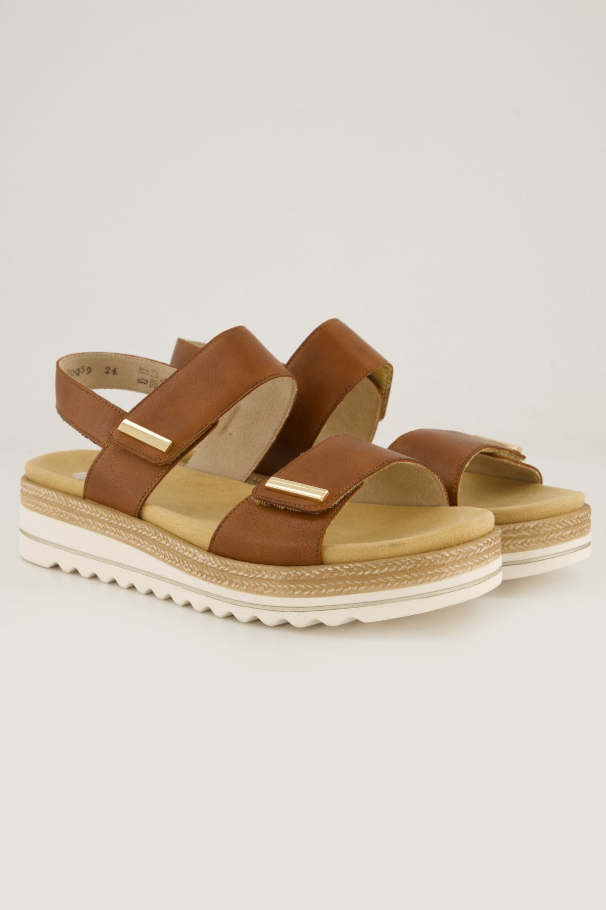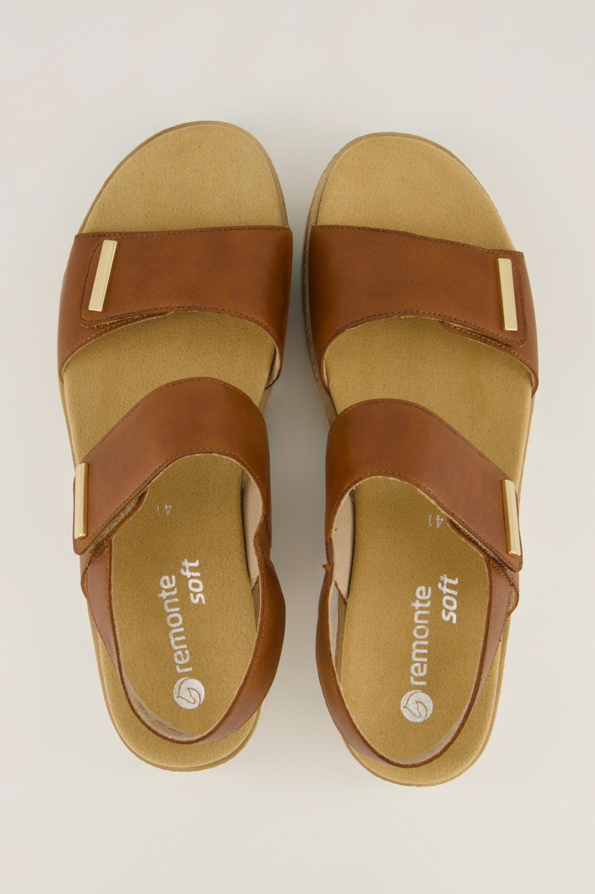 Sandales en cuir Remonte, semelle compensée et bride à scratch - largeur F 1/2