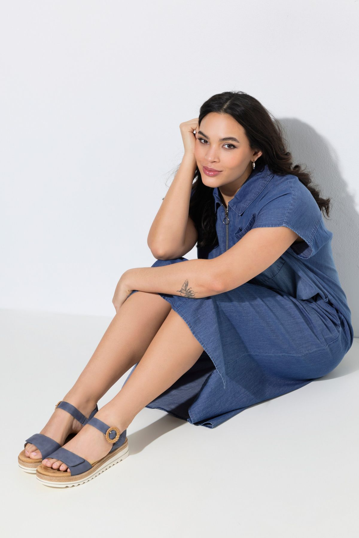 Leder-Plateausandale aus weichem Leder mit Zierschnalle am Fersenriemen mit Klettverschluss. Breiter Fuß-Riemen mit Klettverschluss schnell und bequem einstellbar. Anatomisches, trittdämpfendes Wechselfußbett, flexible Plateau-Gummisohle mit ca. 4,0 cm Keilabsatz. Weite F 1/2.