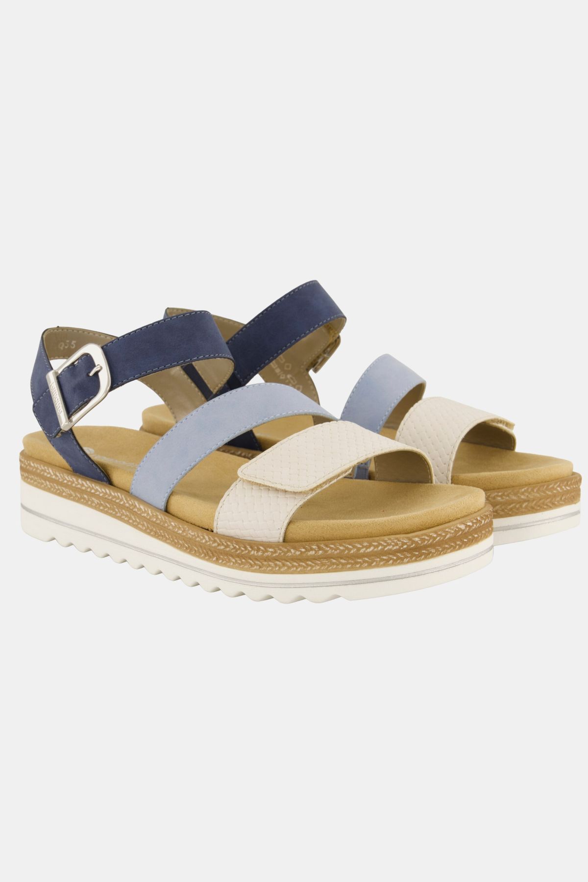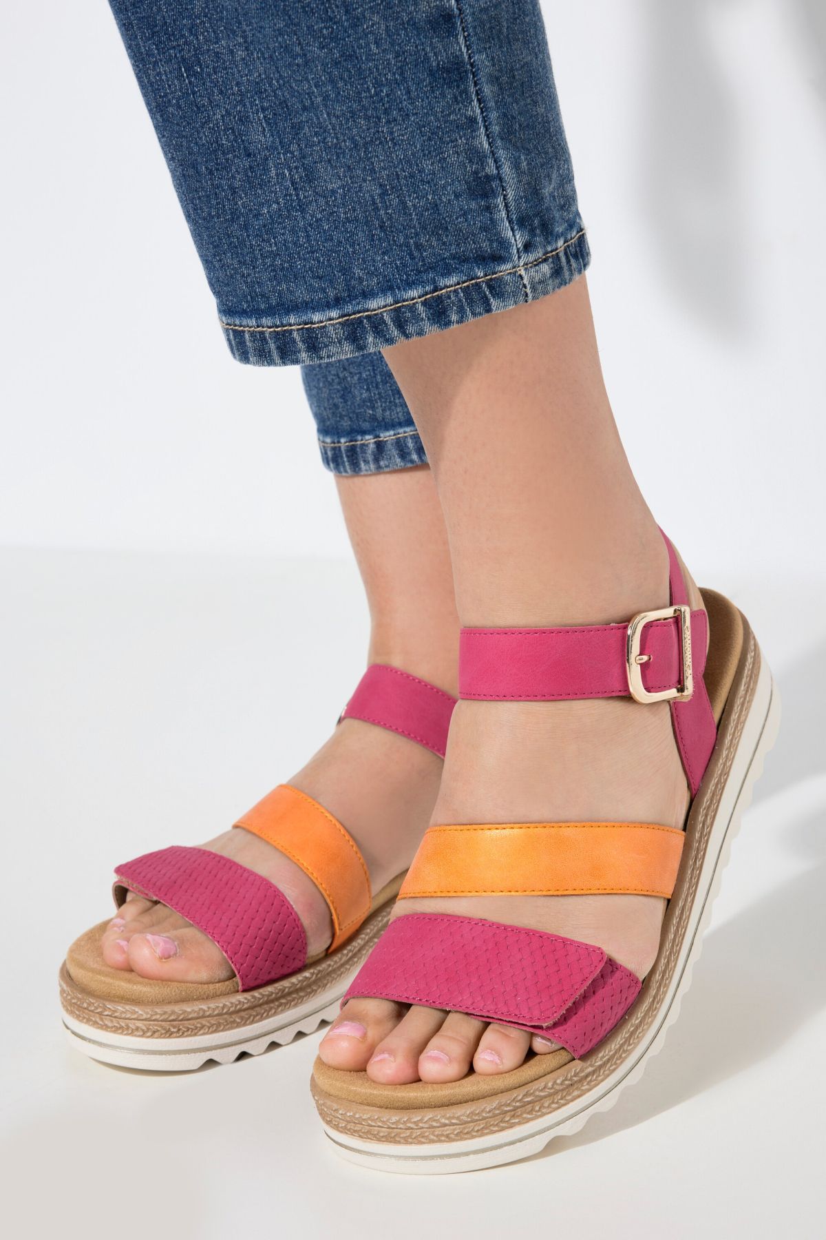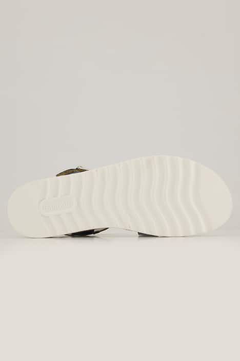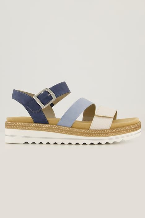 Modèle végane aspect cuir, brides colorées, Fermeture à scratch - ajustement simple et rapide, Semelle ergonomique amovible, offrant un bon amorti, Semelle flexible en caoutchouc, talon compensé d'env. 4 cm, Largeur F 1/2