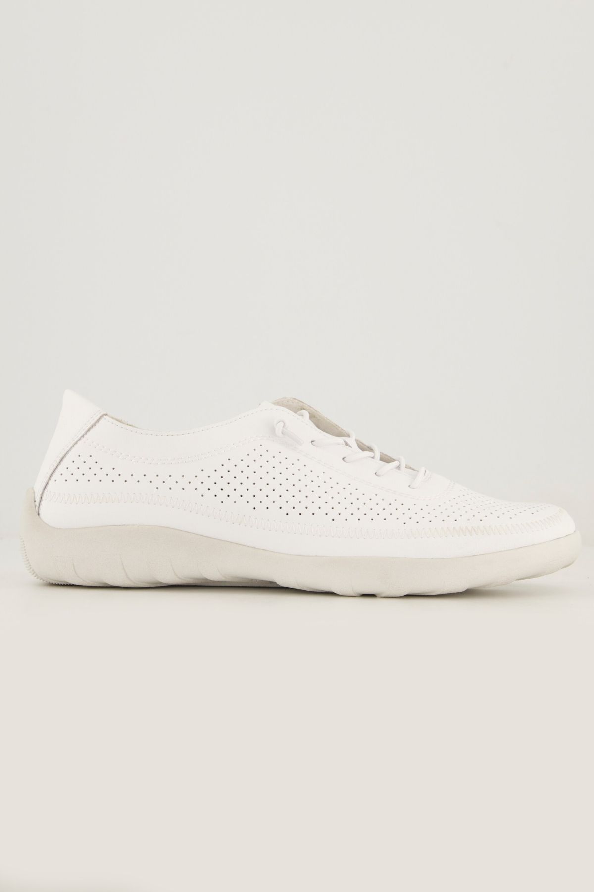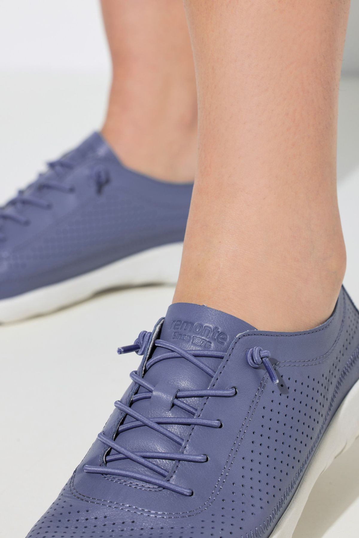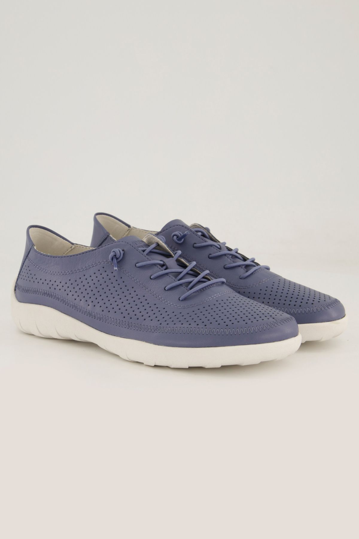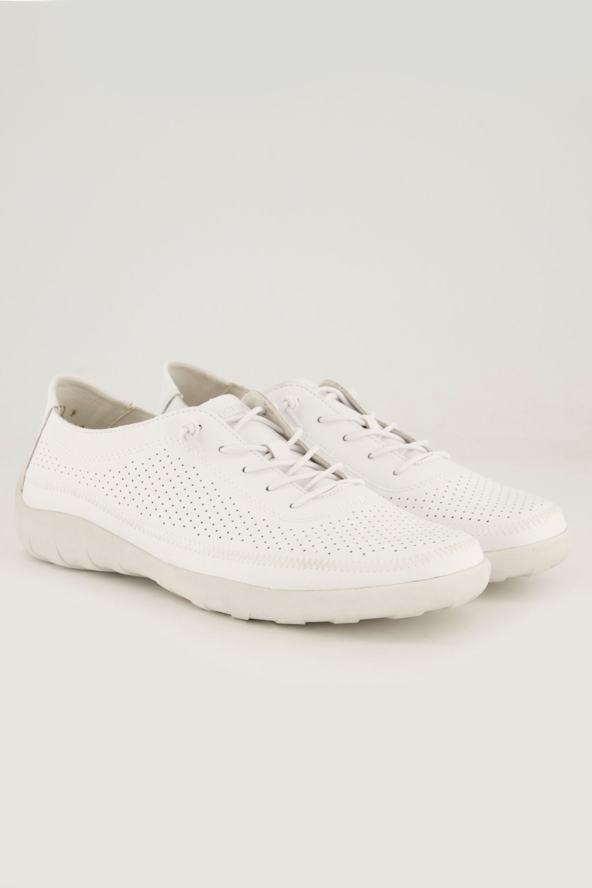 Cuir véritable de qualité supérieure, Petites perforations permettant à la chaussure de respirer, Laçage élastique, toujours confortable, Semelle de propreté ergonomique et amovible, Semelle extérieure plate et flexible en caoutchouc, talon compensé d'env