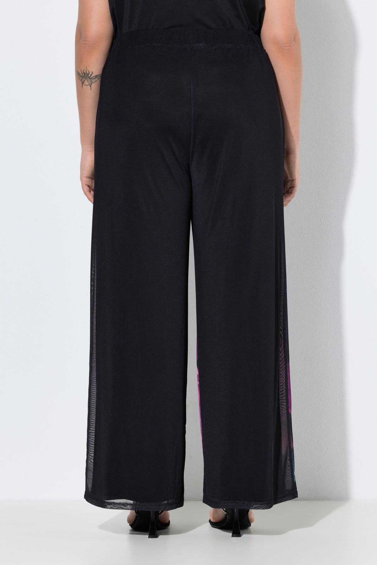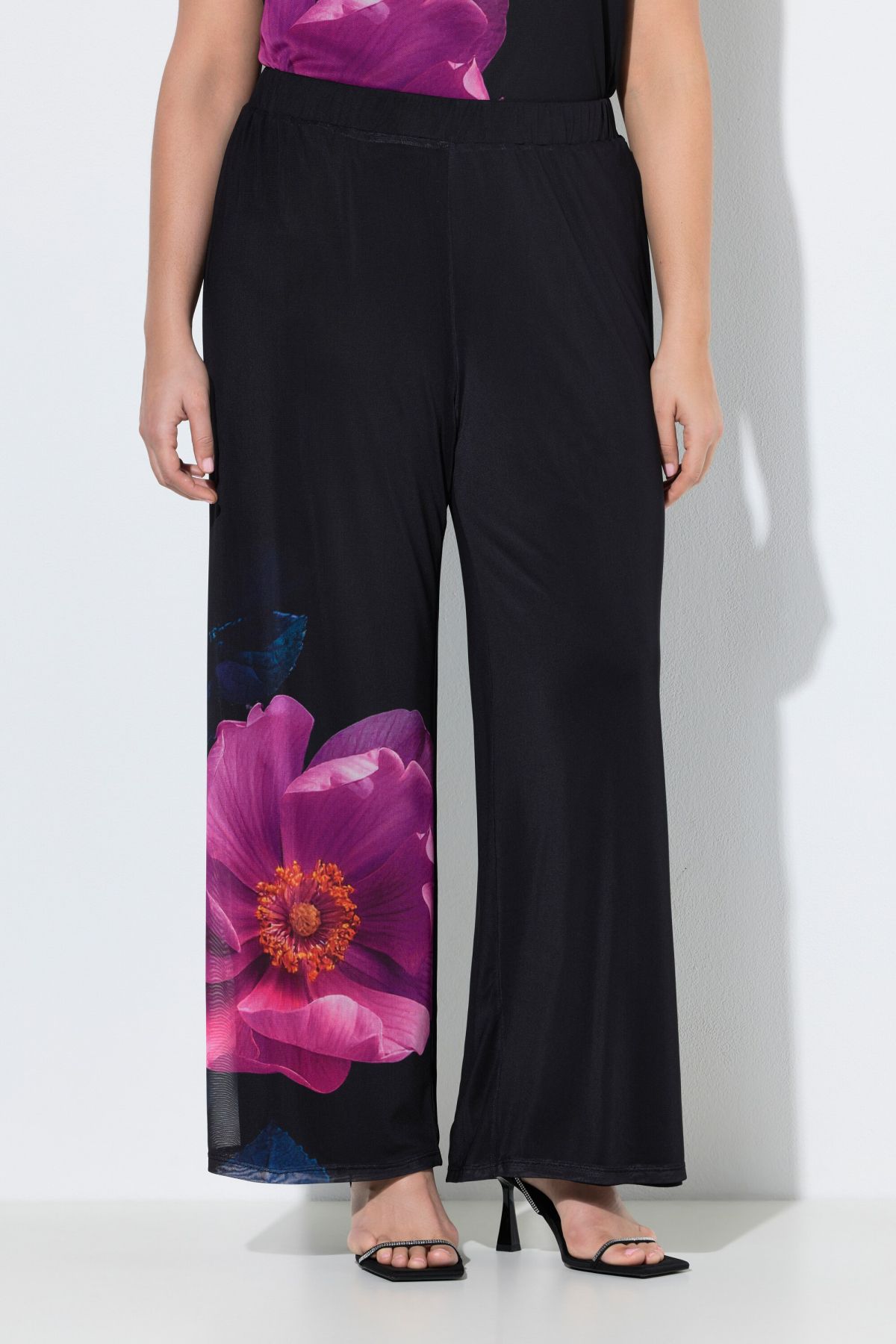 Tissu crêpe raffiné, motif fleurs sur la jambe droite, Jambe droite et large, Taille élastique confortable, Doublure intérieure en jersey opaque, Matière extensible et confortable, Entrej. env. 74 cm.
