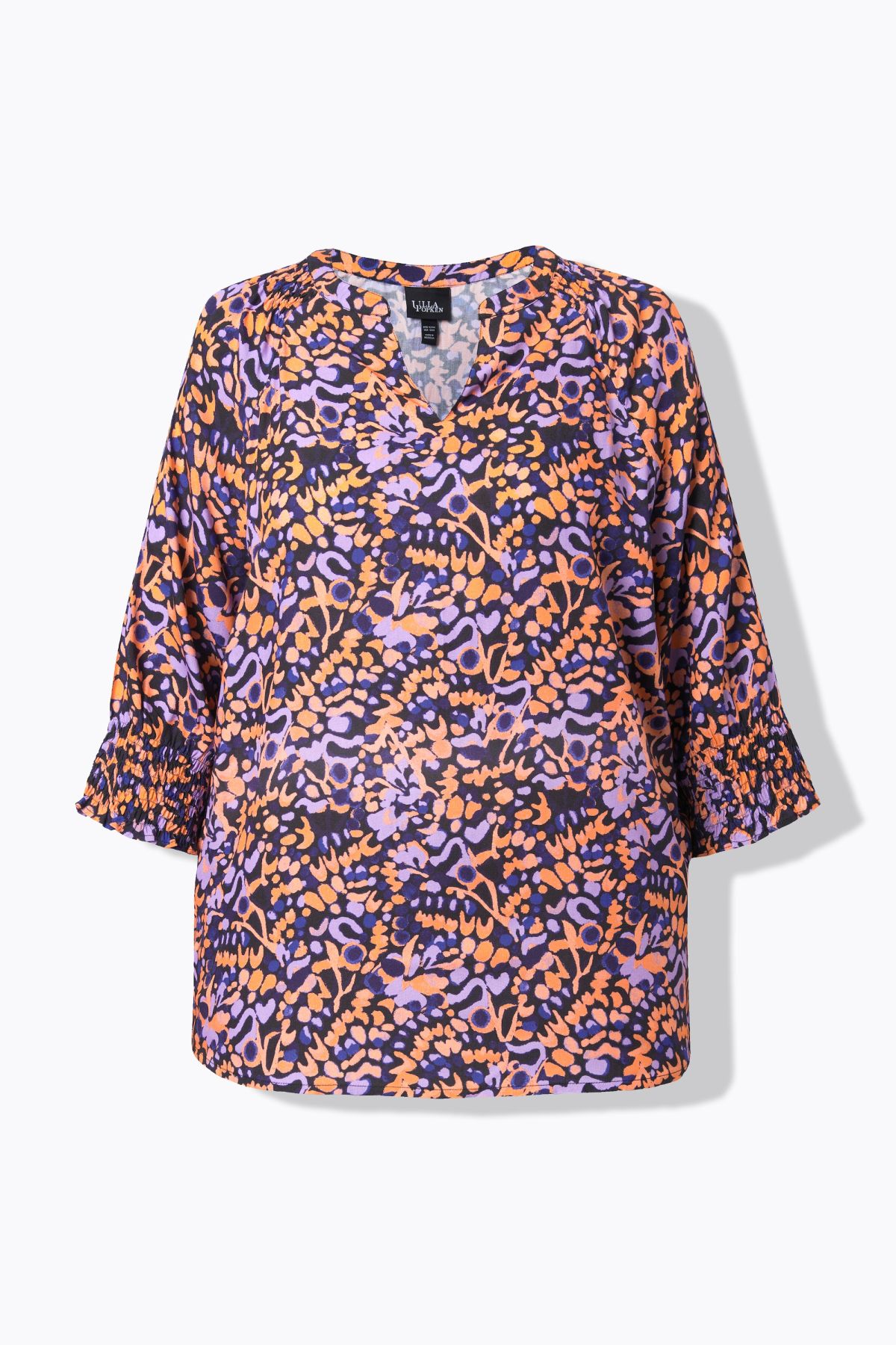 Tunique avec détails smockés, col tunisien et manches 3/4