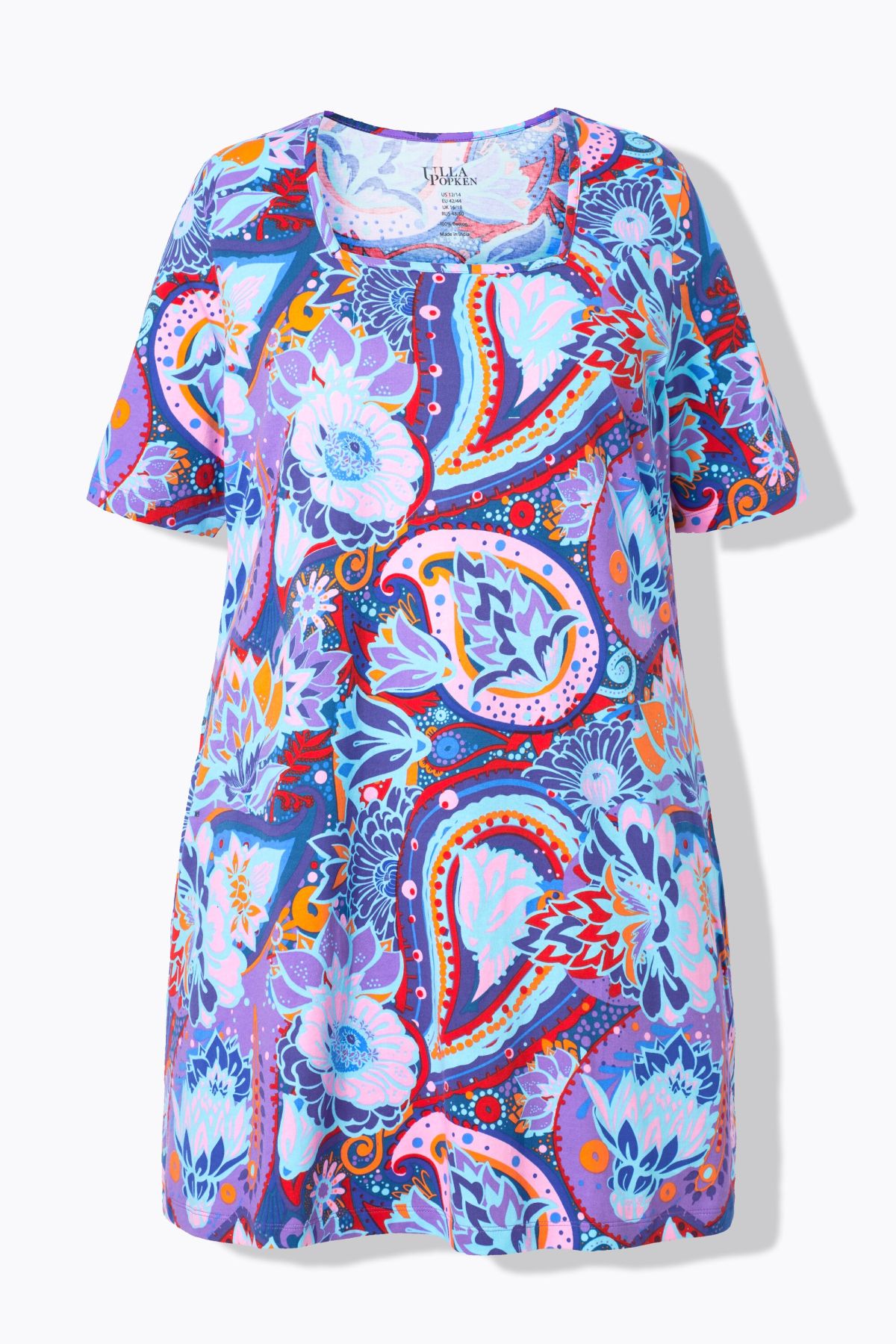 Imprimé tendance, Décolleté carré, Coupe confortable, plus longue que la normale, Poches latérales réservées dans la couture, Pur coton, Long. selon taille env. 86 cm.