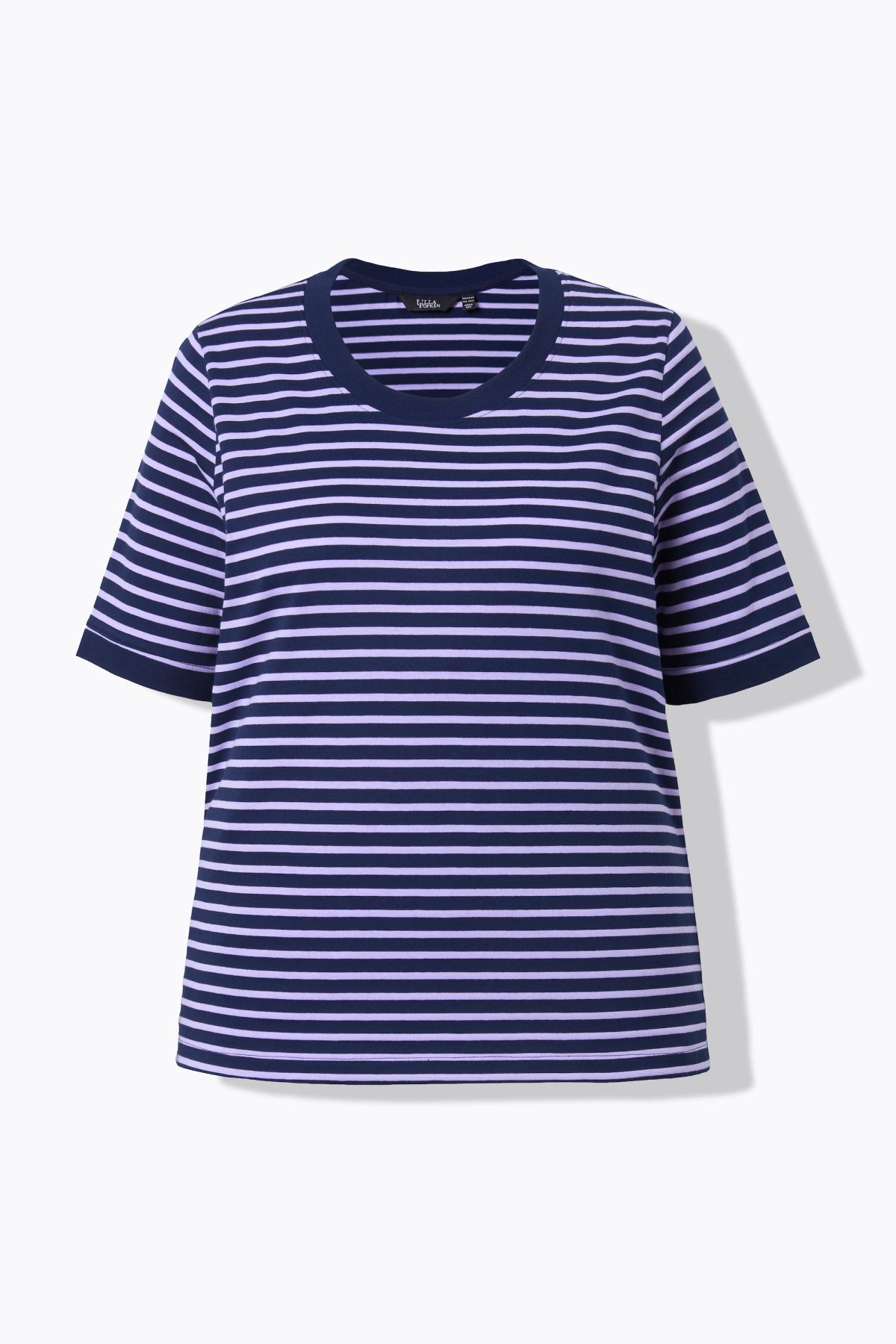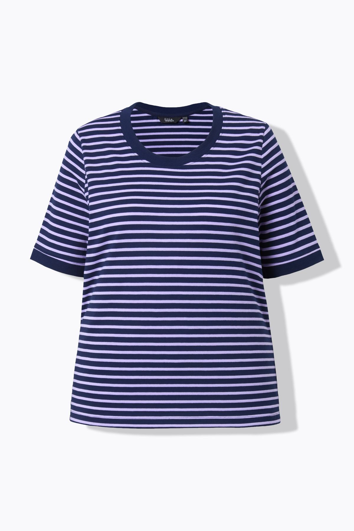 Rayures tendance, Décolleté rond, Coupe Classic Fit, Manches courtes, Pur coton, Long. selon taille env. 68-76 cm.