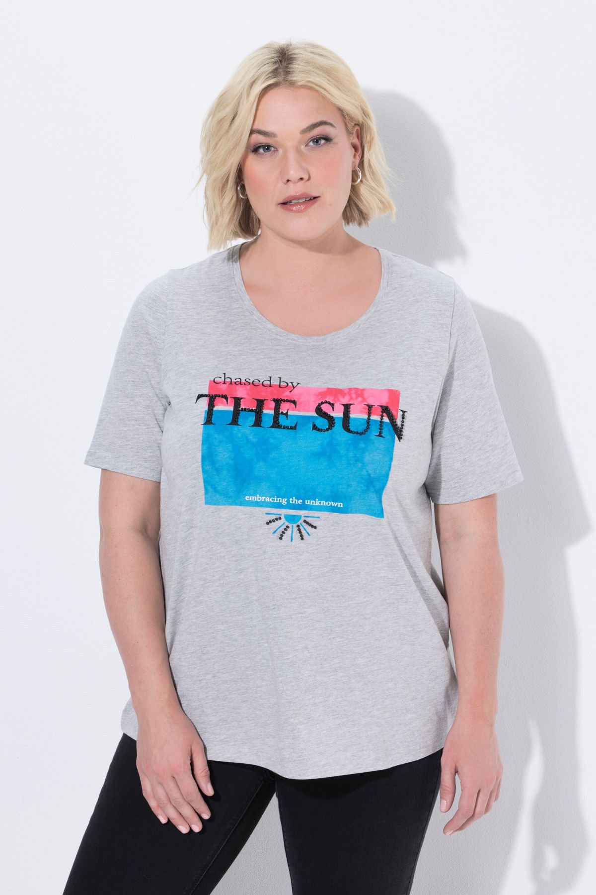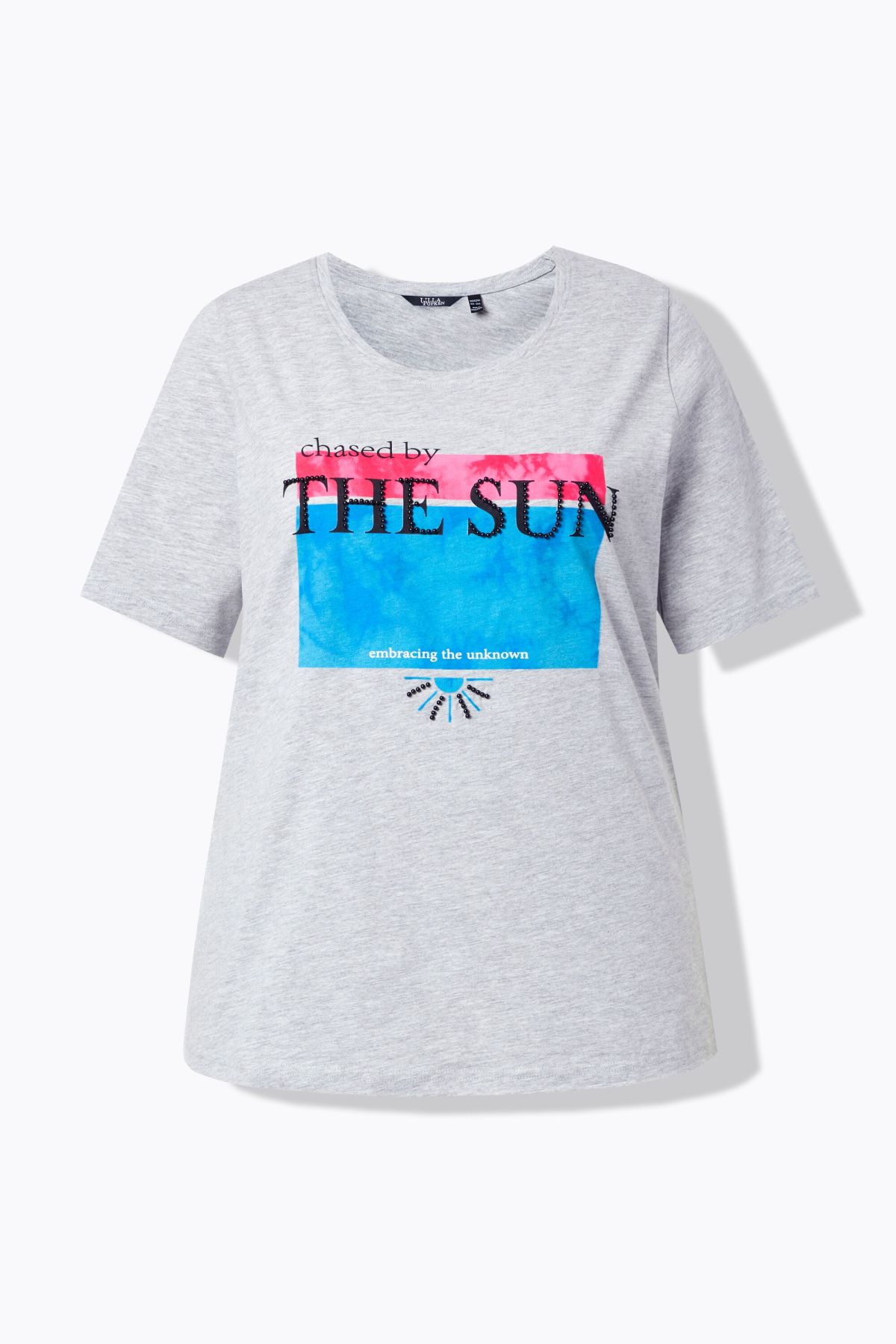 Grand imprimé avec message « The Sun », lettres en petites perles, Col rond, Coupe Classic Fit, Manches courtes, Pur coton, Long. selon taille env. 68-76 cm.