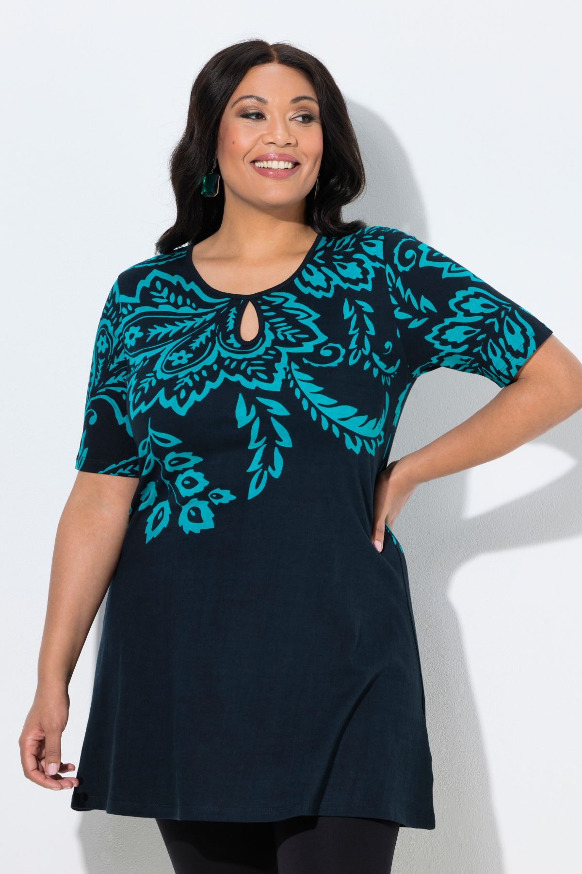 T-shirt à coupe évasée, motif tortues, décolleté en V et manches courtes