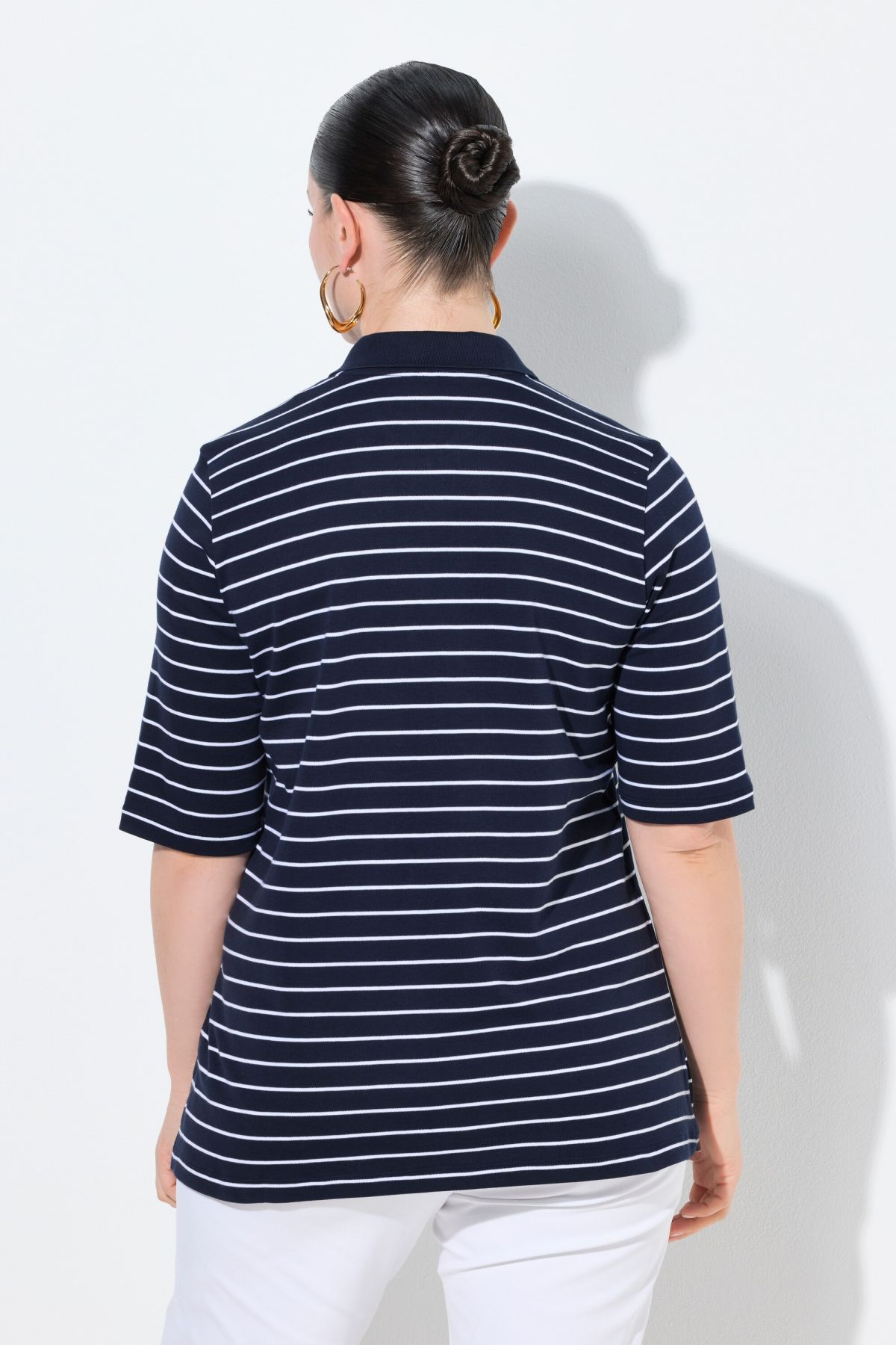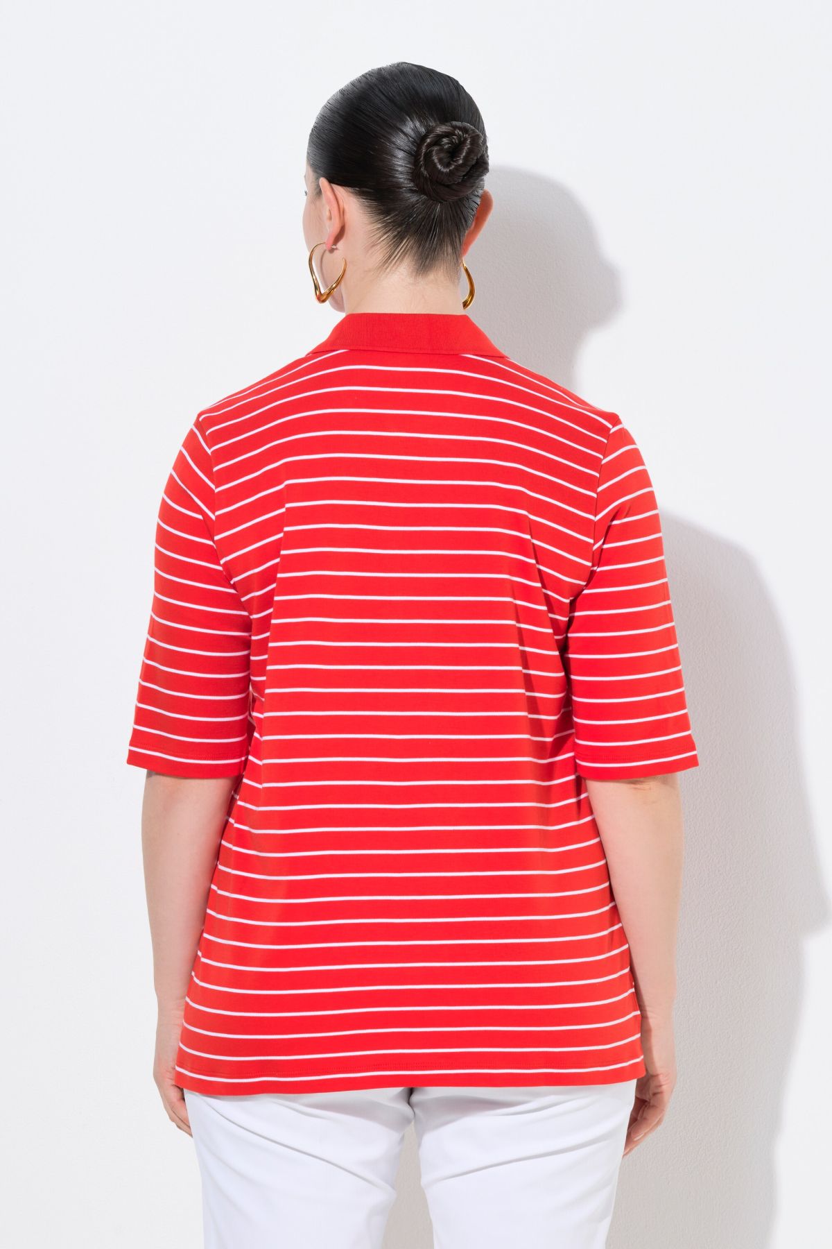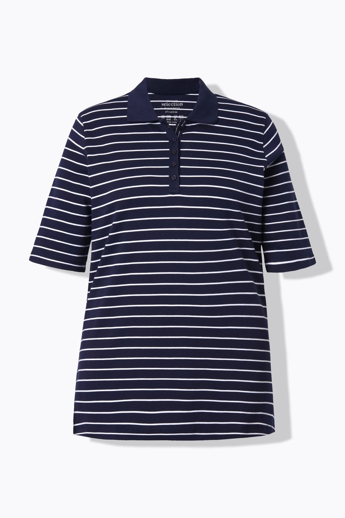 Jersey de coton doux et confortable, motif à rayures, Col polo avec patte de boutonnage, Coupe Classic Fit, Manches courtes descendant un peu plus bas que la normale, Coton Pima de très grande qualité, Long. selon taille env. 70-78 cm.