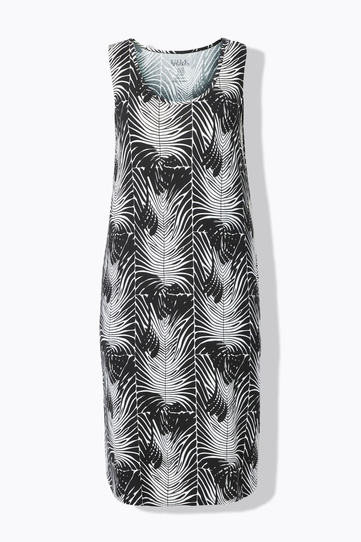 Tissu jersey confortable, imprimé tendance, Décolleté rond, Coupe évasée sans manches, base confortable, Poches latérales réservées dans la couture, Coton naturel enrichi en élasthanne, Long. env. 112-116 cm.