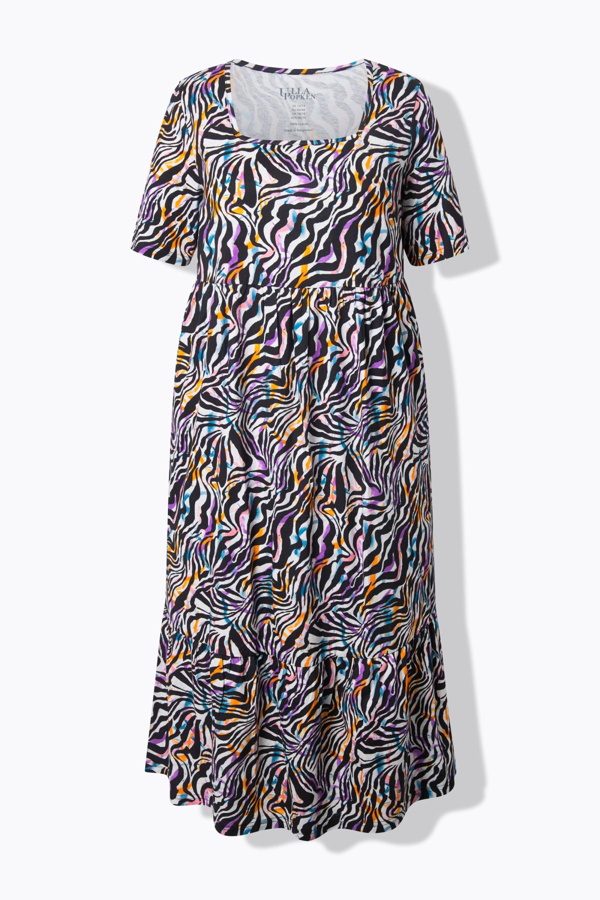 Motif animal tendance, Décolleté carré, Coupe évasée, couture empire élastique, Poches latérales réservées dans la couture, Coton naturel, Long. env. 127 cm.
