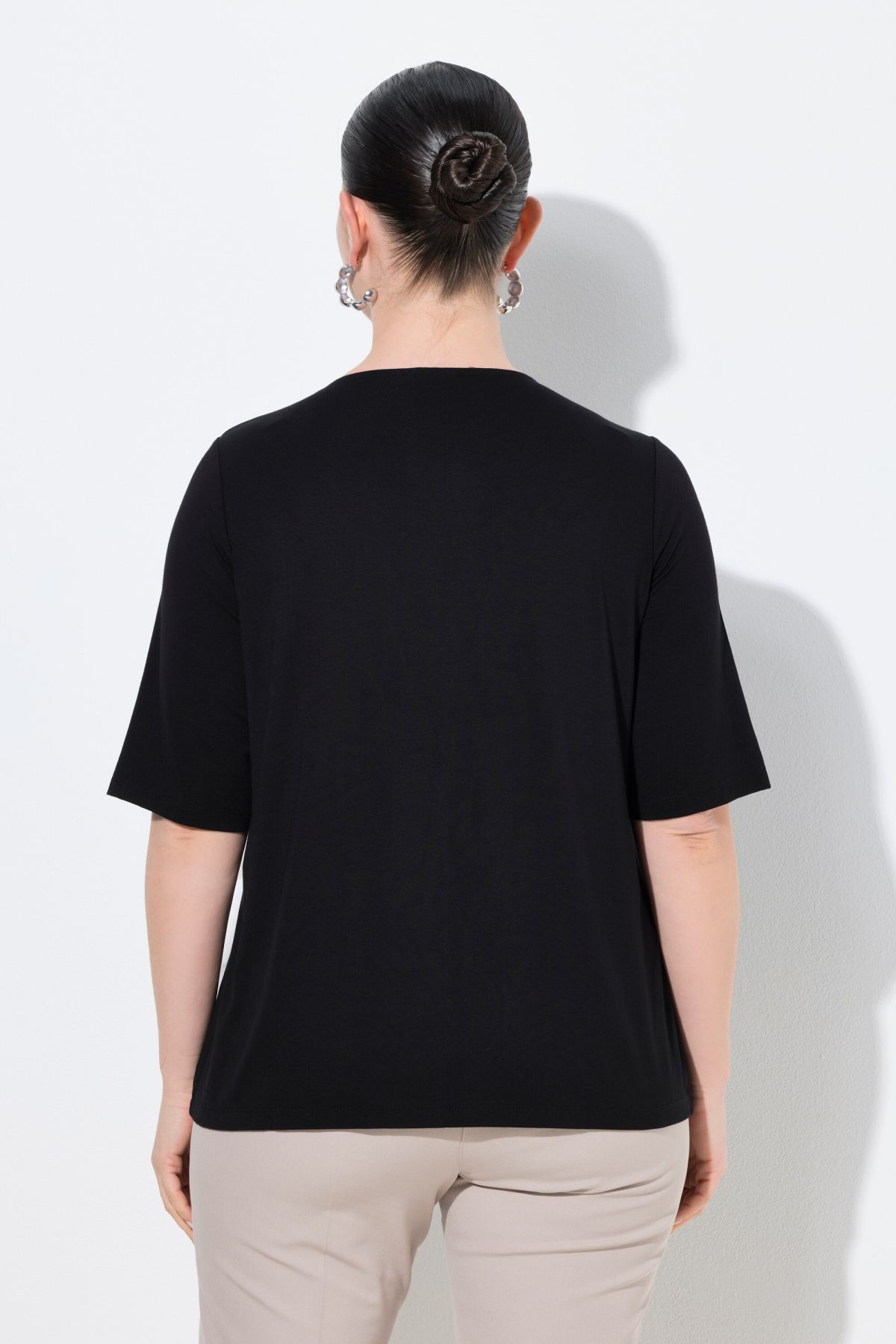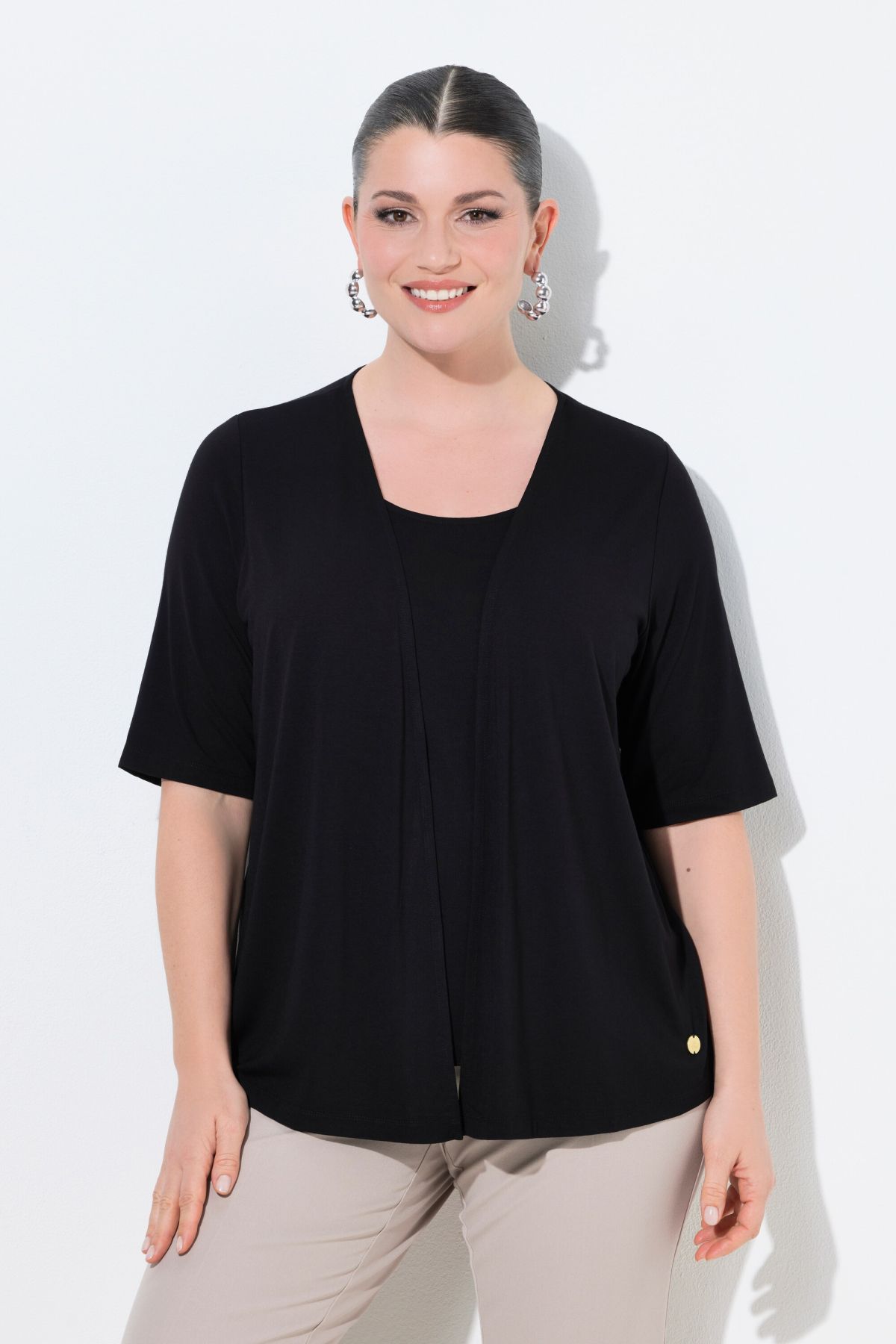 Style 2-en-1 tendance, Col rond, Coupe Classic Fit, Manches courtes descendant un peu plus bas que la normale, Viscose douce et confortable, avec élasthanne, Long. selon taille env. 64-72 cm.