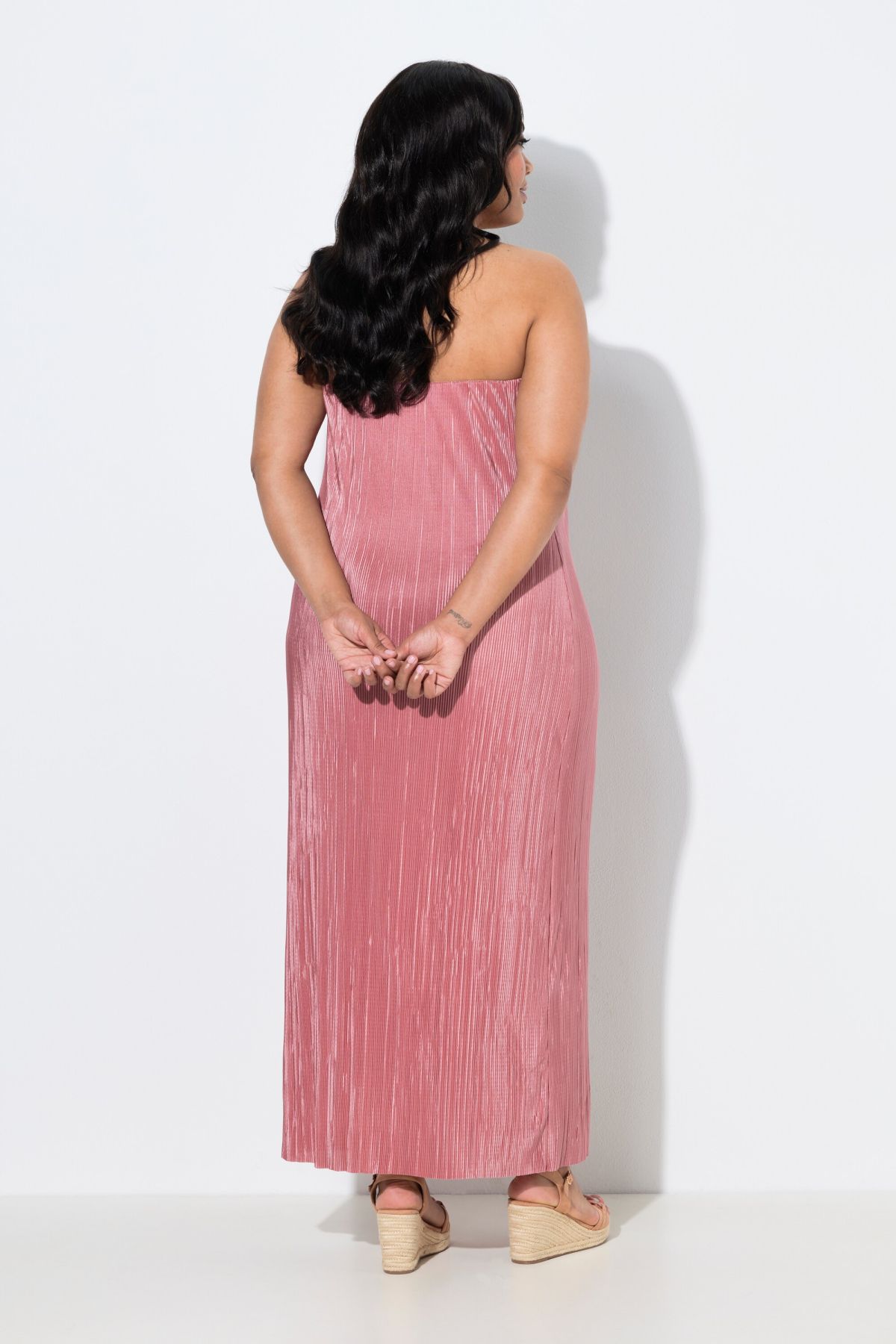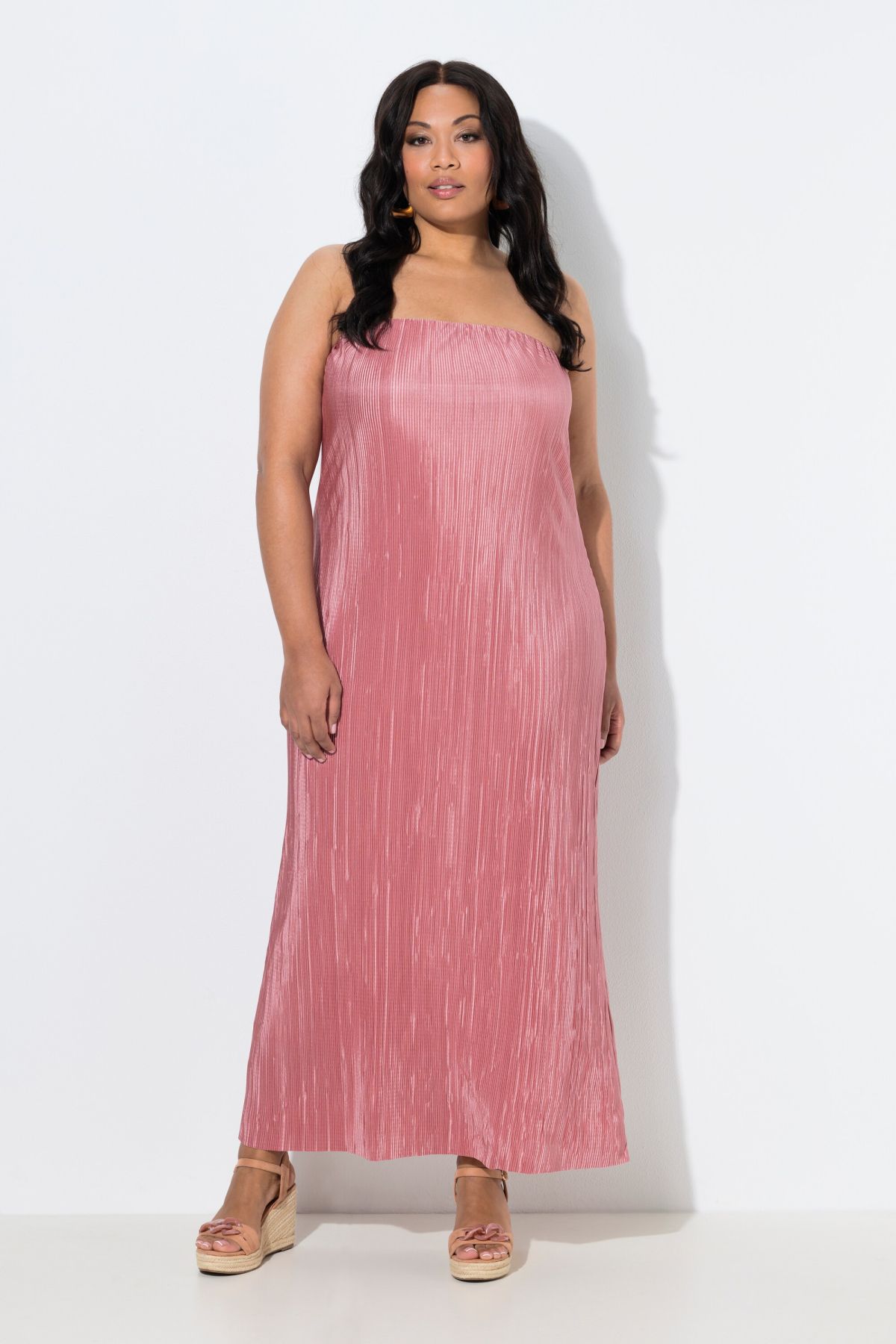 Élégant plissé, Encolure élastique, Modèle féminin épaules dénudées, Sans manches, Fond de robe en jersey doux et confortable, Longueur env. 136 cm