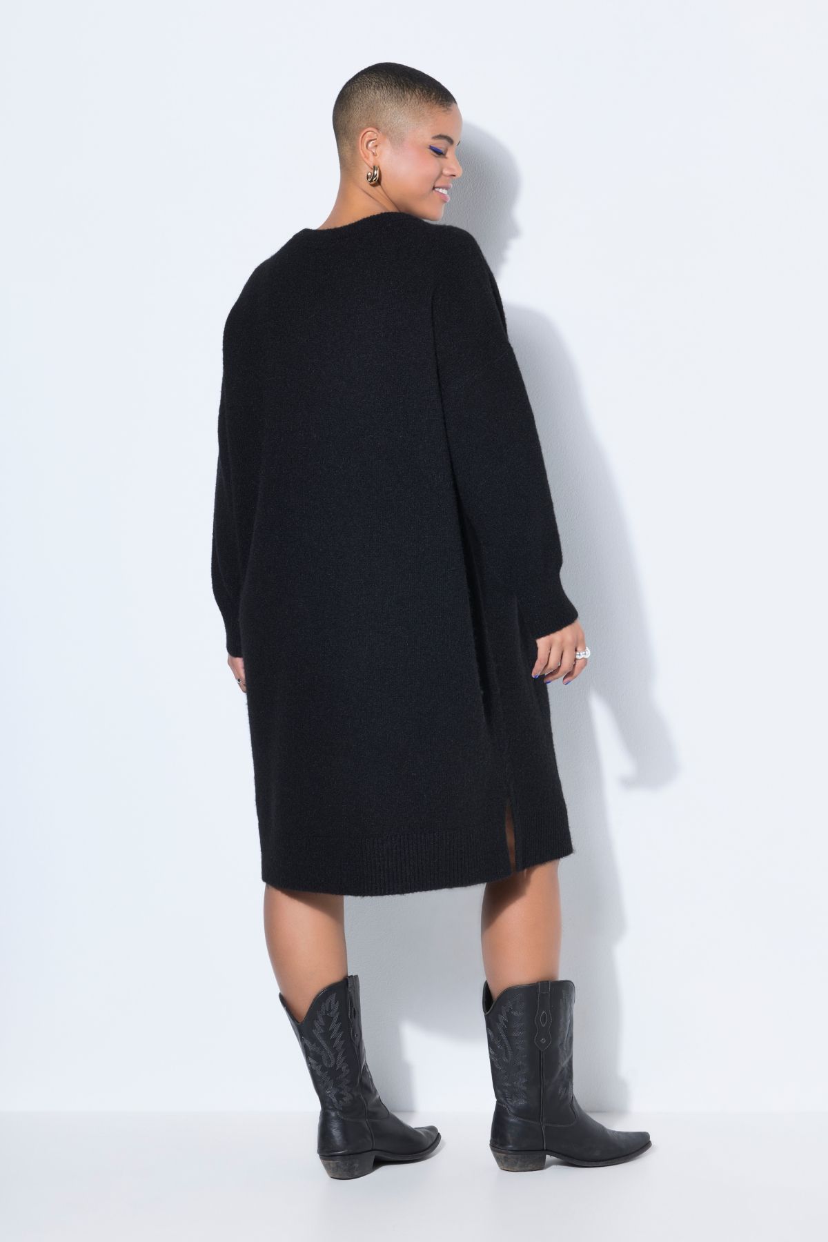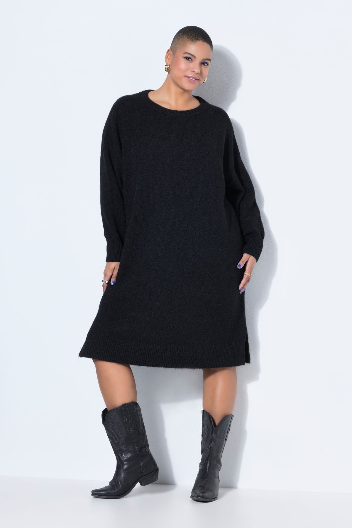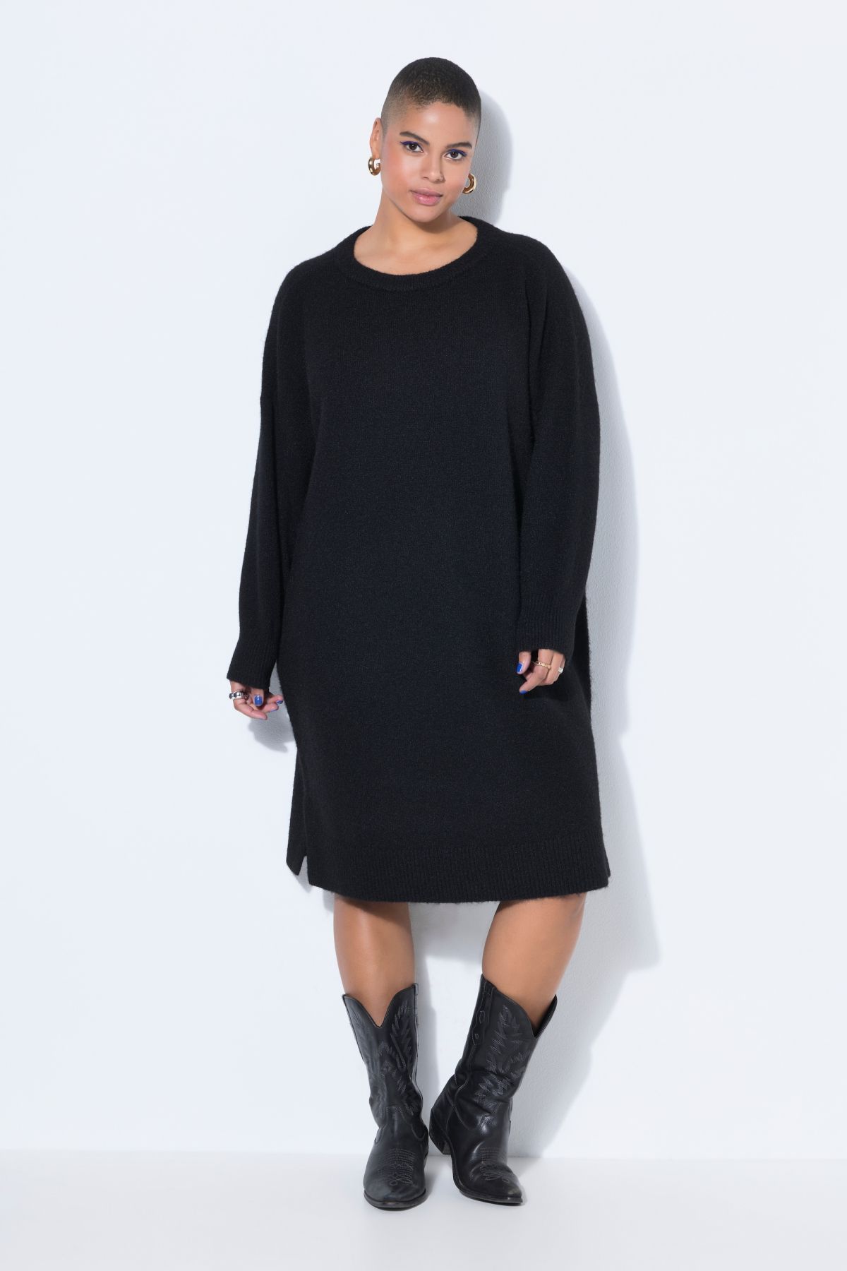 Maille fine et douce, Coupe oversize, Longueur midi, Décolleté rond, Manches longues