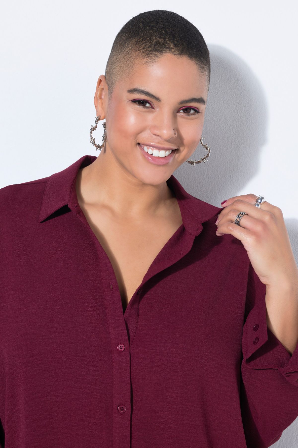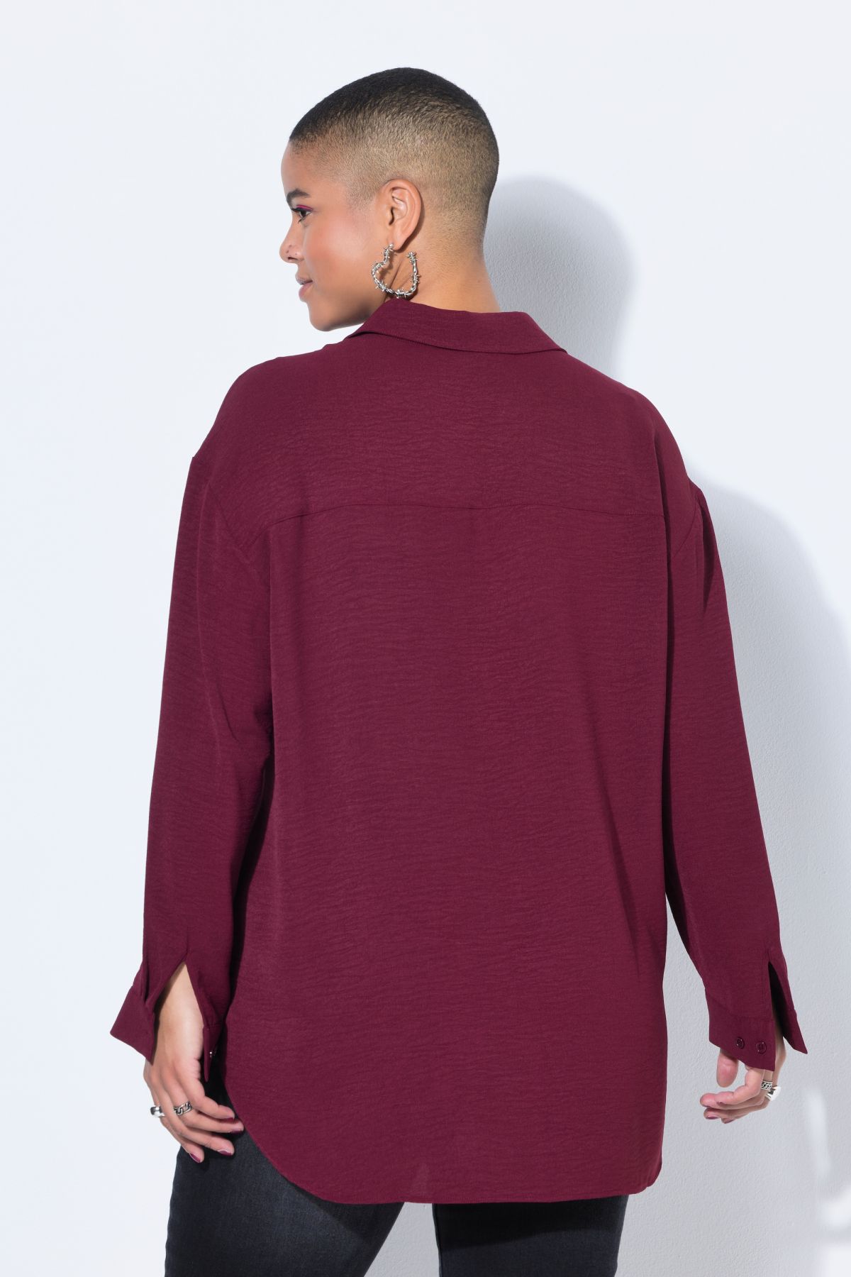 Coupe oversized, Tissu crêpe aérien, Col de chemise, Manches longues avec poignets, Base arrondie