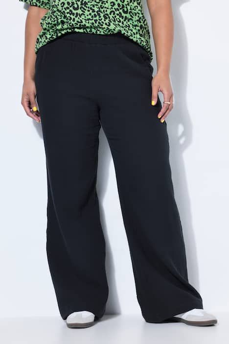 Jambes larges, Mousseline tendance finement texturée, Taille élastique, Poches latérales réservées dans la couture, Entrej. env. 82 cm.