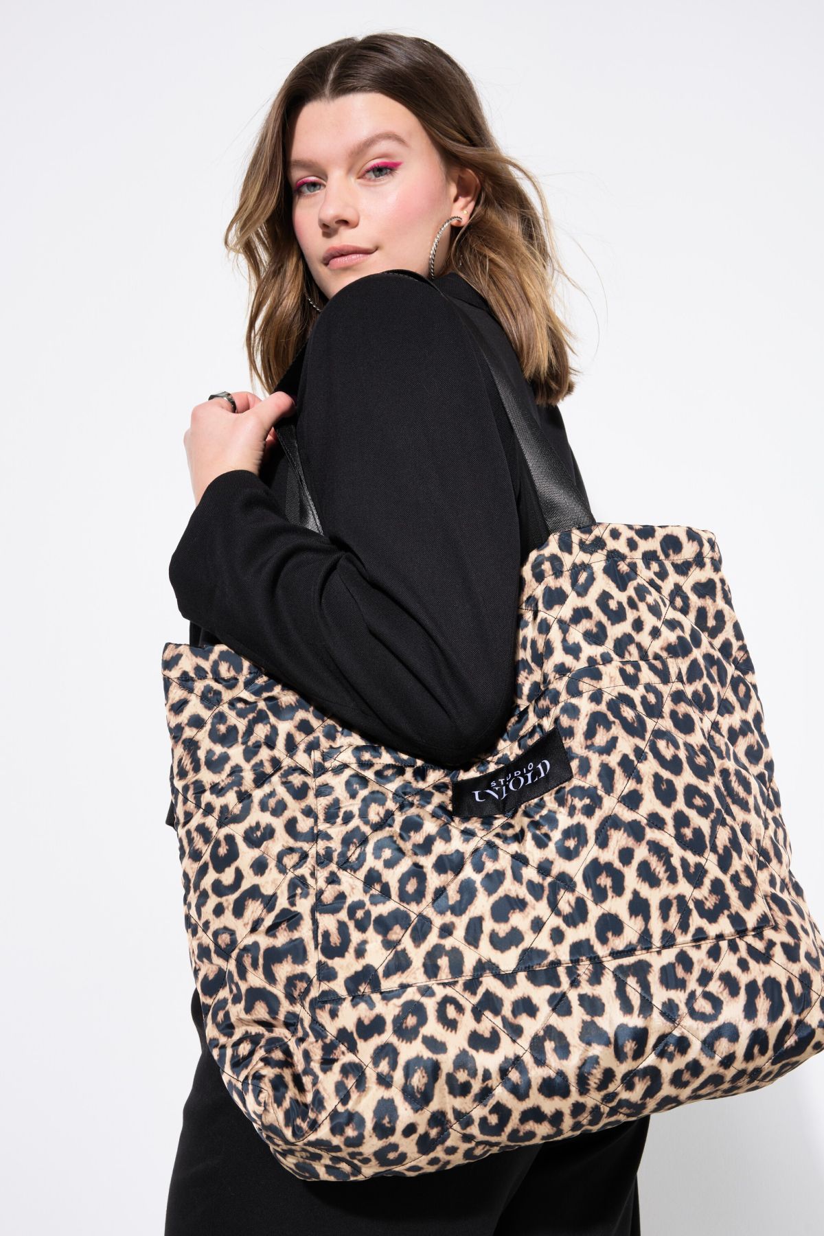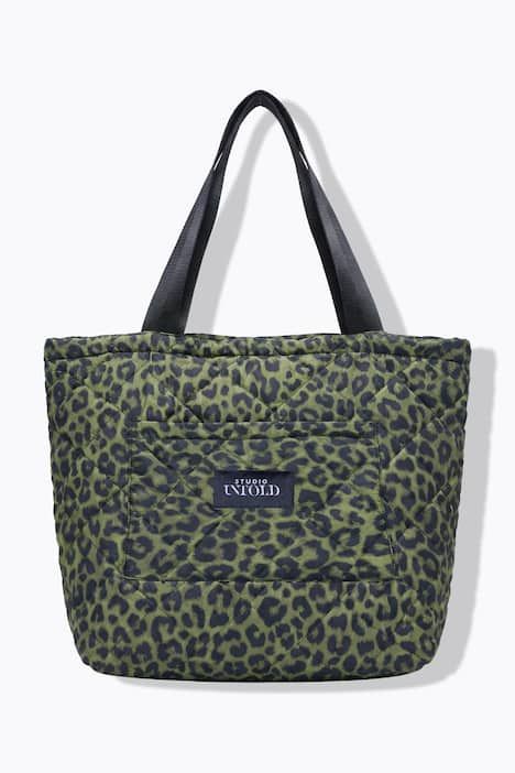 Imprimé léopard, Surpiqûres, Poches plaquées avec fermeture velcro, Poche intérieure zippée, Fermeture magnétique