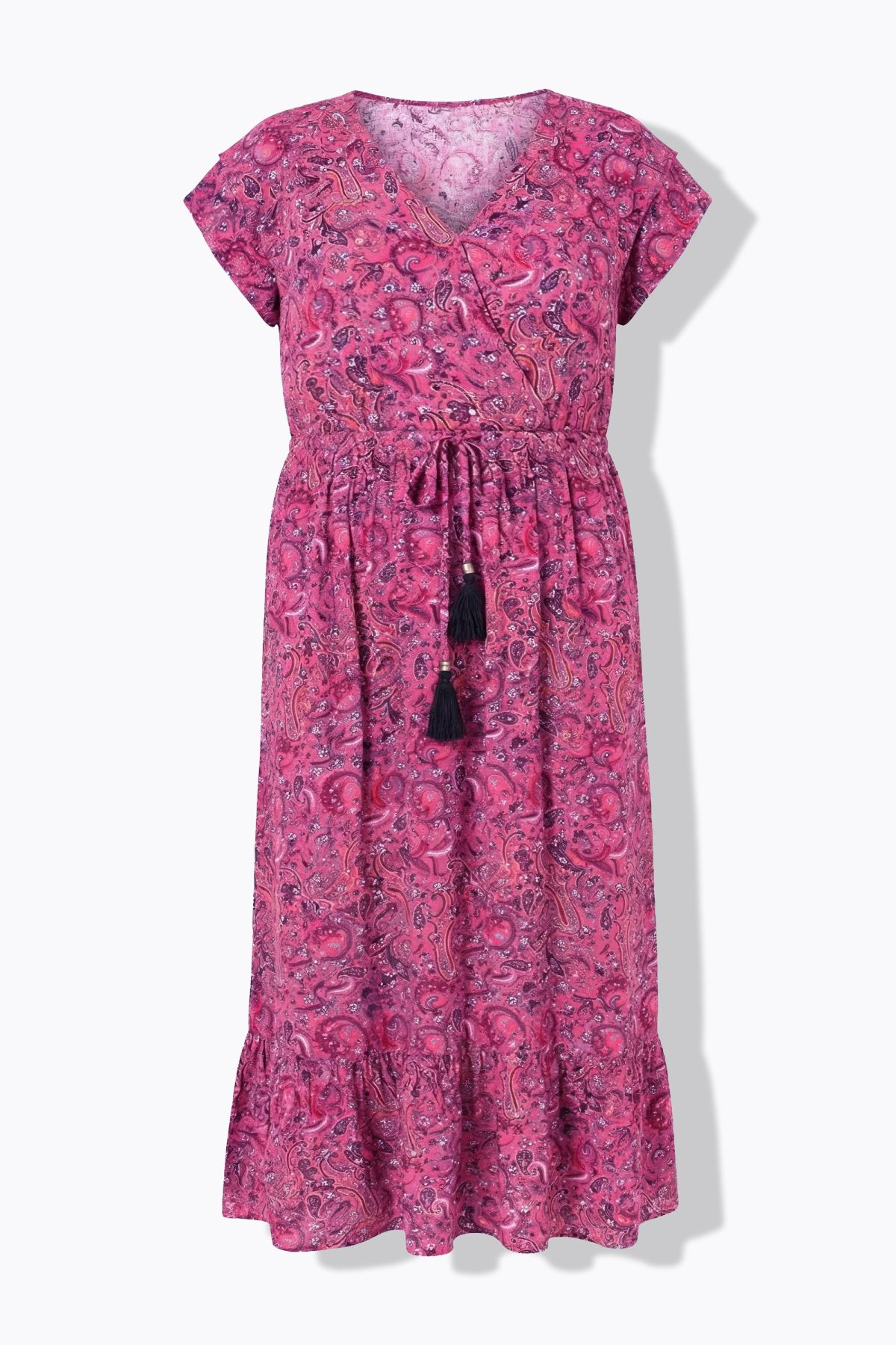 Robe maxi imprimé cachemire, cordon à nouer, coupe évasée