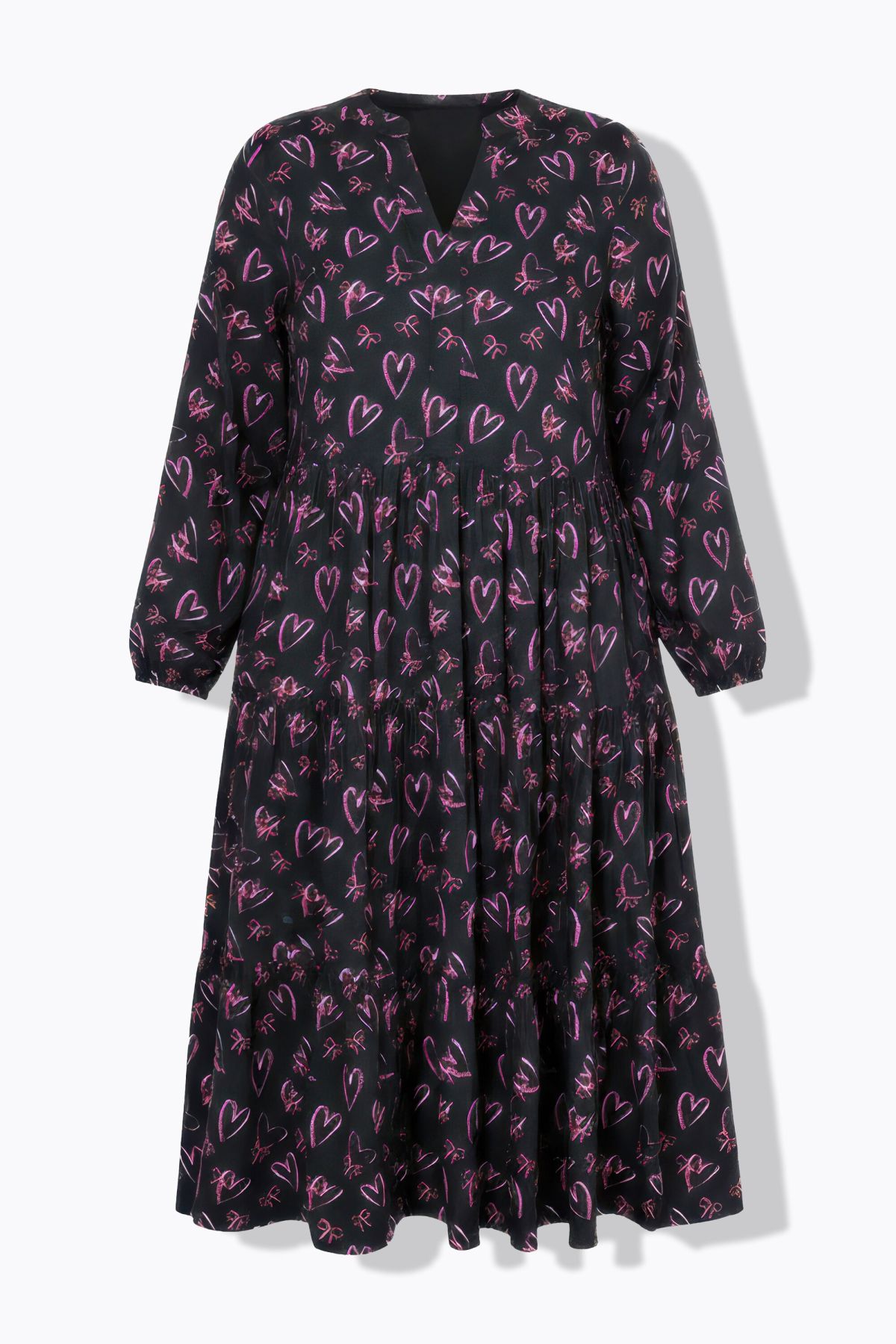 Coupe confortable, Imprimé nœuds et cœurs, Col montant avec encolure en V, Manches longues et amples, Volants, Long. env. 120 cm.