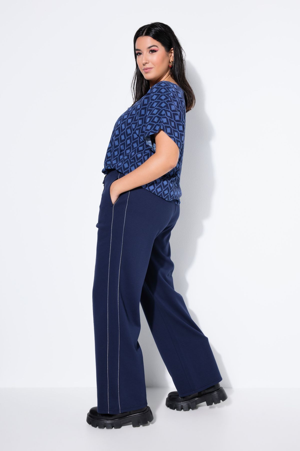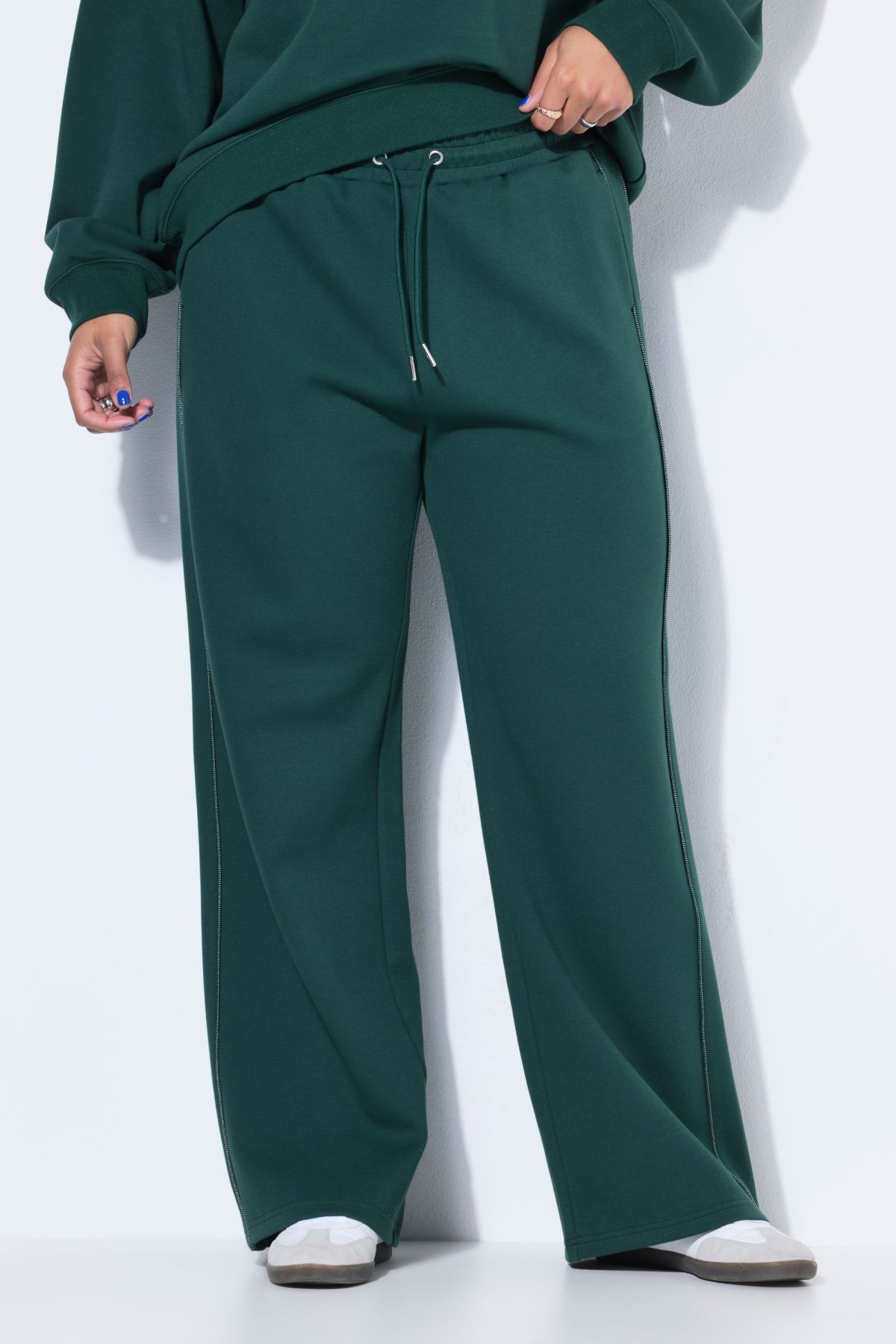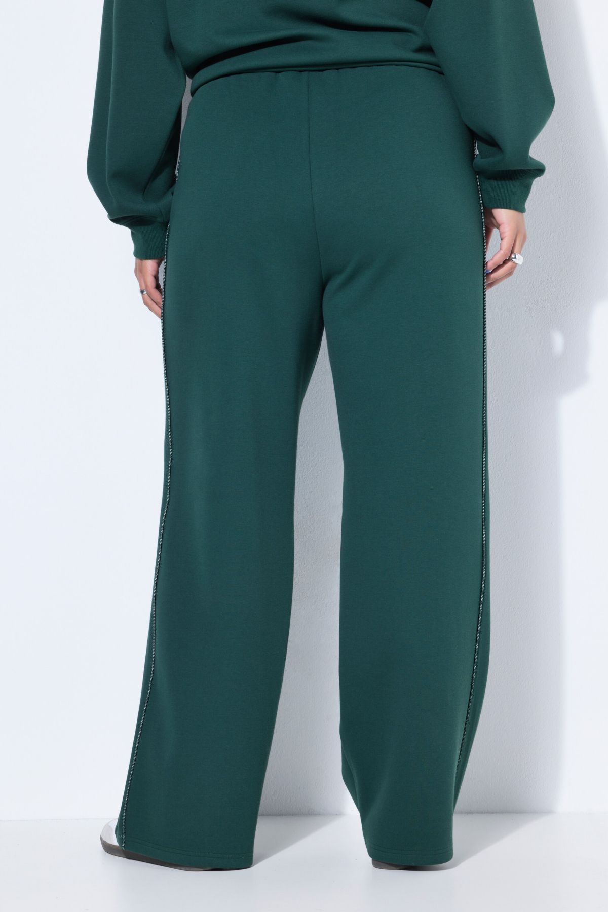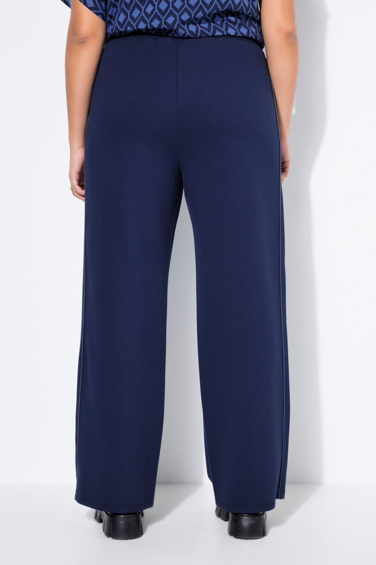 Coupe large à taille haute, Matière sportive, Passepoil sur le côté, Taille élastique, Veste de survêtement assortie : 848370, Entrej. env. 80 cm.