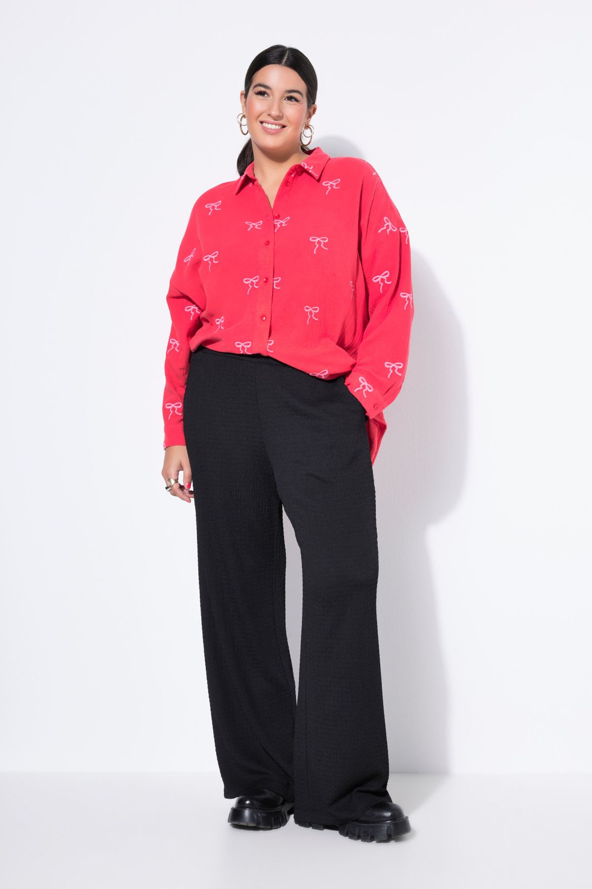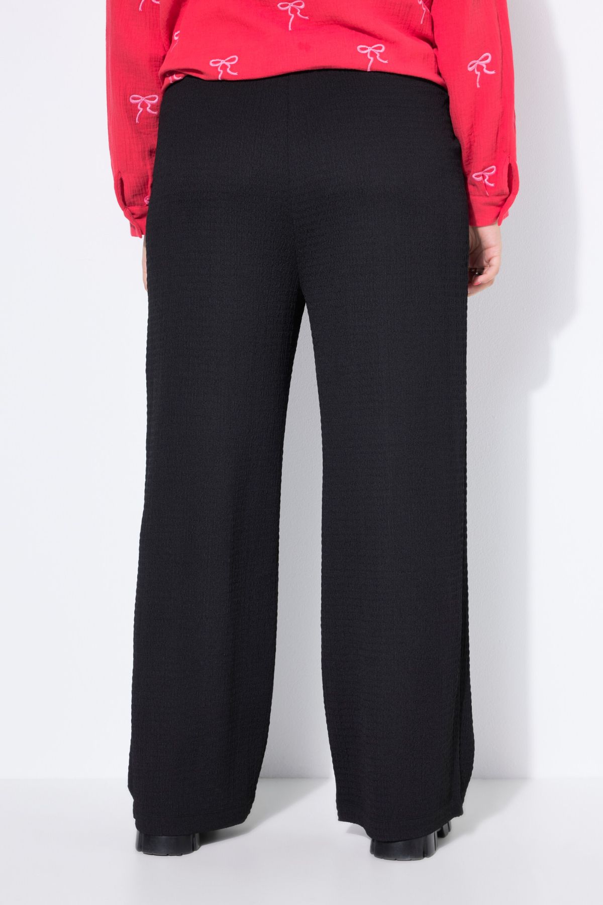 Coupe Wide Legs (jambe large), Tissu finement texturé, Taille élastique, Poches latérales réservées dans la couture, Entrej. env. 78 cm.