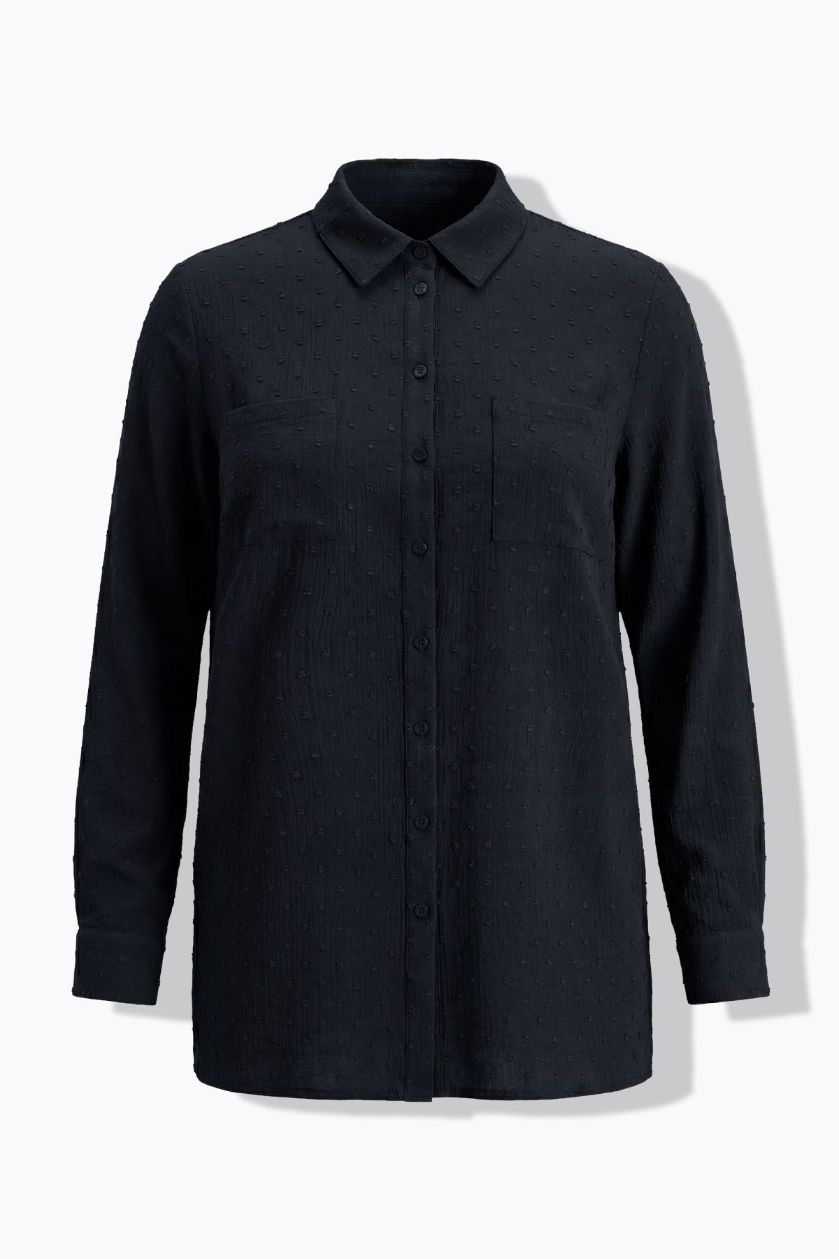 Chemisier droit à manches longues et pois texturés