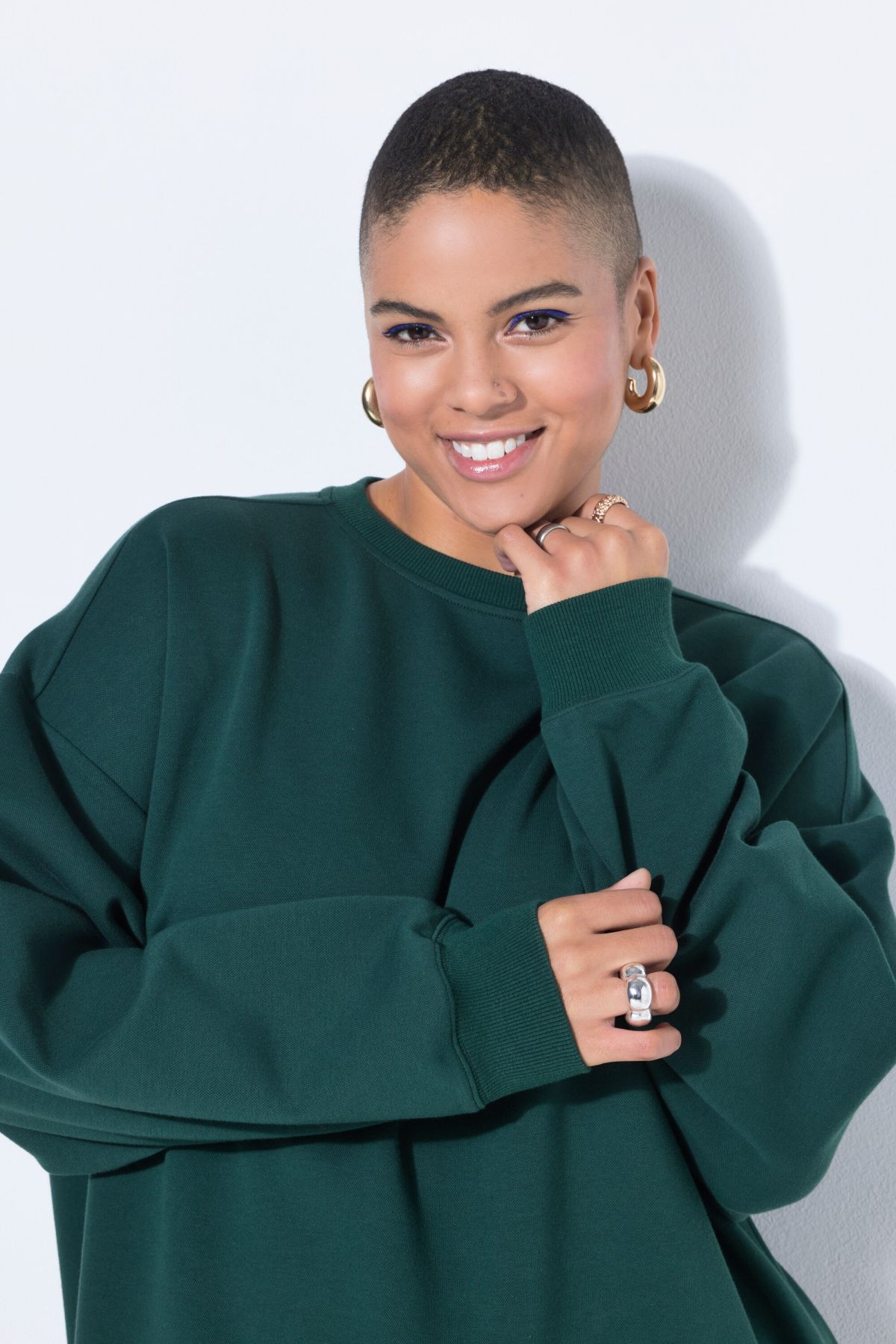 Coupe oversize, Molleton doux et confortable, Col rond, Message sportif, Long. selon taille env. 72-76 cm.